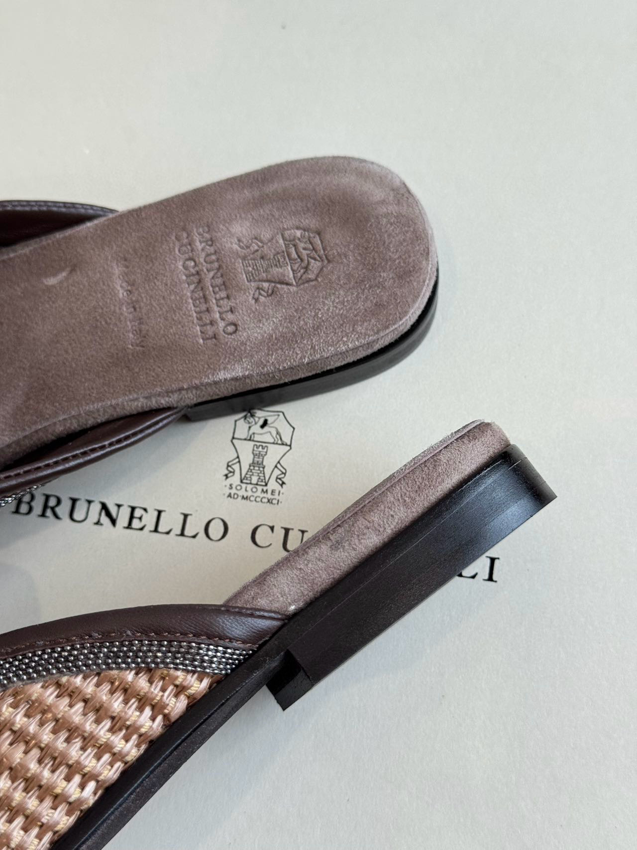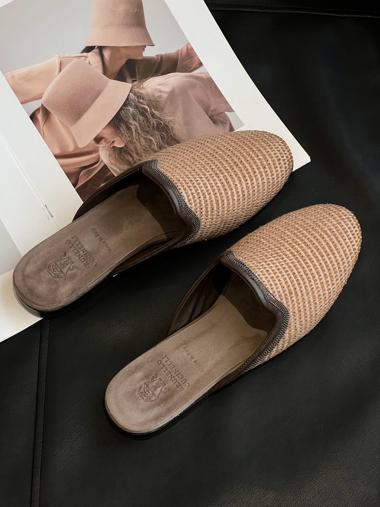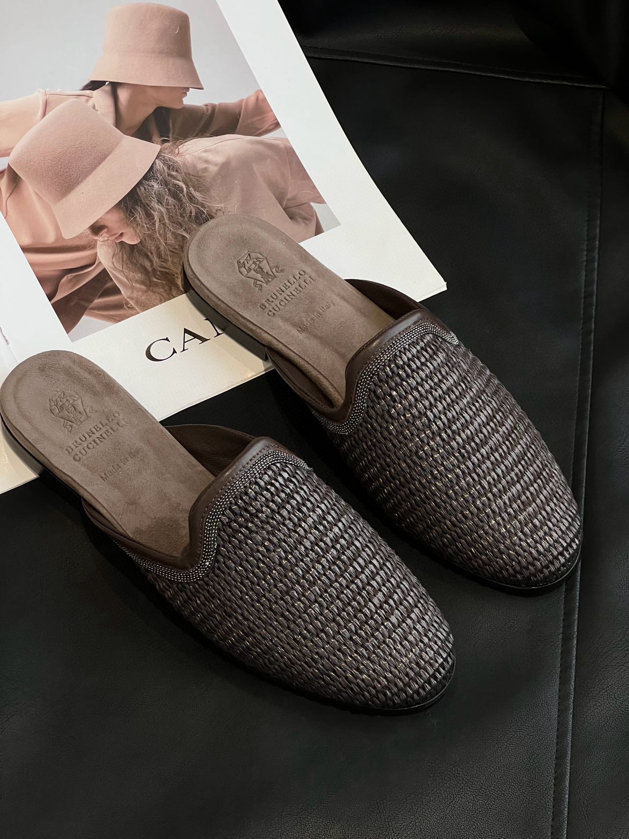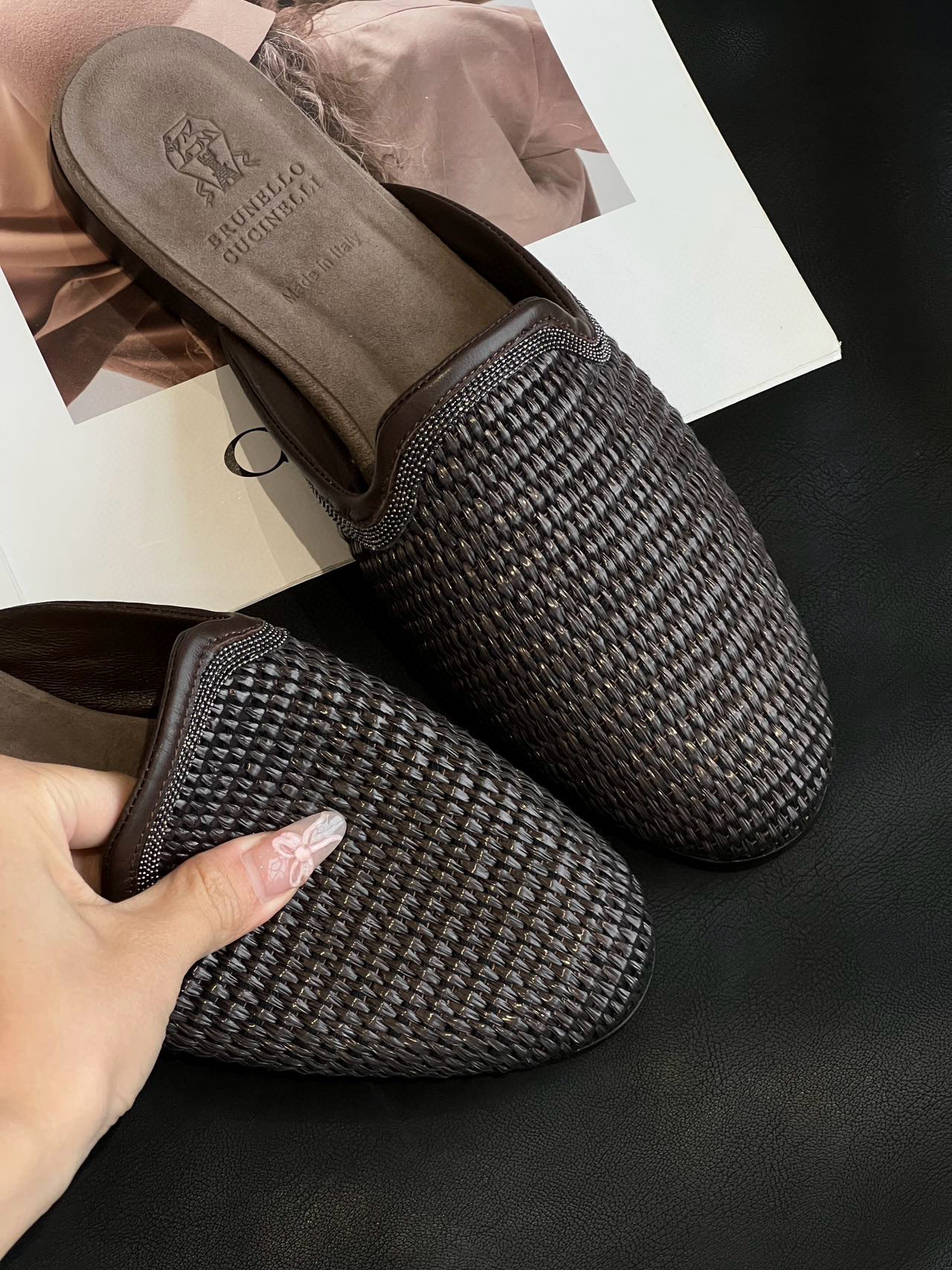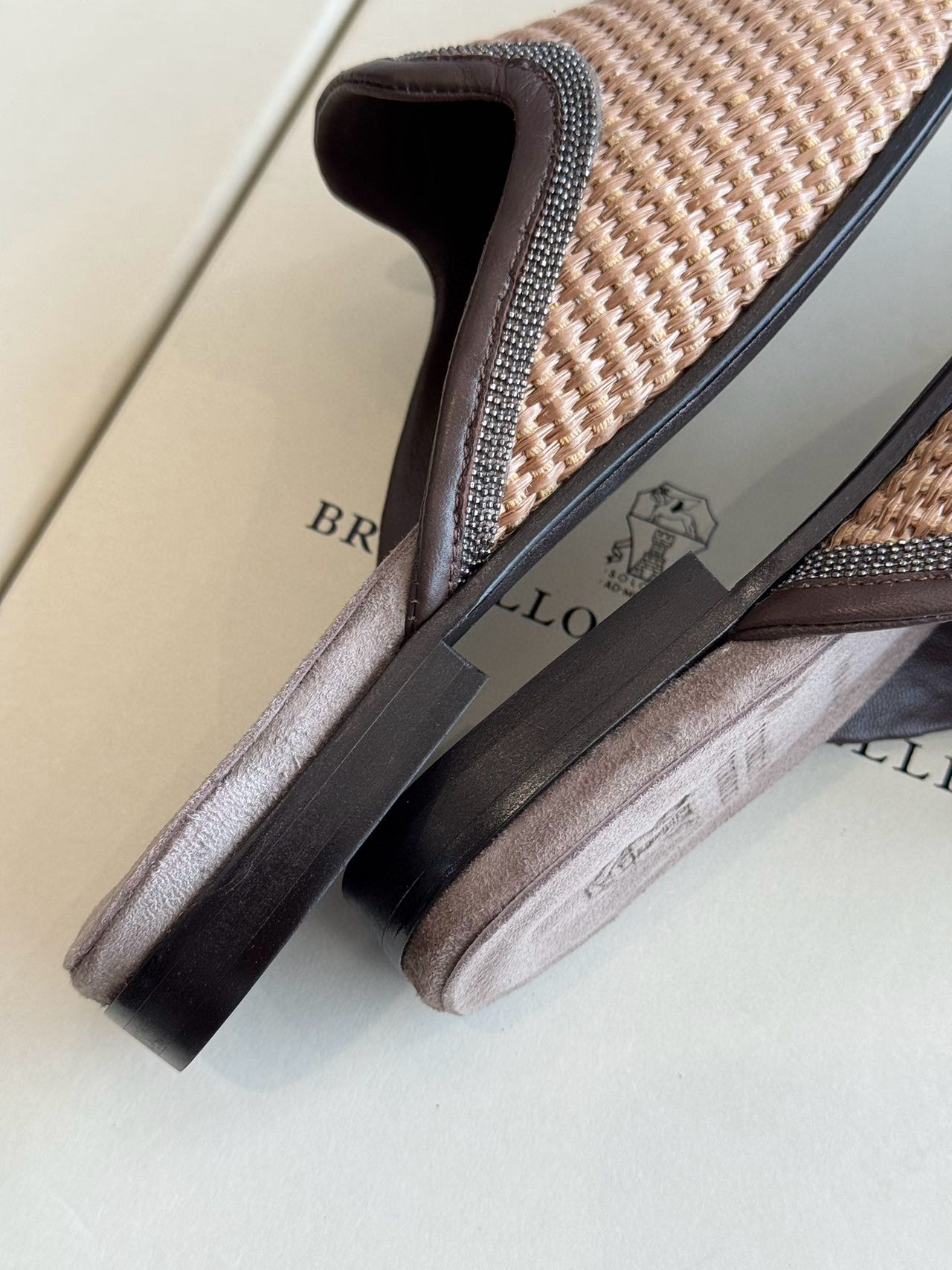 NIGO Brunello Cucinelli Techno Raffia Slippers With Precious Trim Women's Fashion Breathable Casual Shoes Comfortable Flat Heel Sandals 2cm Ngvp #nigo1589