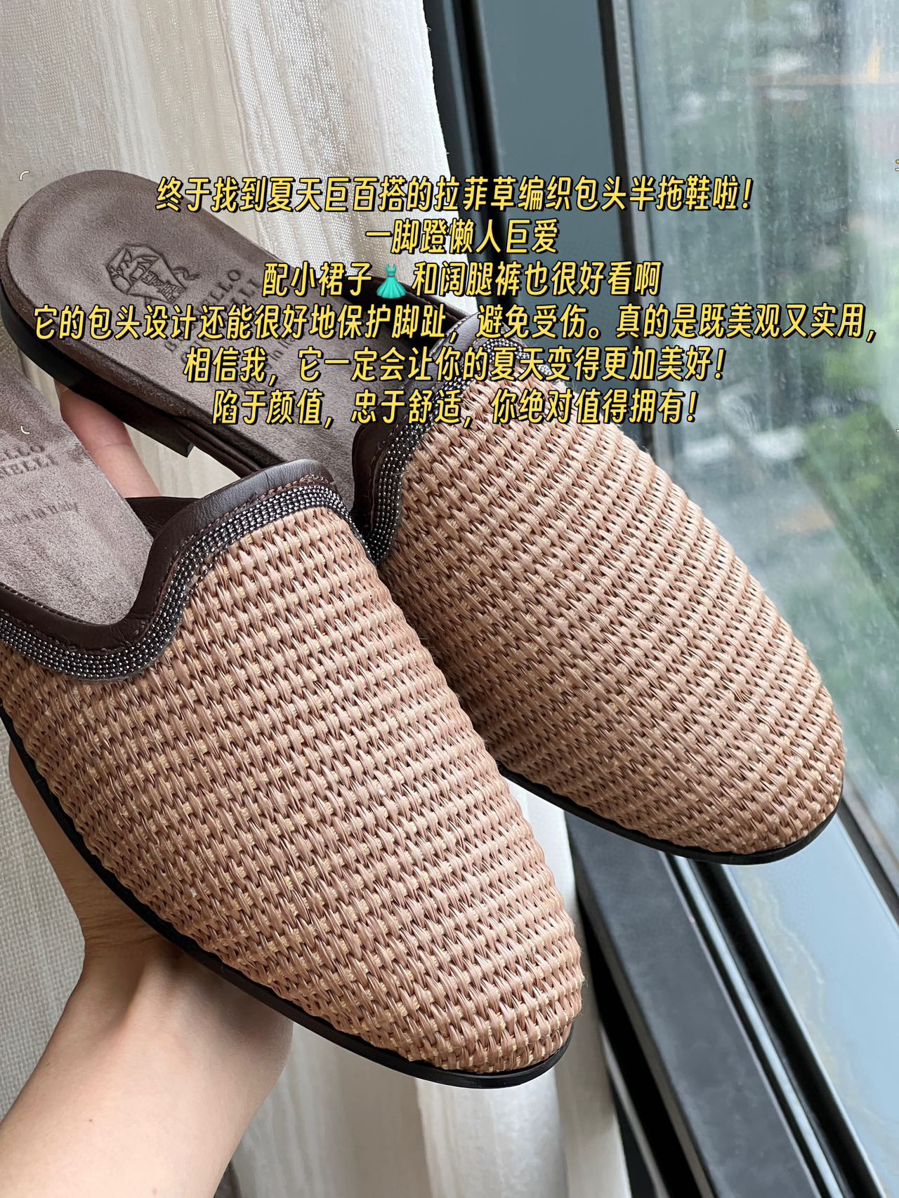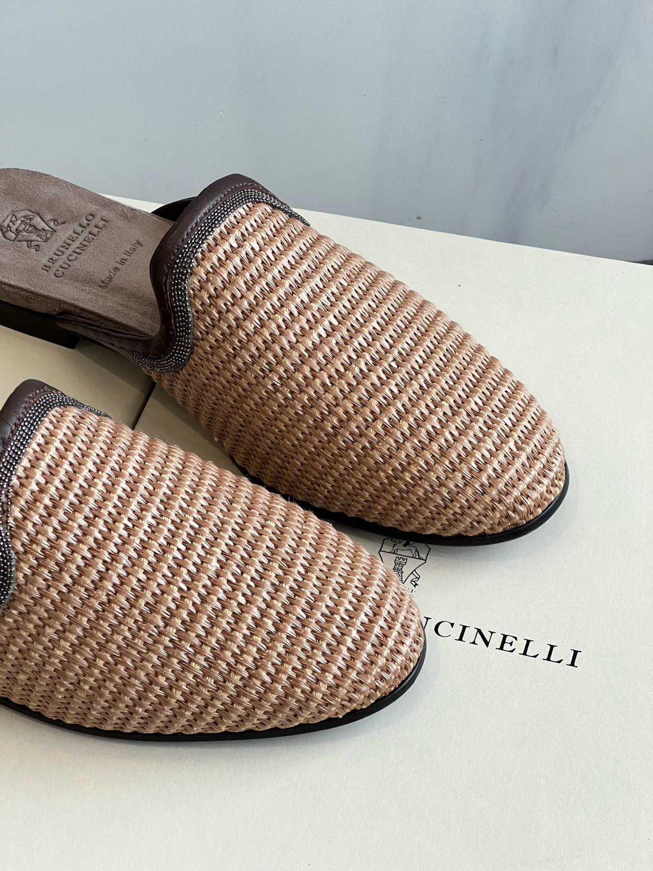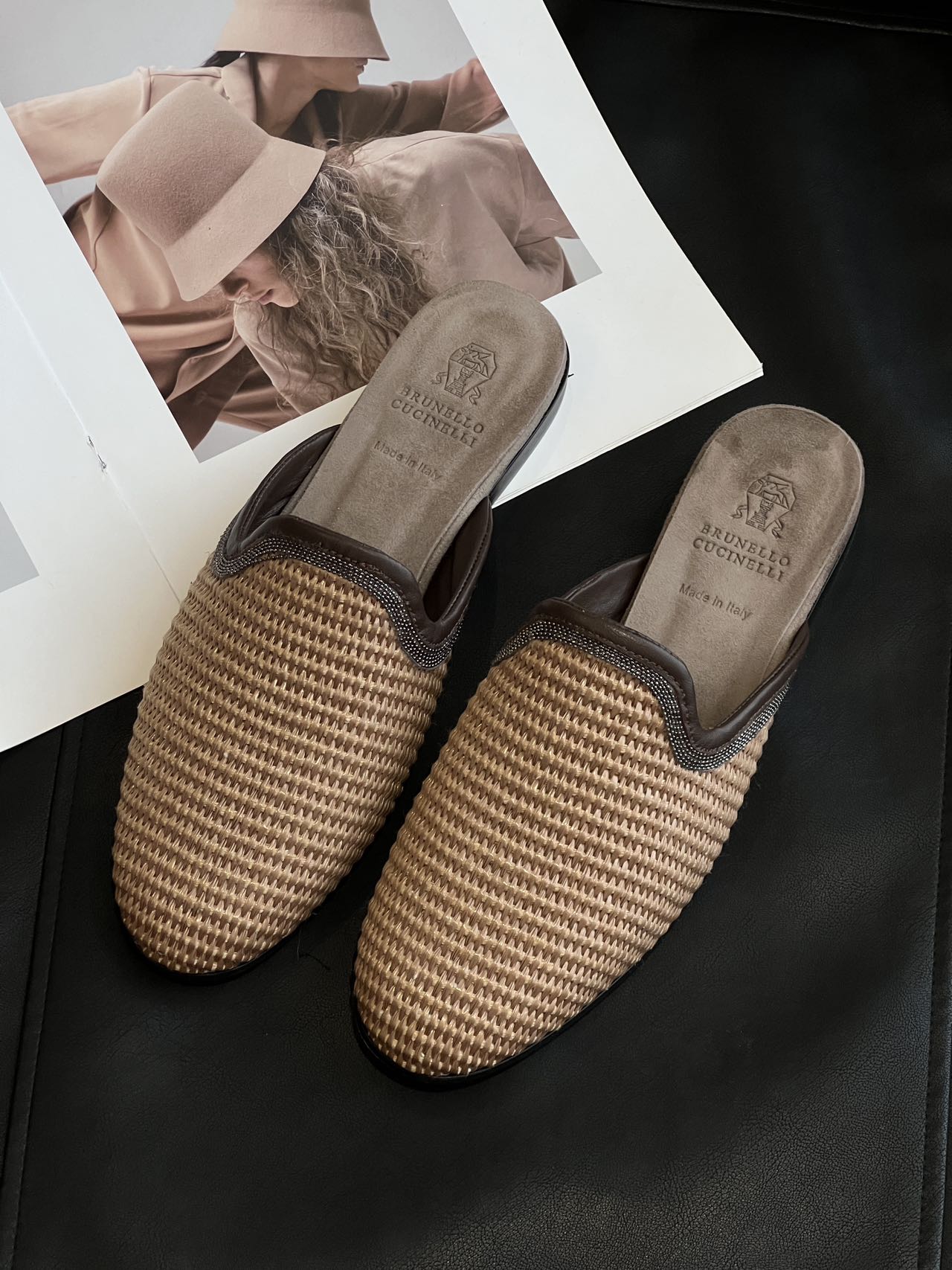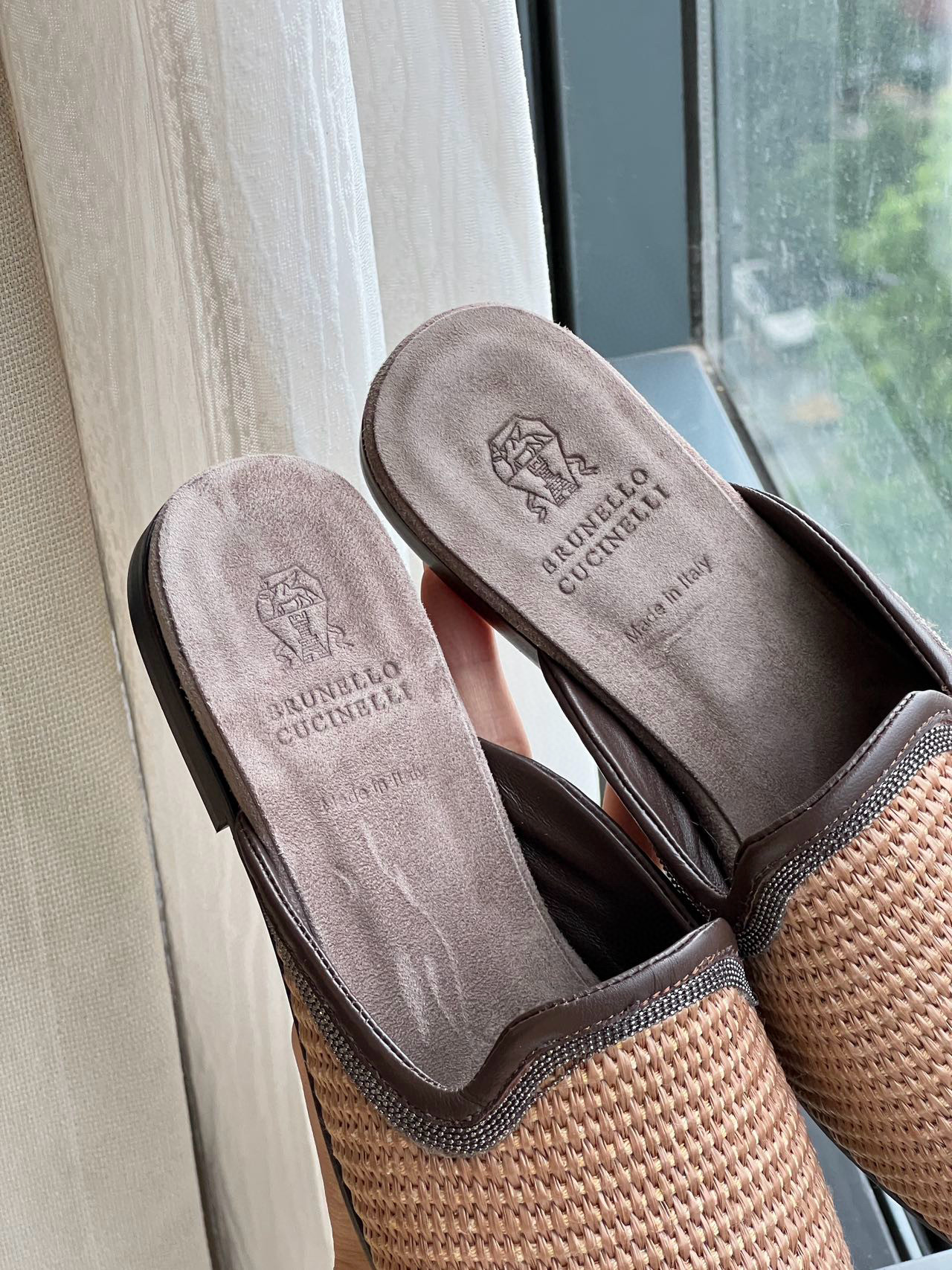 NIGO Brunello Cucinelli Techno Raffia Slippers With Precious Trim Women's Fashion Breathable Casual Shoes Comfortable Flat Heel Sandals 2cm Ngvp #nigo1589
