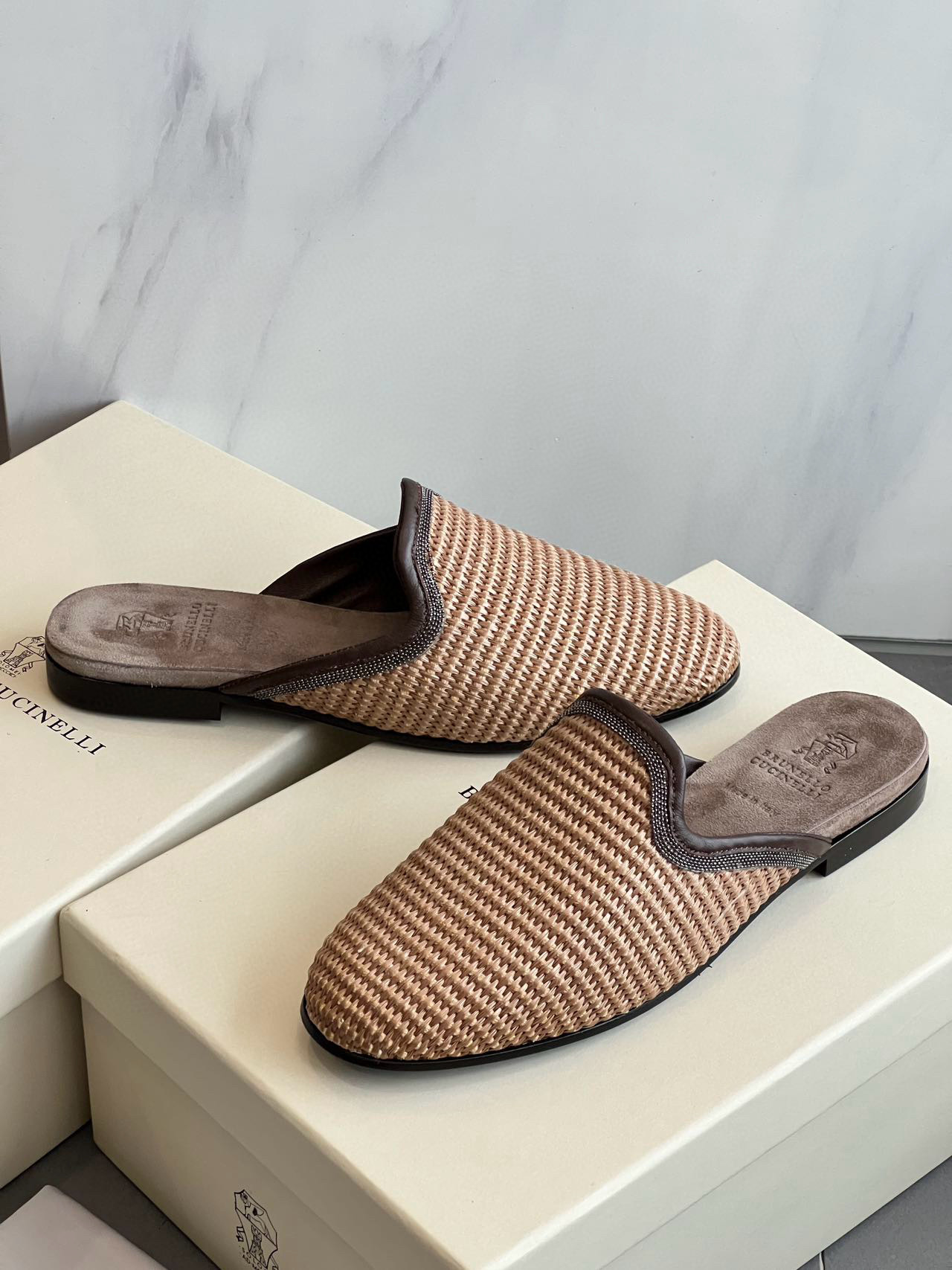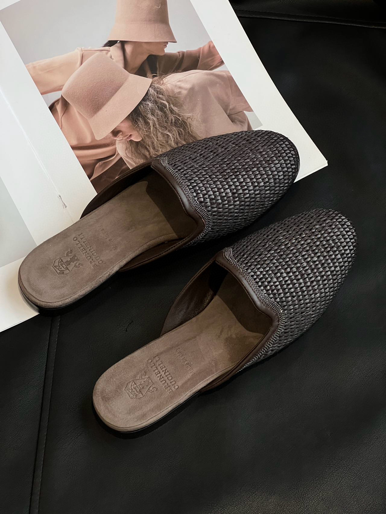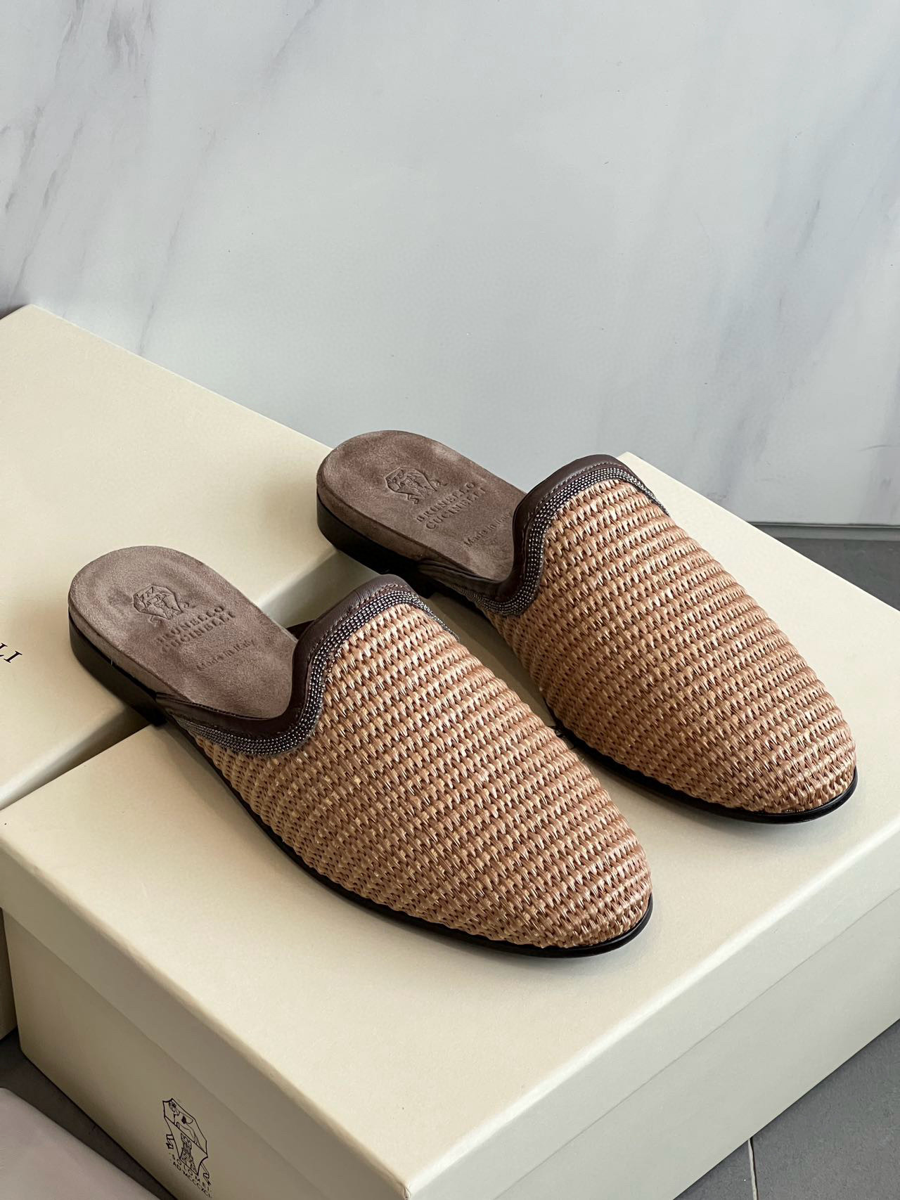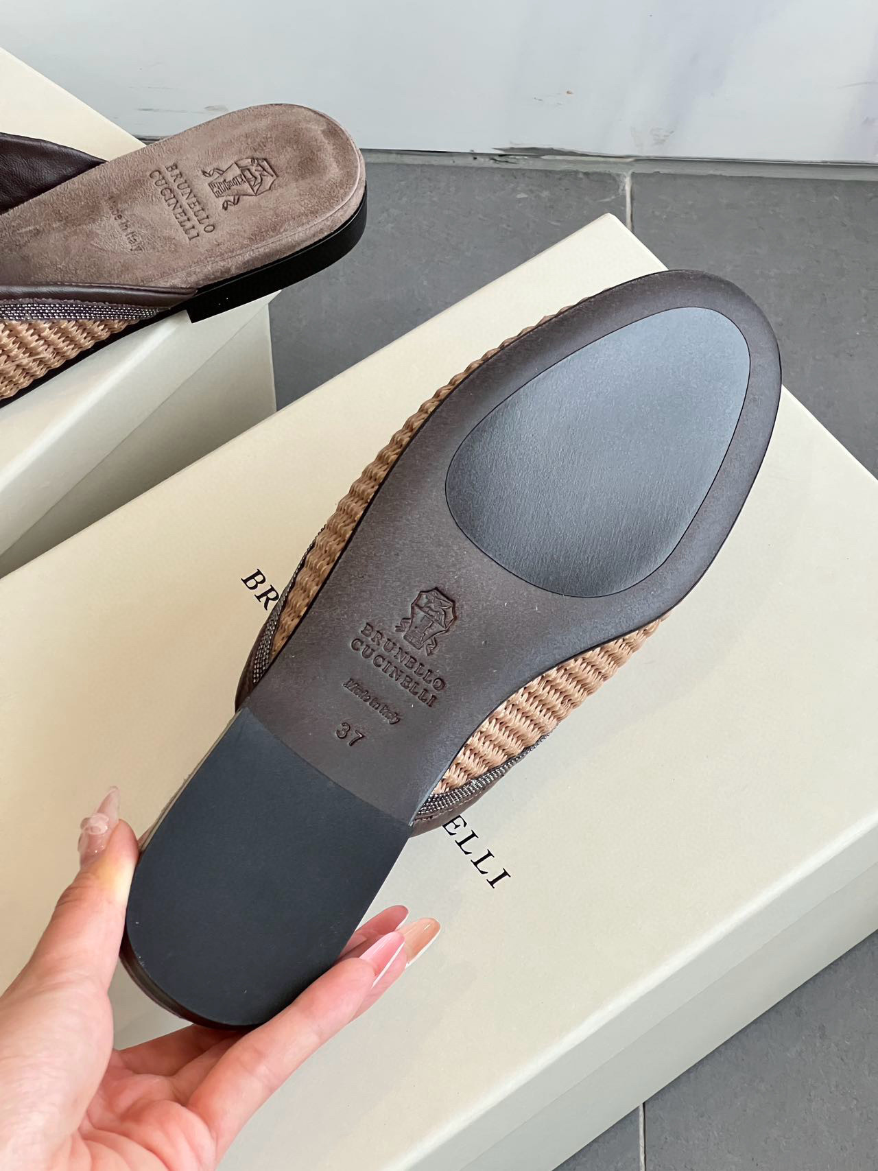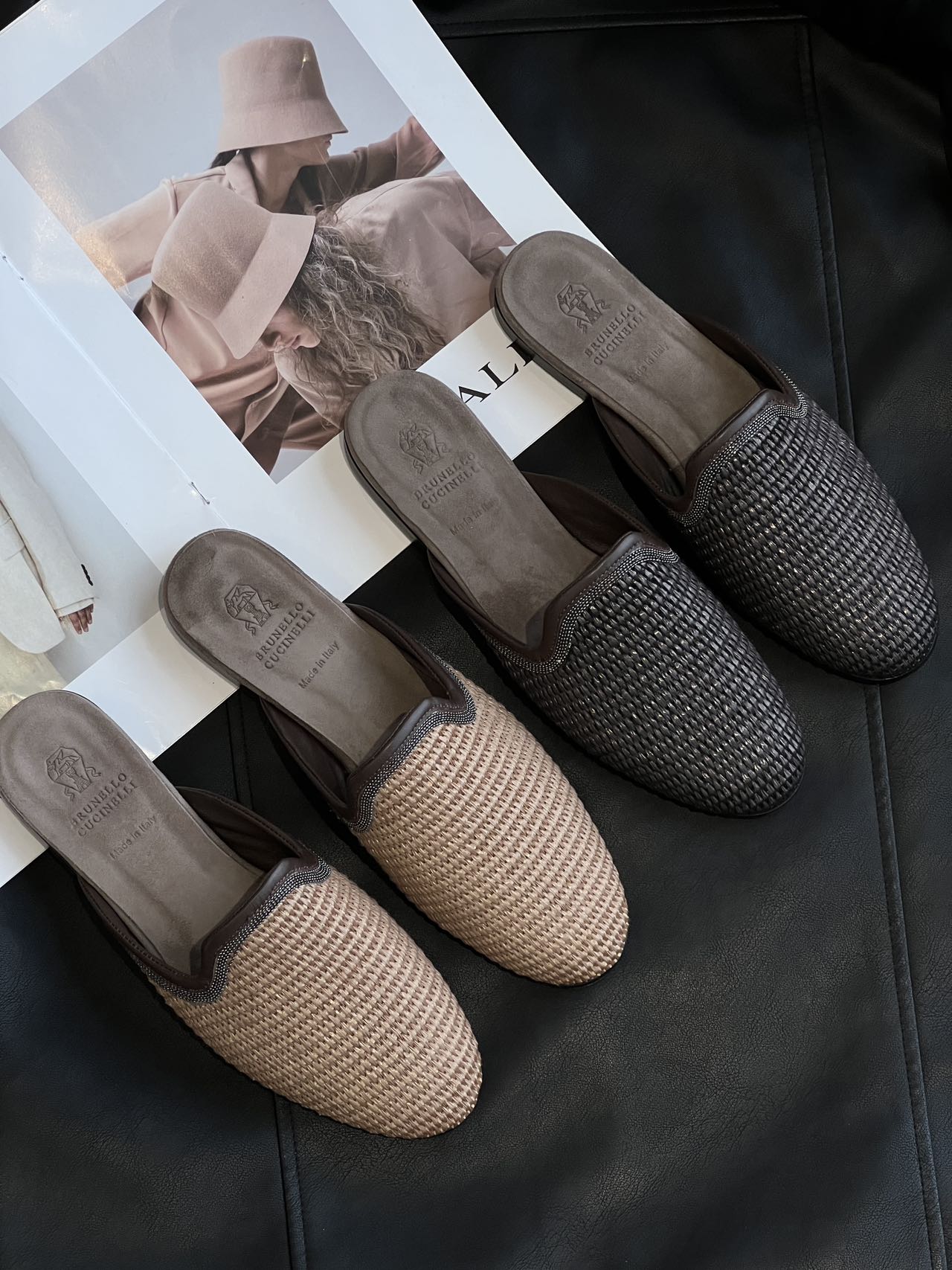 NIGO Brunello Cucinelli Techno Raffia Slippers With Precious Trim Women's Fashion Breathable Casual Shoes Comfortable Flat Heel Sandals 2cm Ngvp #nigo1589