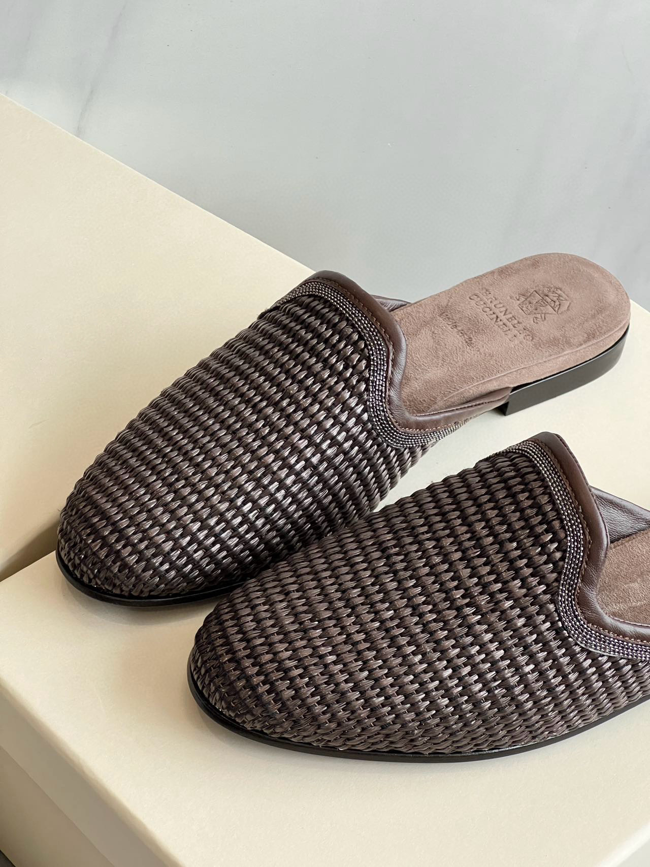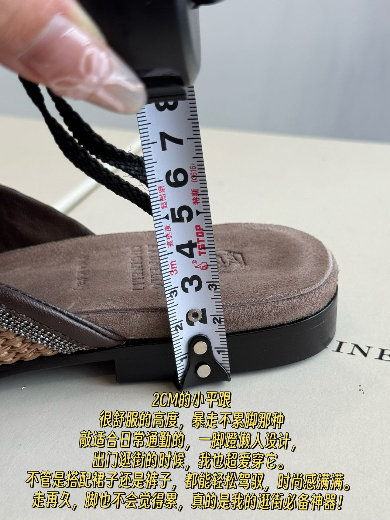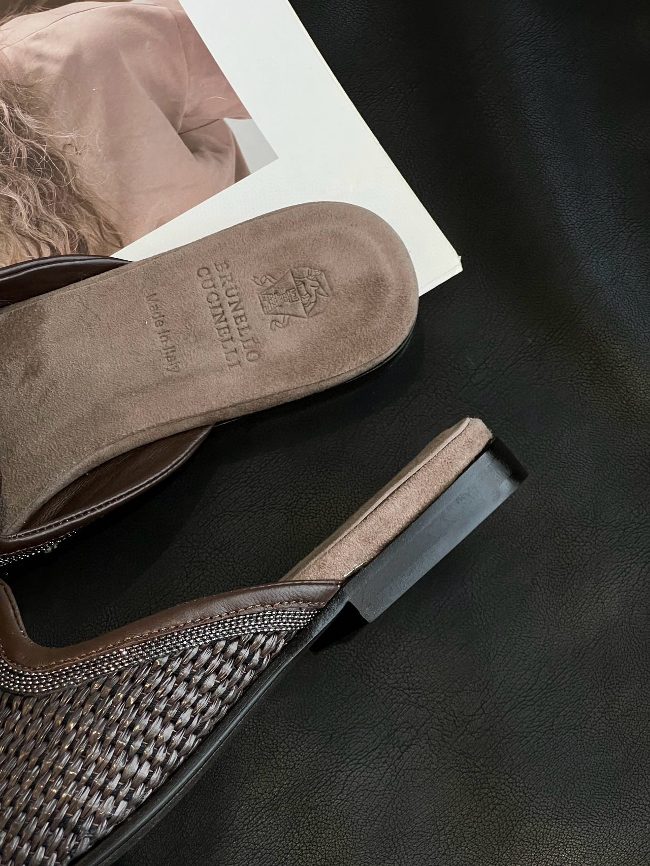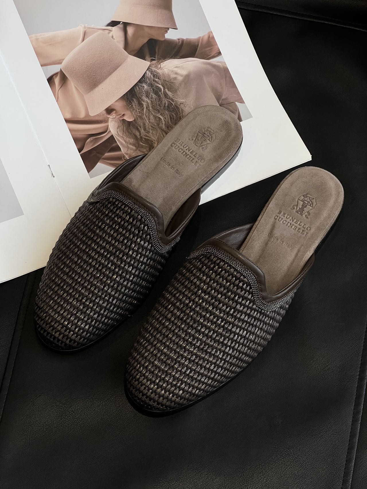 NIGO Brunello Cucinelli Techno Raffia Slippers With Precious Trim Women's Fashion Breathable Casual Shoes Comfortable Flat Heel Sandals 2cm Ngvp #nigo1589