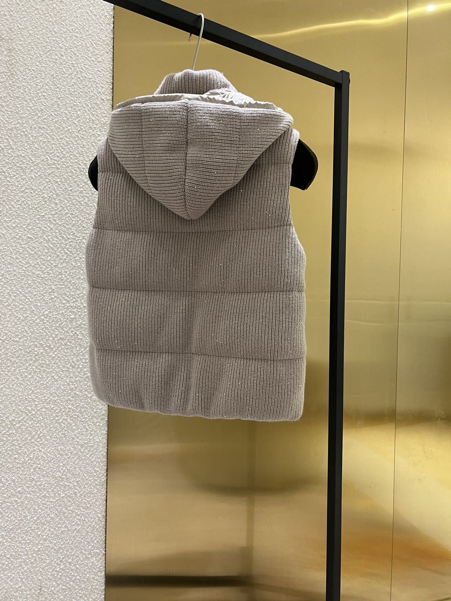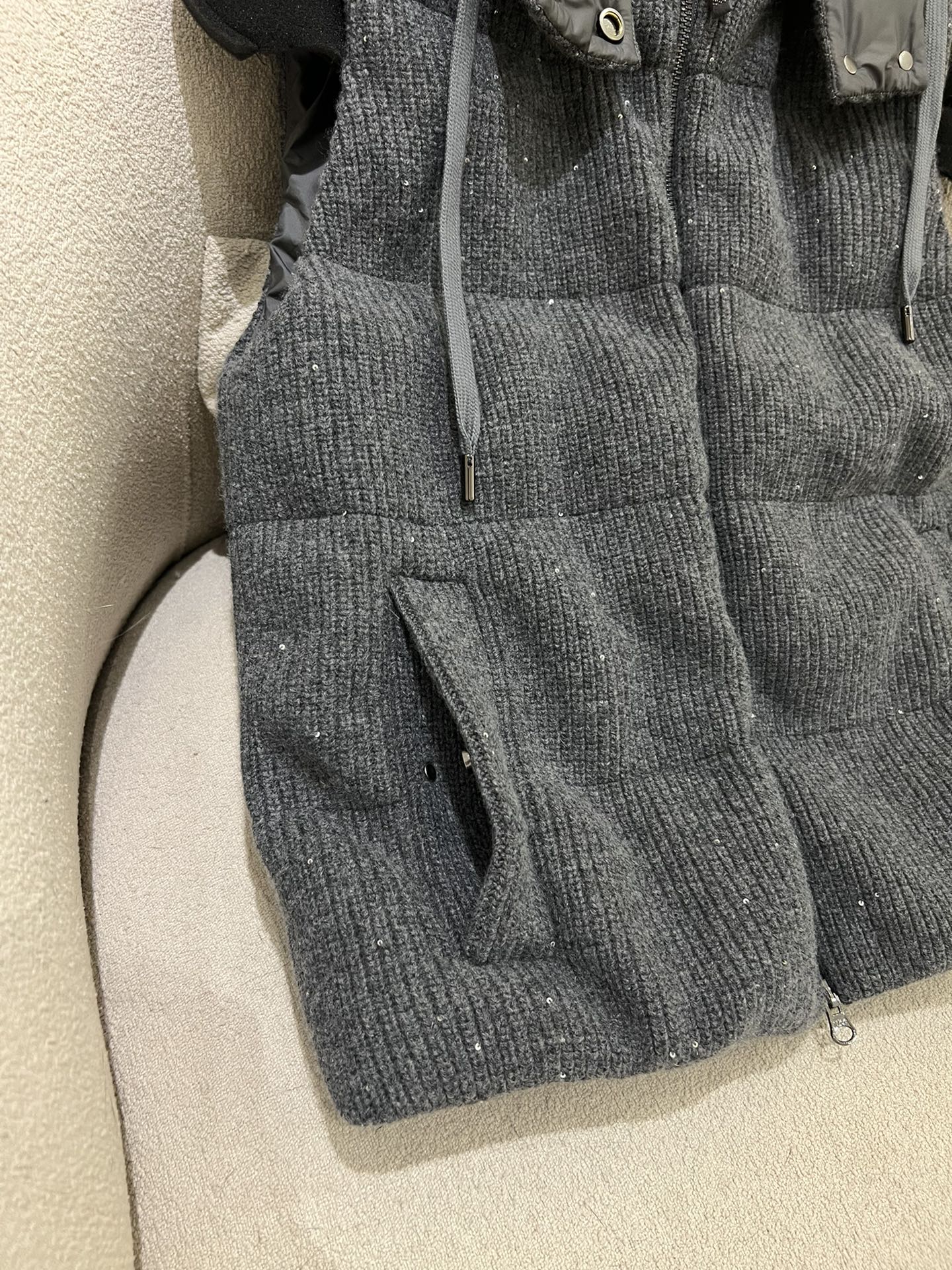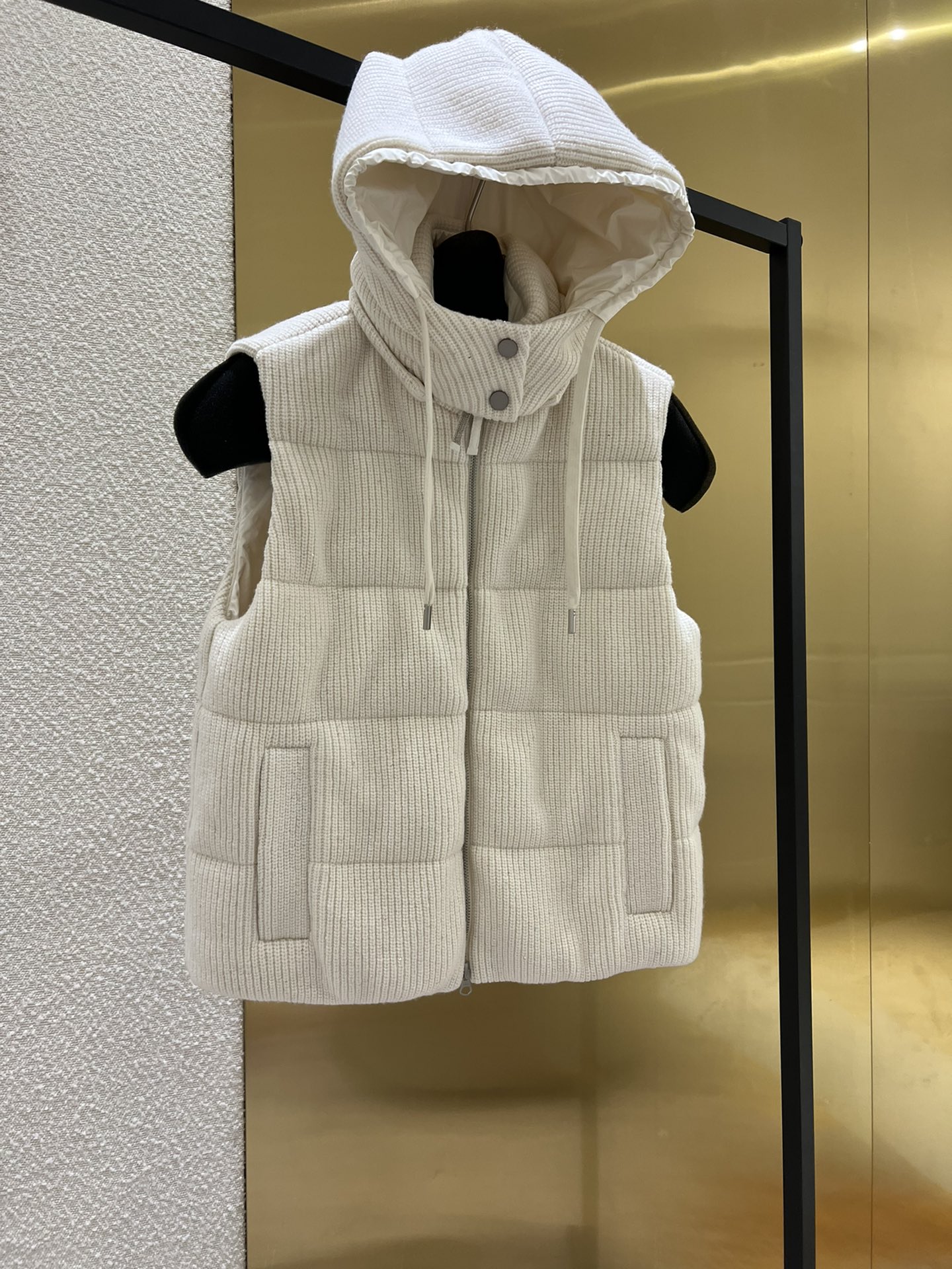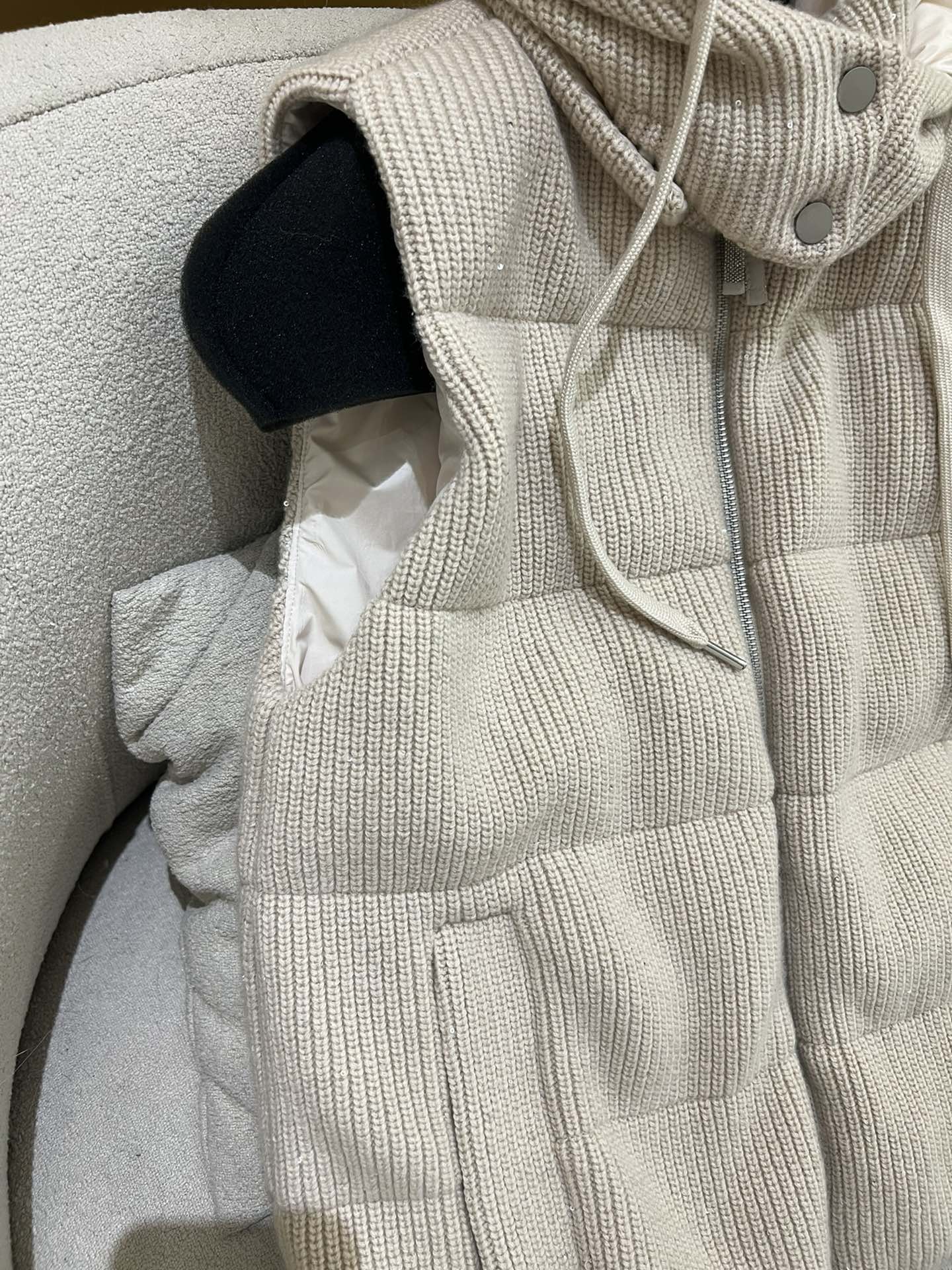NIGO Brunello Cucinelli Women's Fall/winter Cotton British Ribbed Knit Down Vest Hooded Drawstring Sleeveless Jacket Ngvp #nigo2417