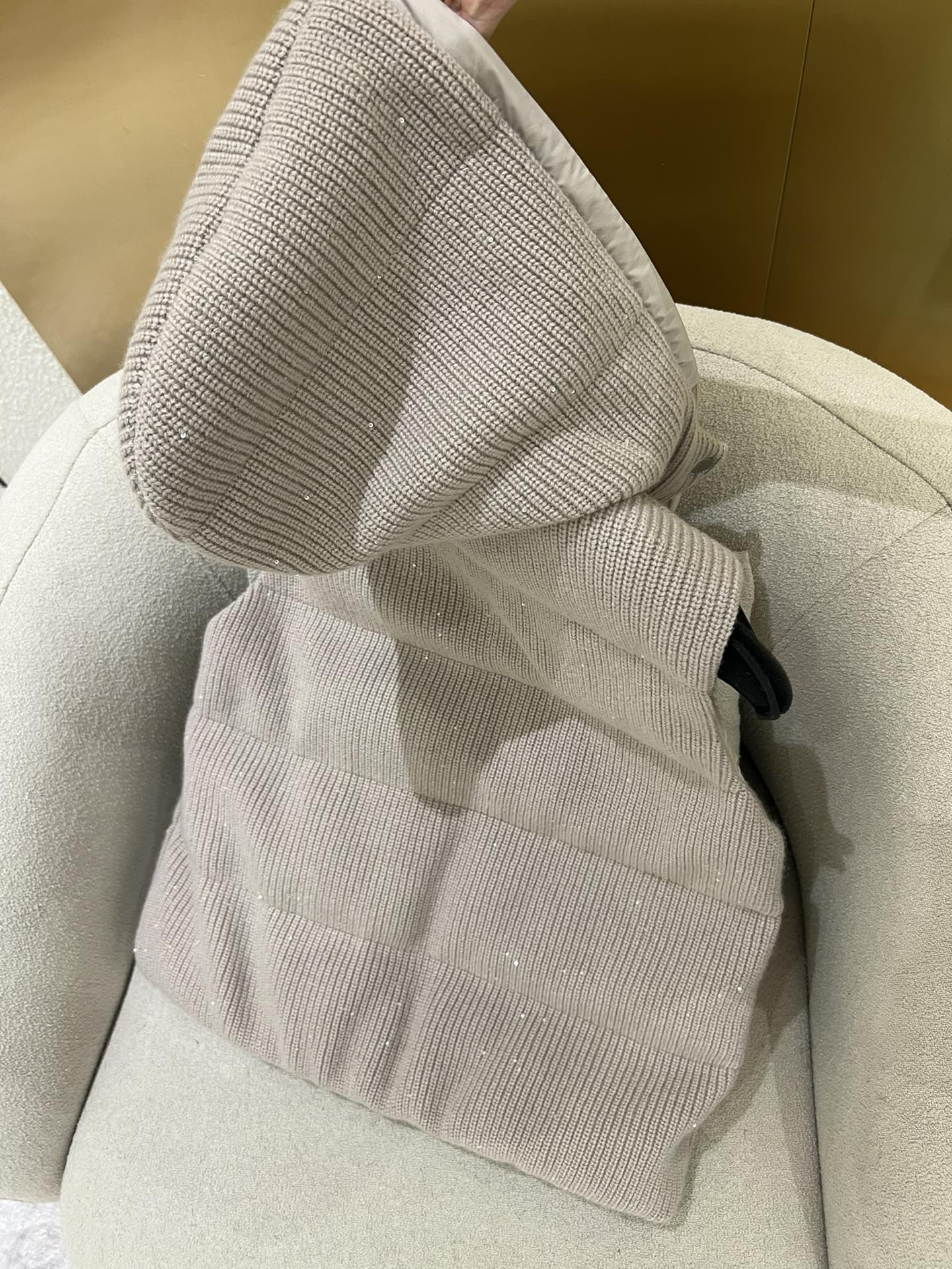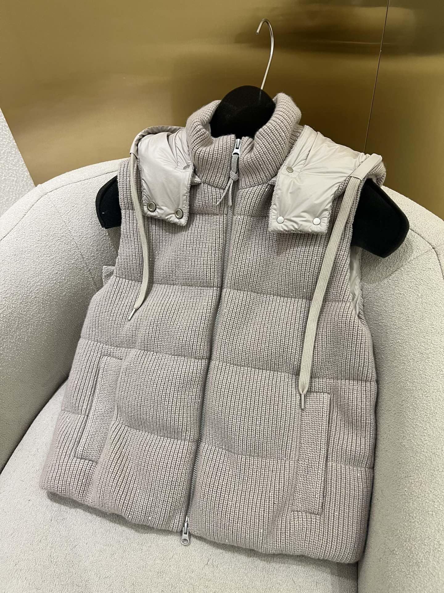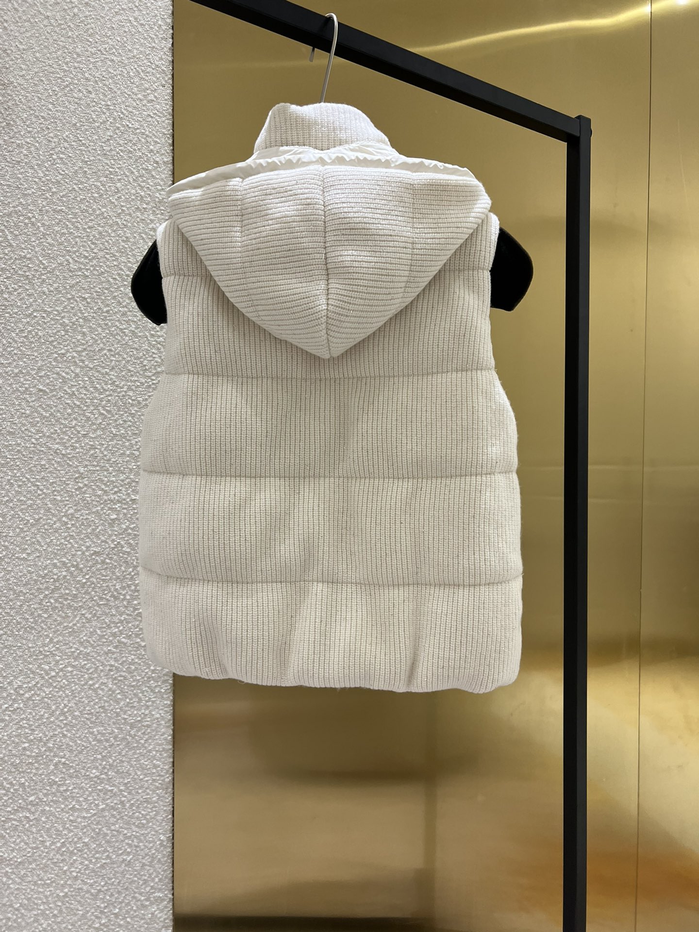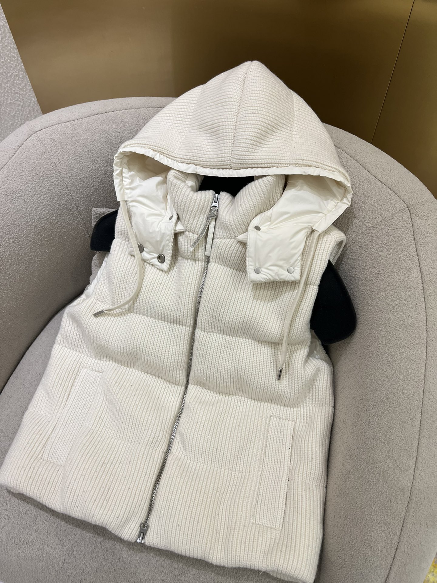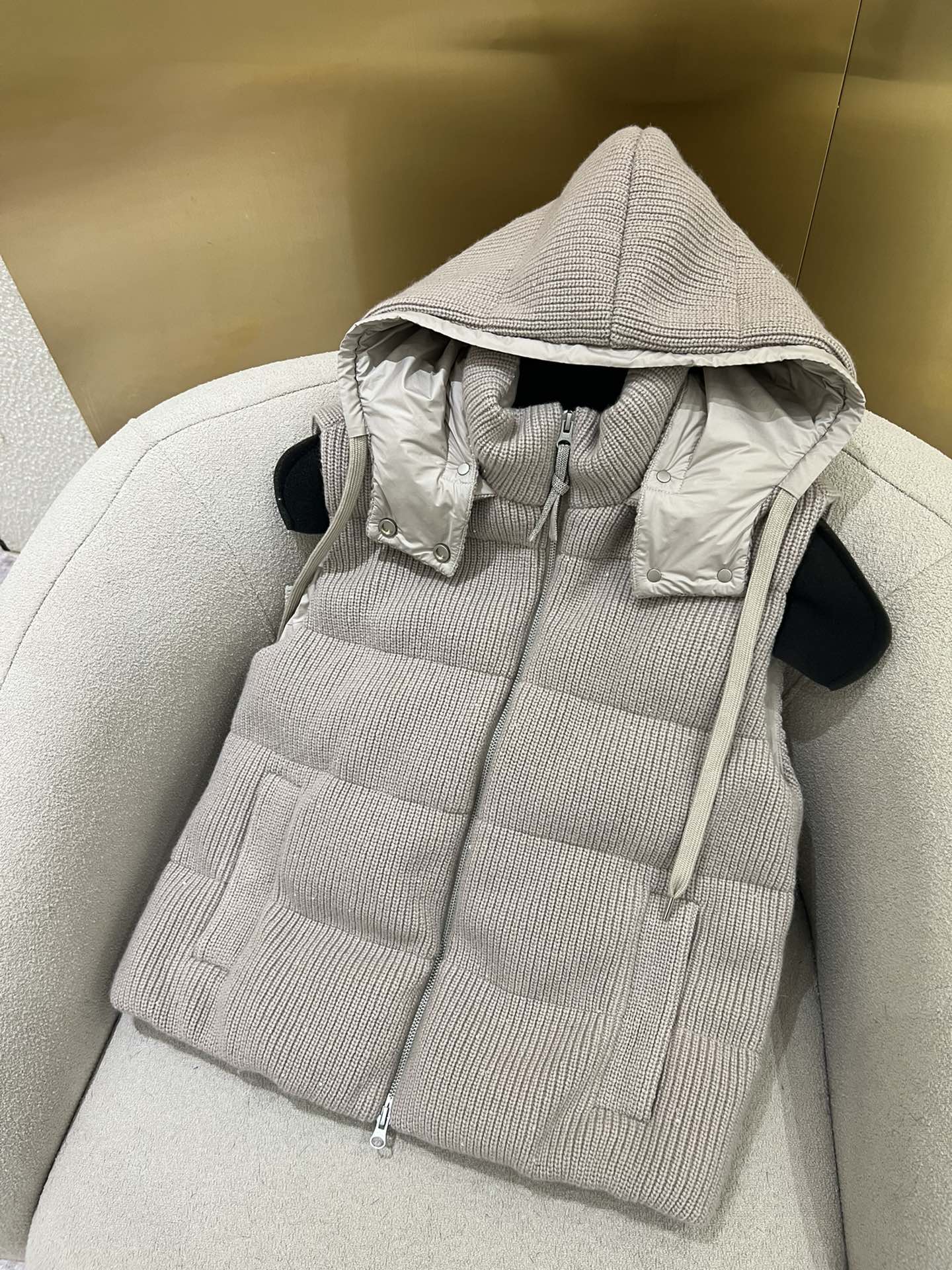 NIGO Brunello Cucinelli Women's Fall/winter Cotton British Ribbed Knit Down Vest Hooded Drawstring Sleeveless Jacket Ngvp #nigo2417