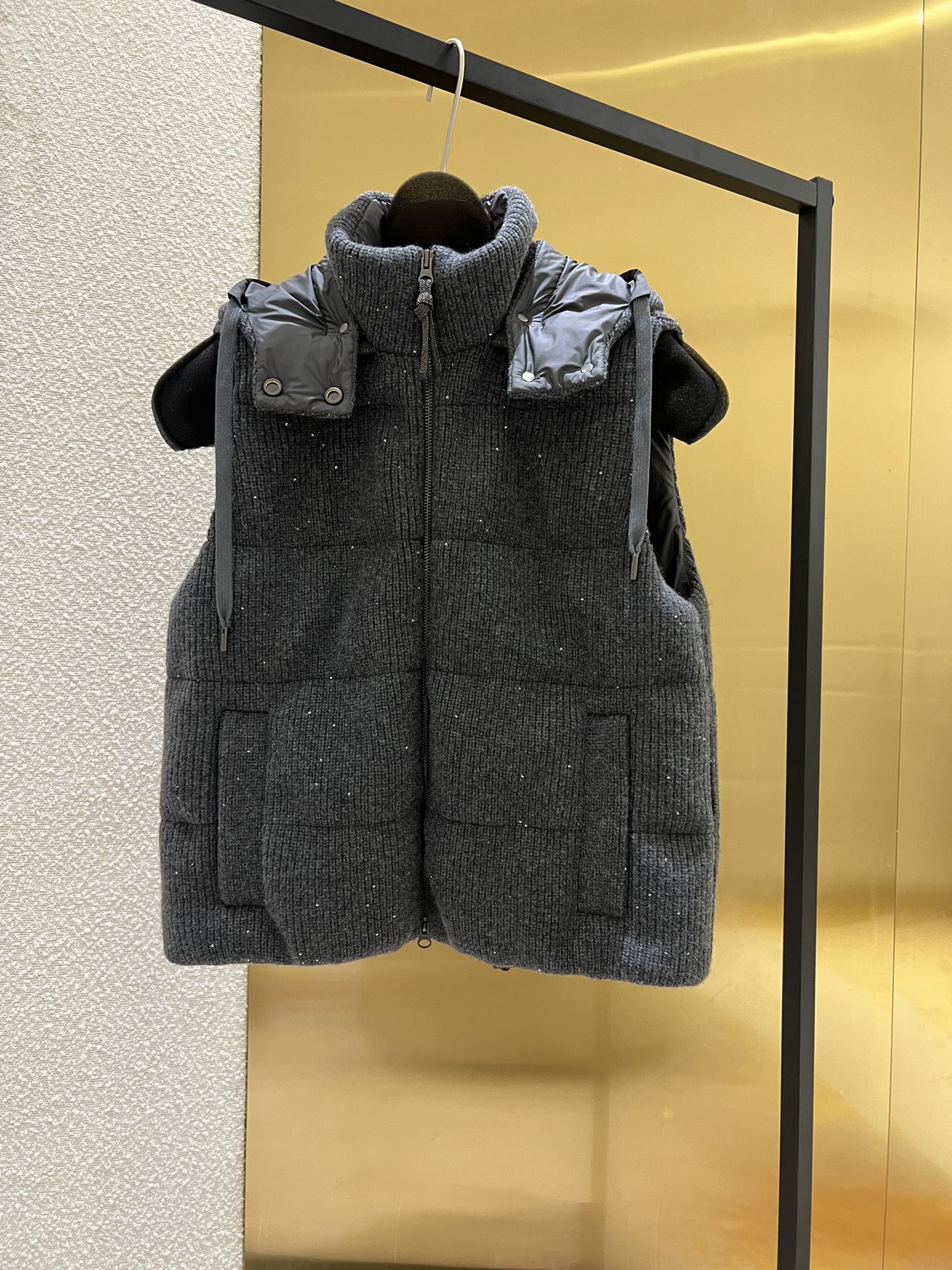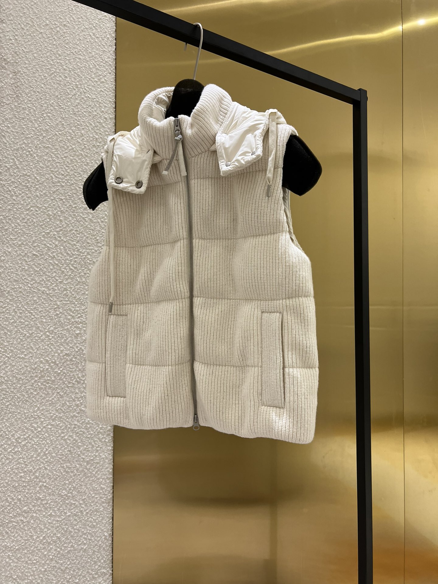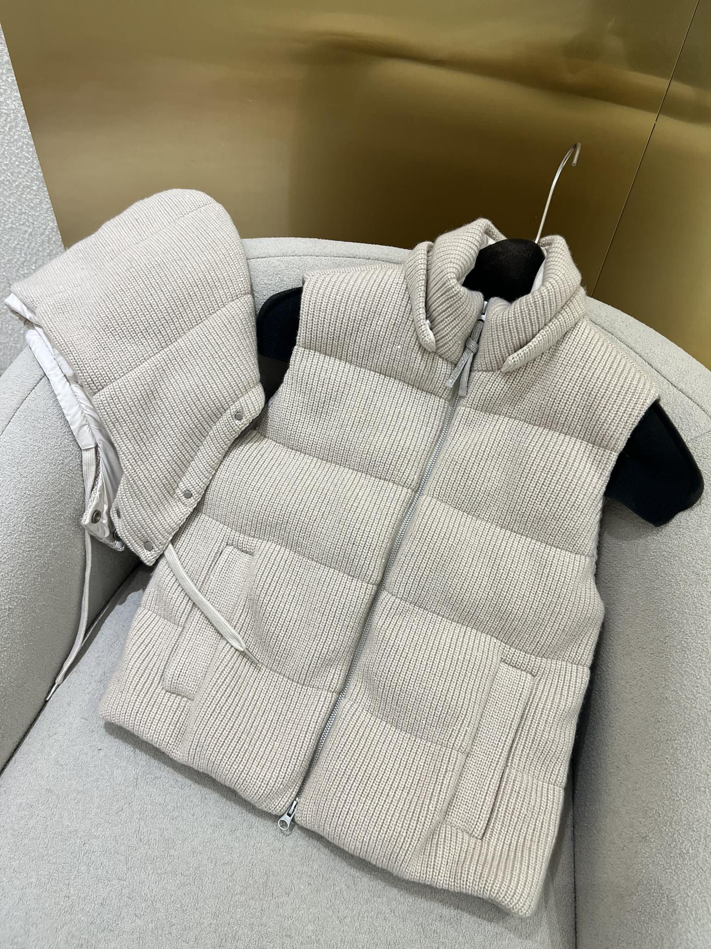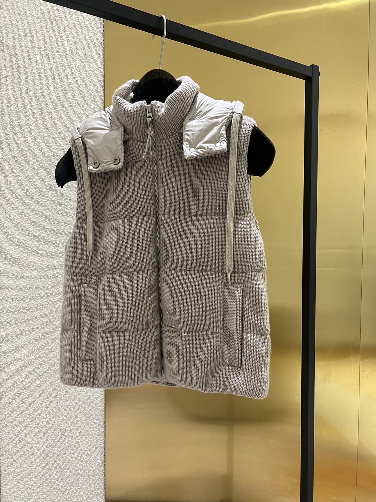 NIGO Brunello Cucinelli Women's Fall/winter Cotton British Ribbed Knit Down Vest Hooded Drawstring Sleeveless Jacket Ngvp #nigo2417
