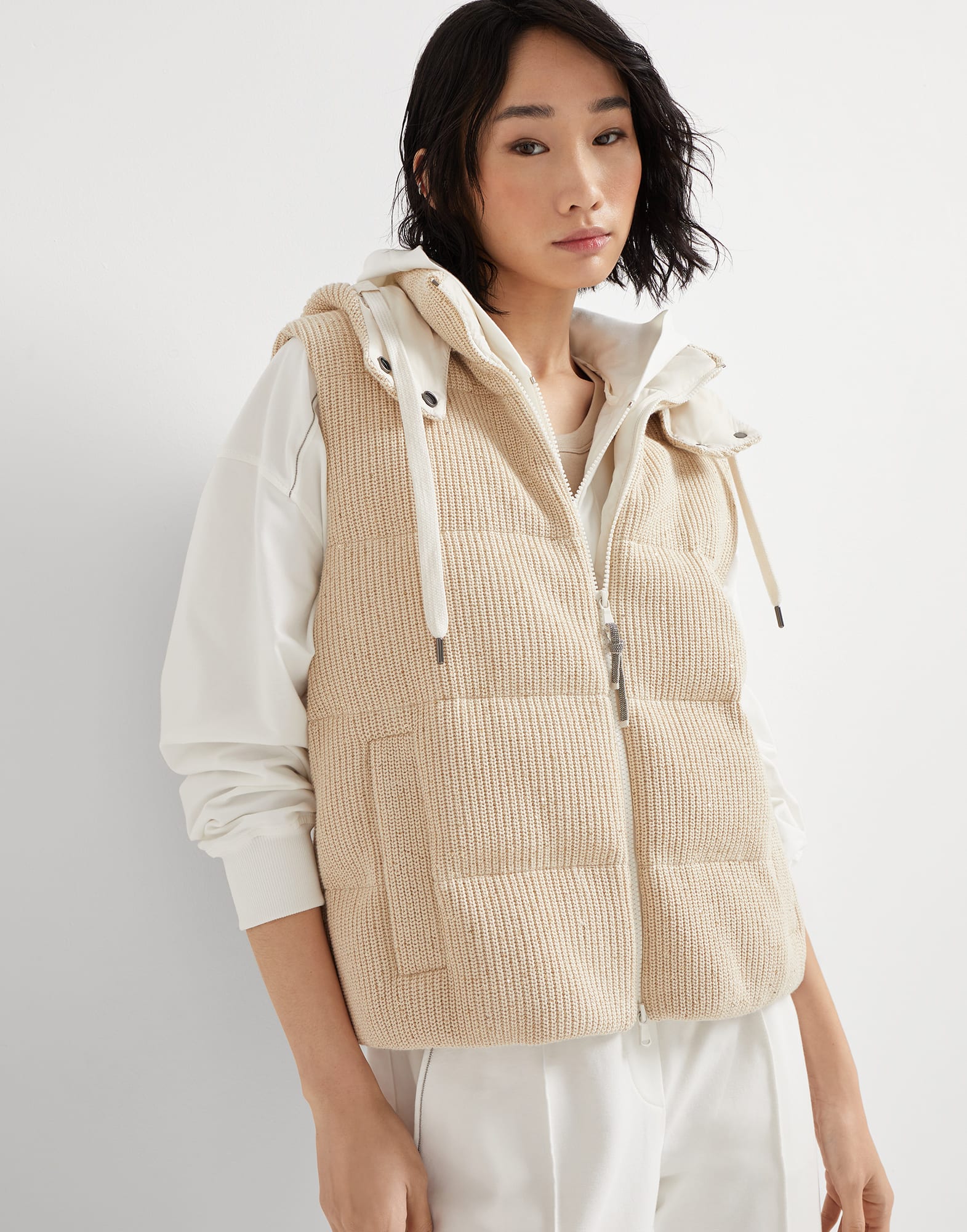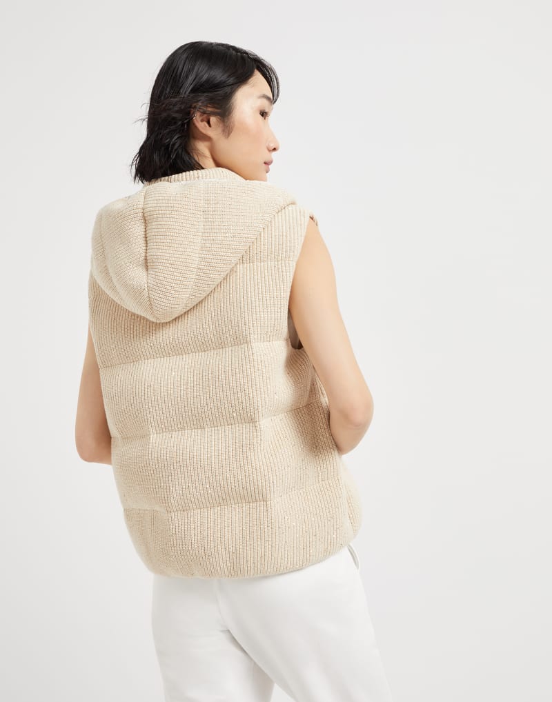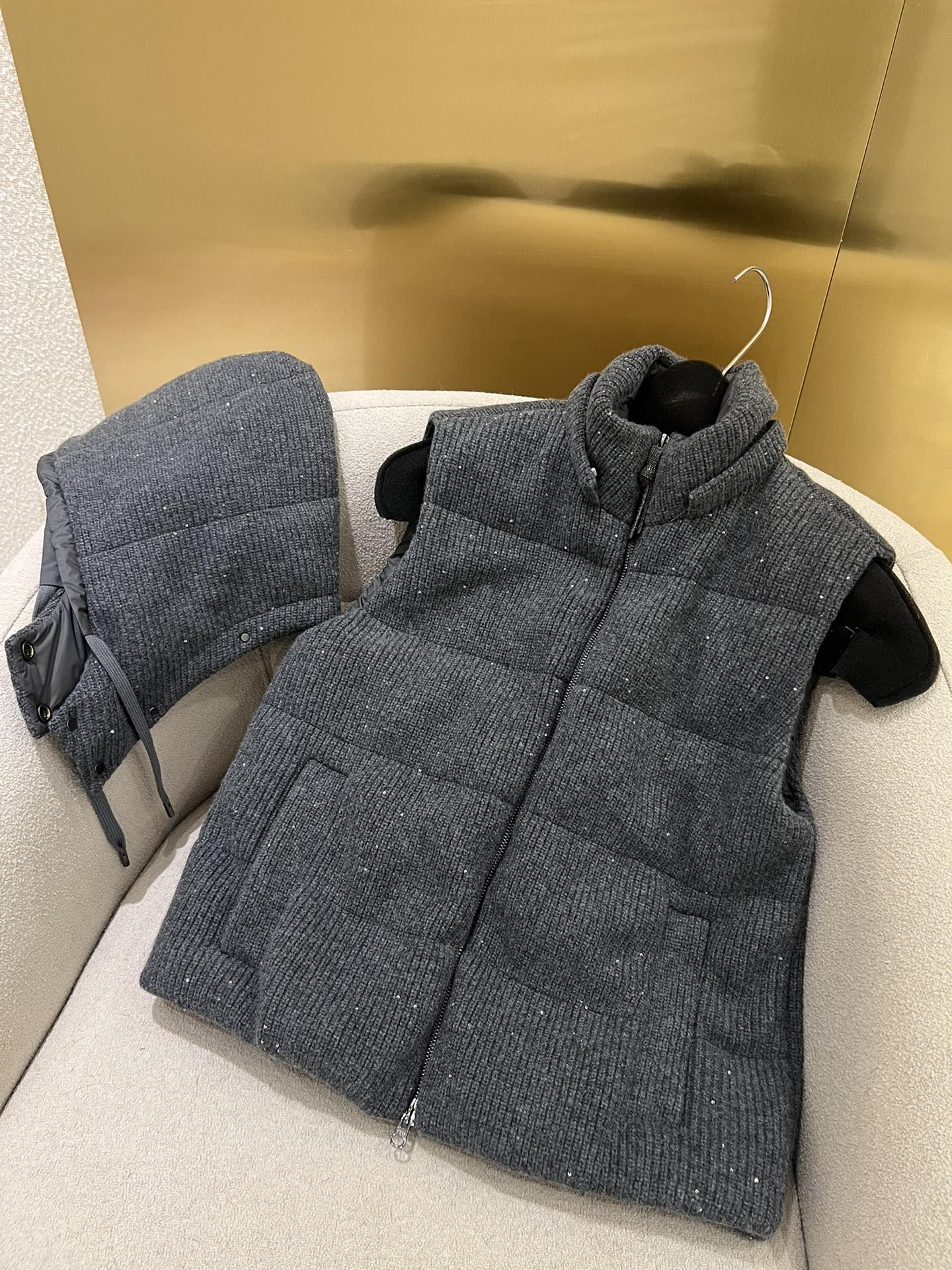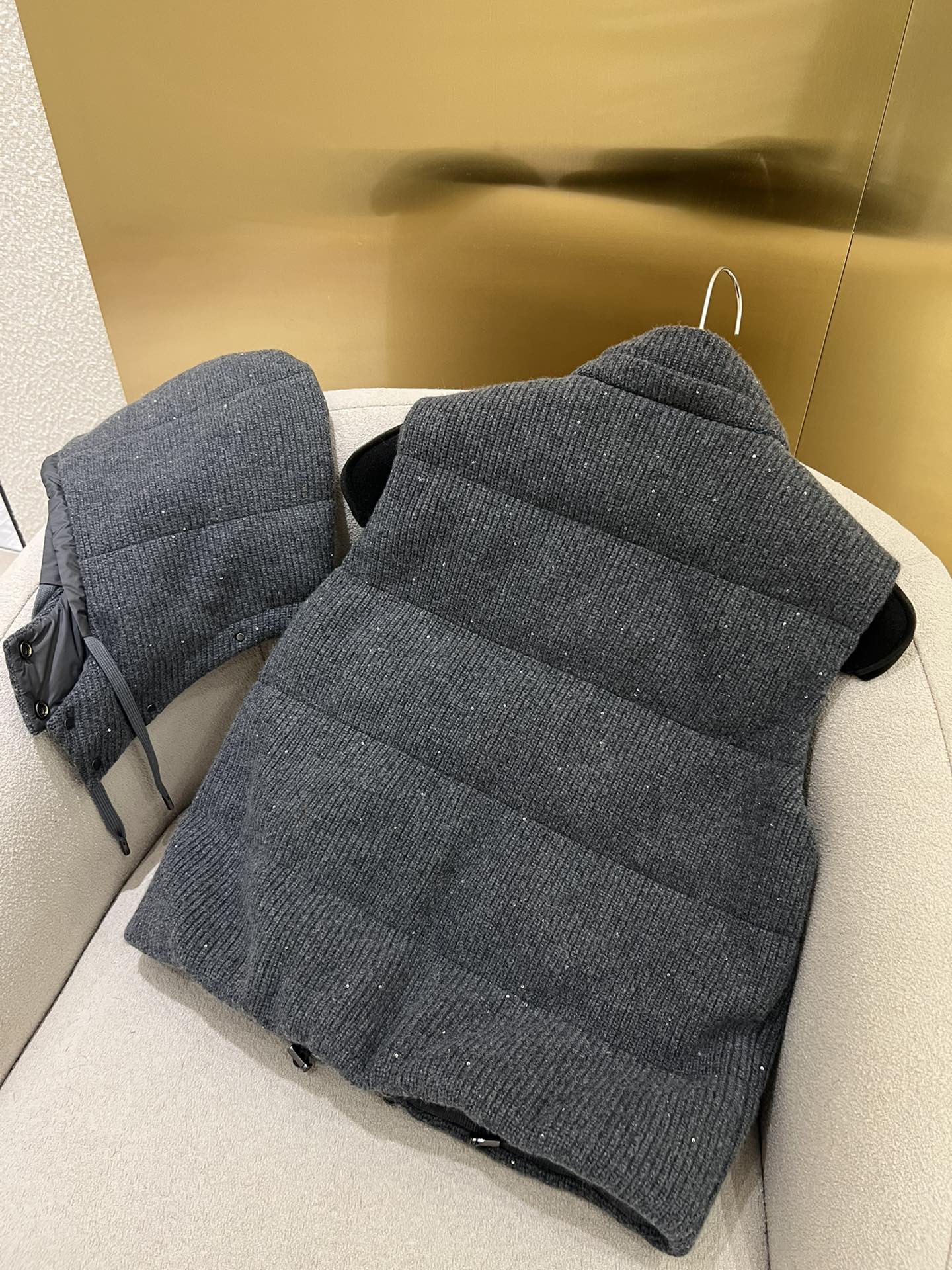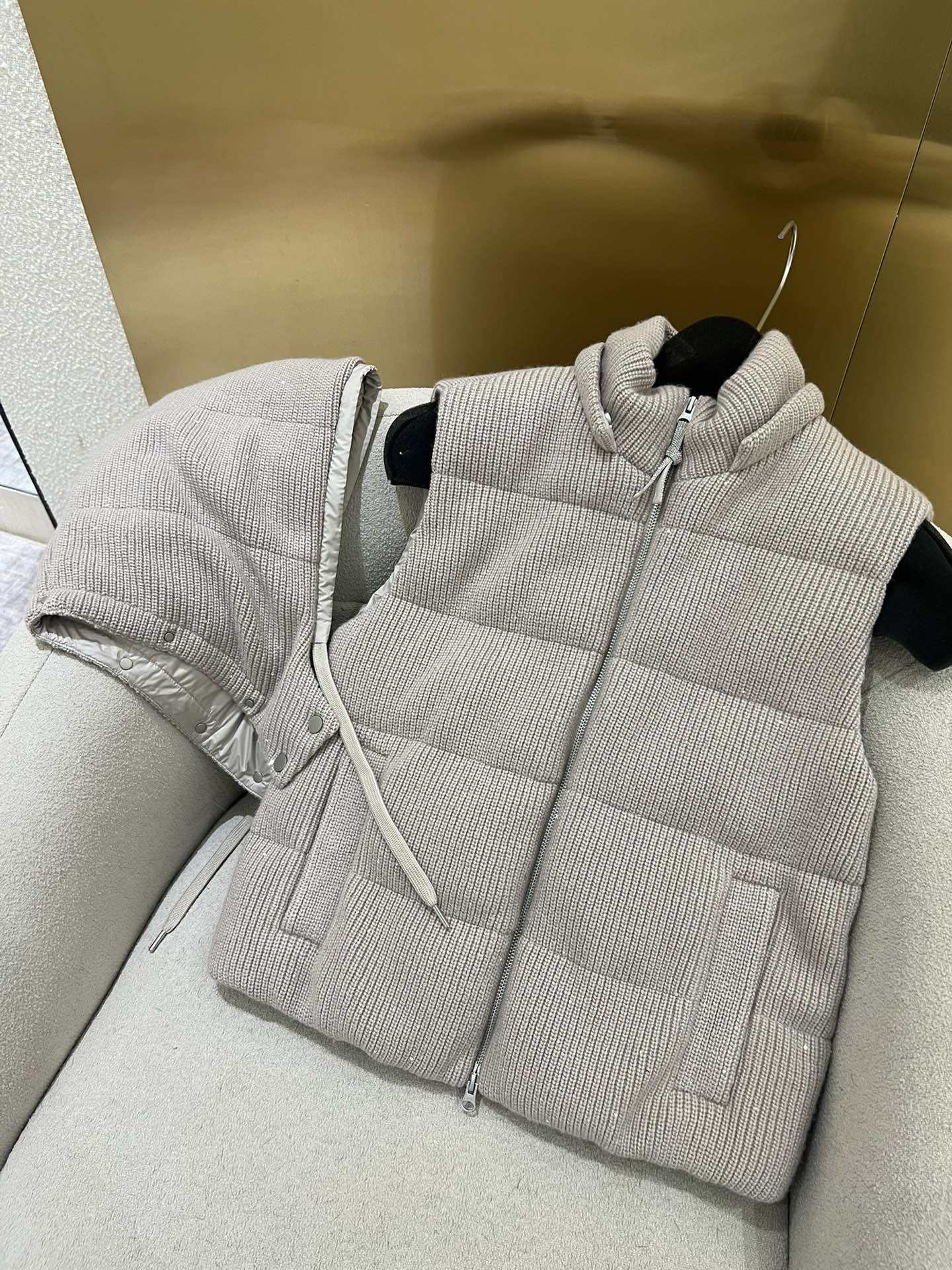 NIGO Brunello Cucinelli Women's Fall/winter Cotton British Ribbed Knit Down Vest Hooded Drawstring Sleeveless Jacket Ngvp #nigo2417