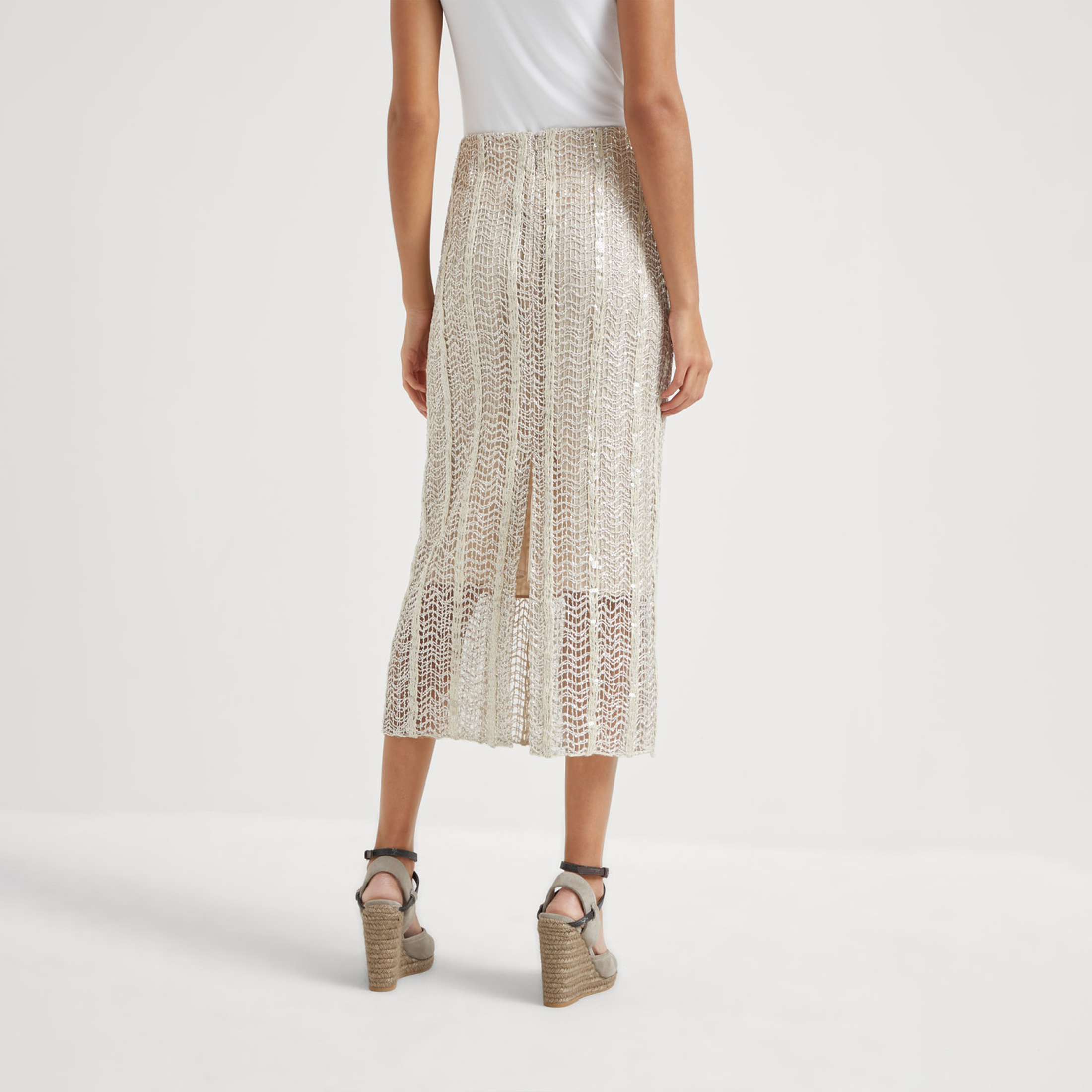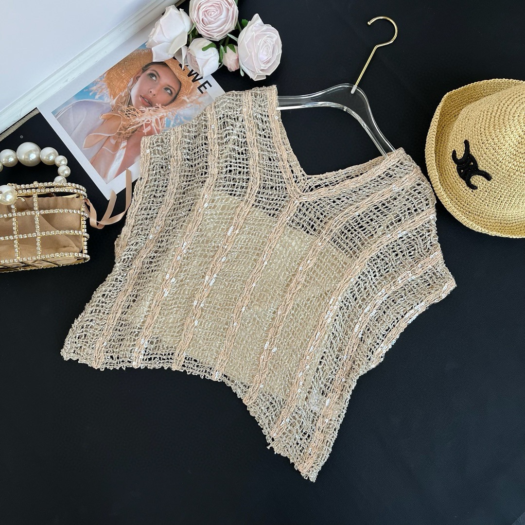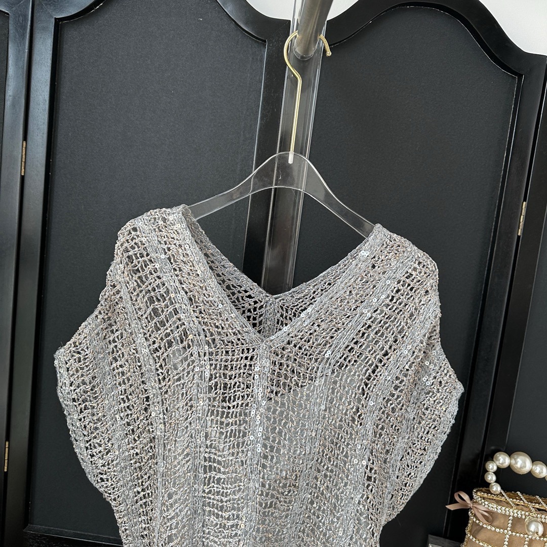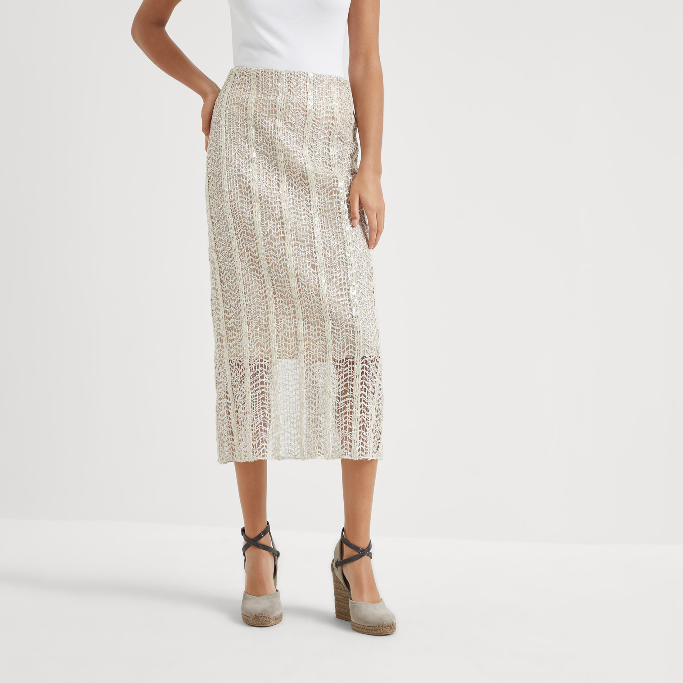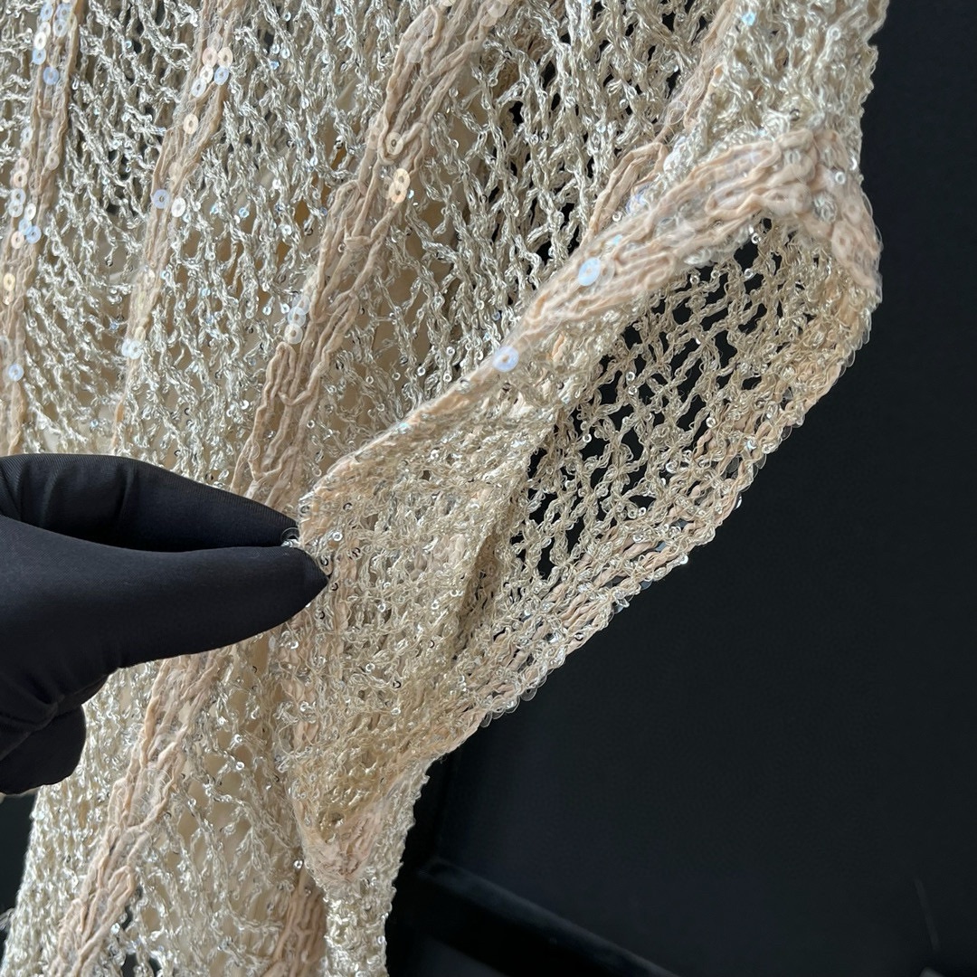 NIGO Brunello Cucinelli Women's Spring And Summer Shining Stripes Decoration Mesh Hole Embroidery T-shirt Half-body Skirt Set Fashion Casual Temperament Suit Set Ngvp #nigo9129