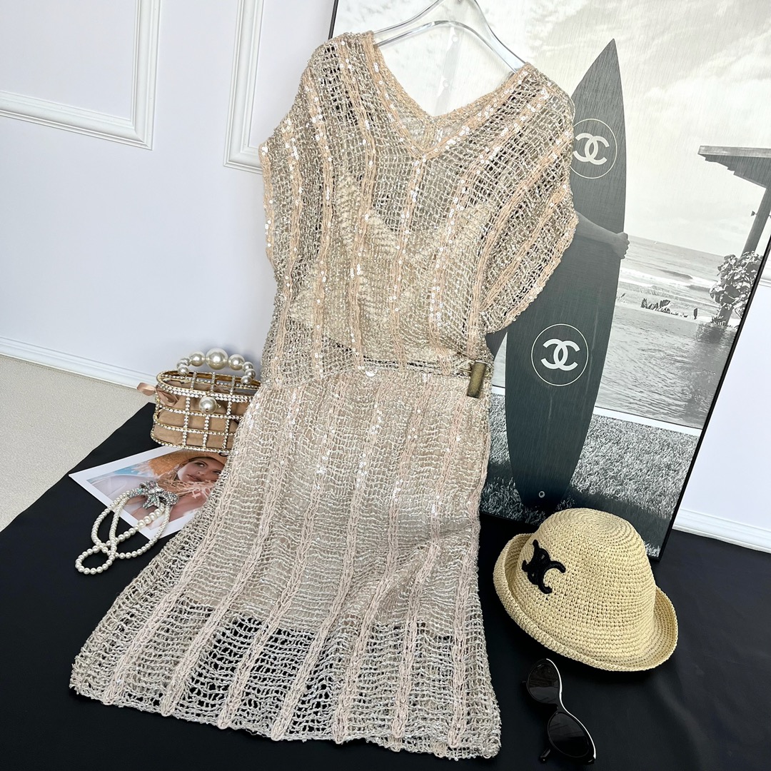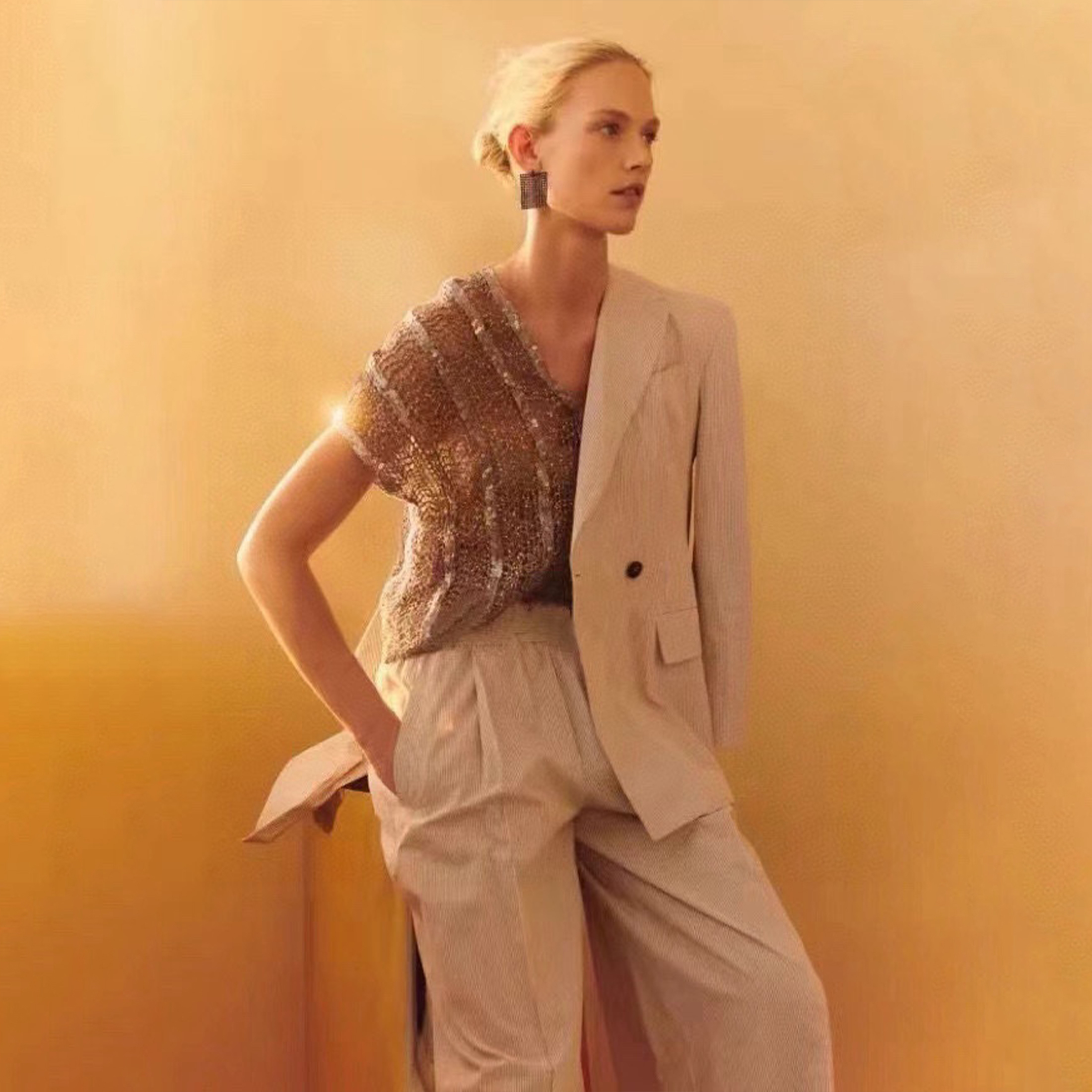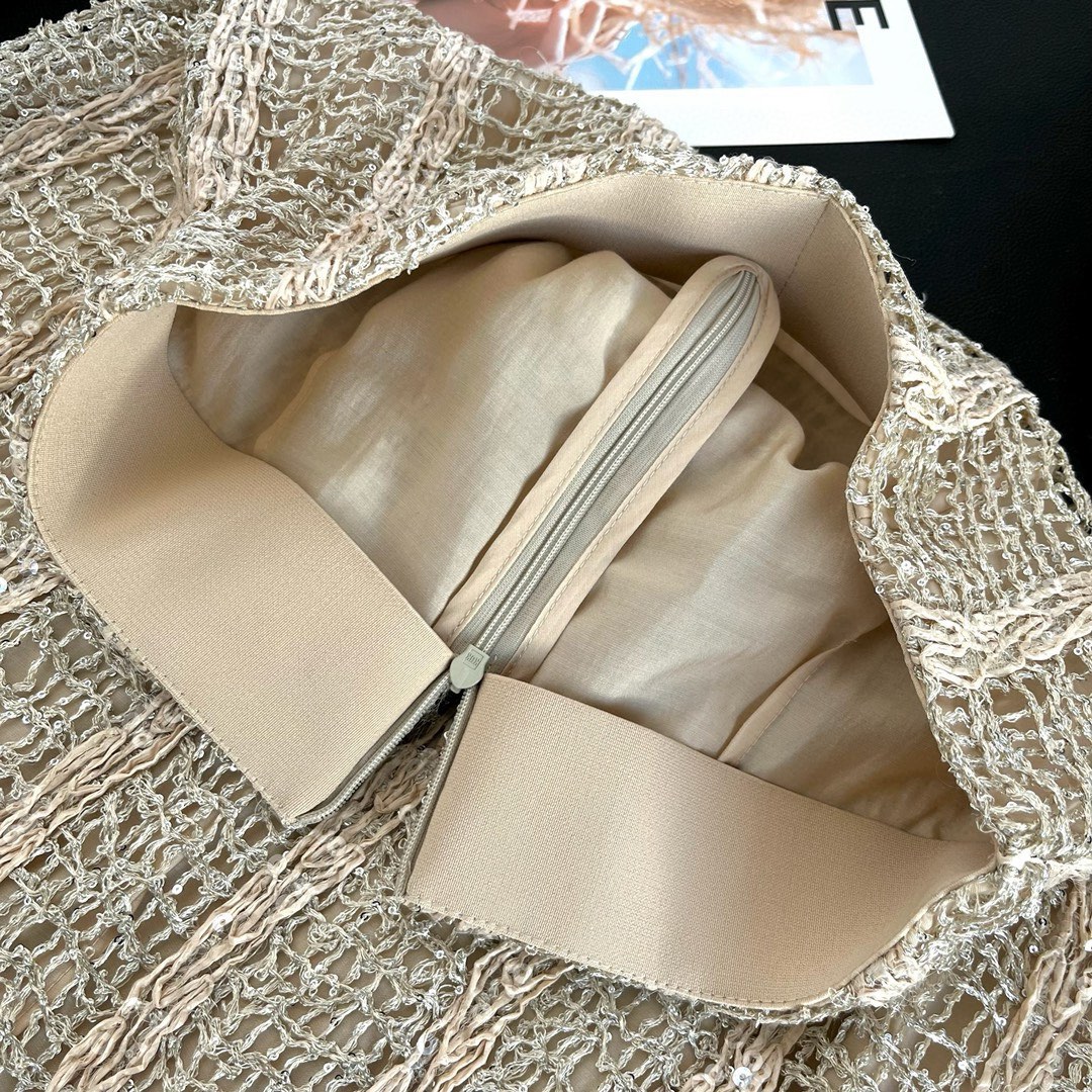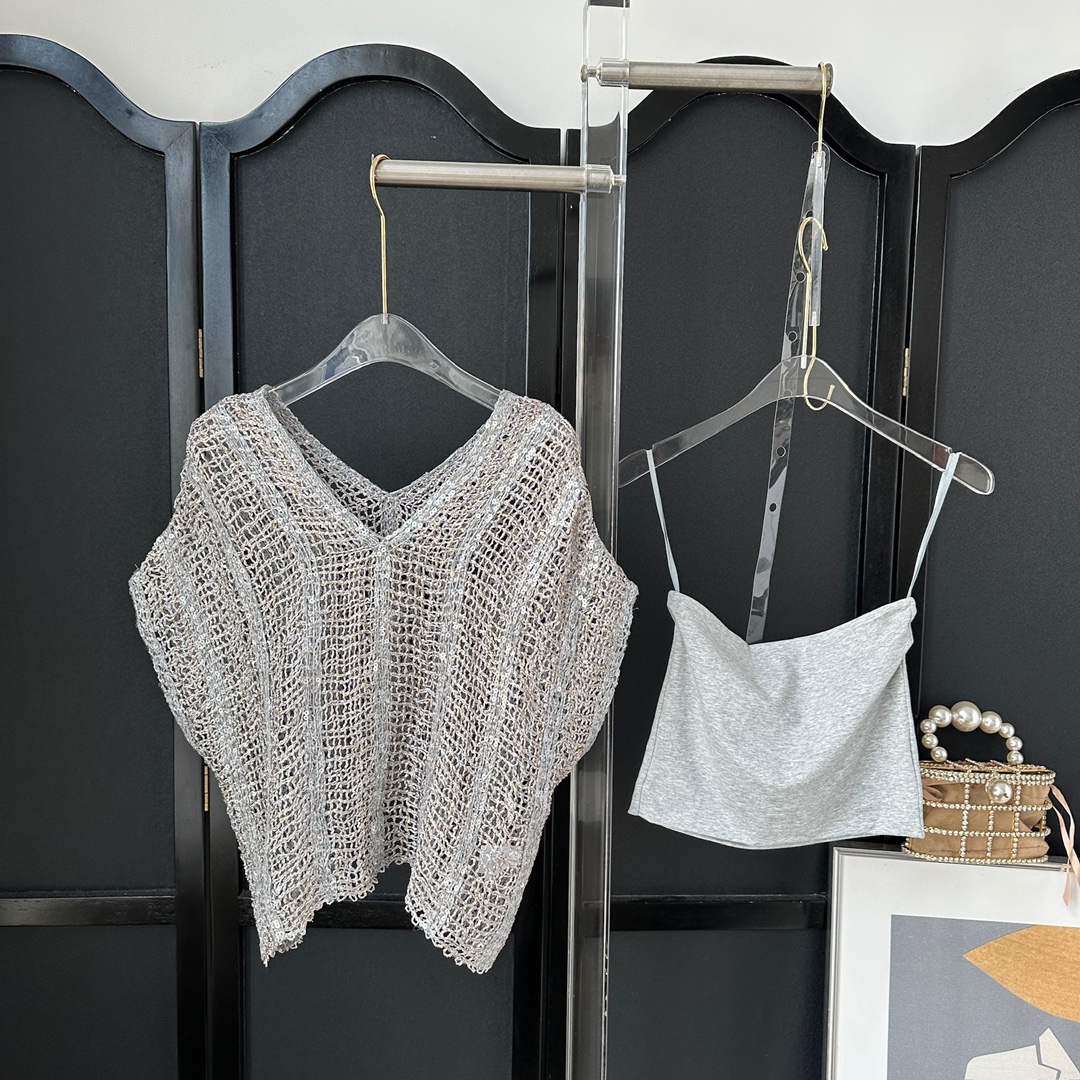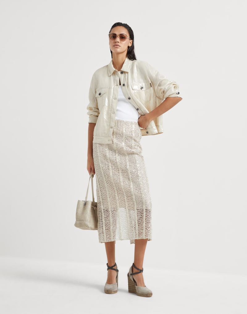 NIGO Brunello Cucinelli Women's Spring And Summer Shining Stripes Decoration Mesh Hole Embroidery T-shirt Half-body Skirt Set Fashion Casual Temperament Suit Set Ngvp #nigo9129