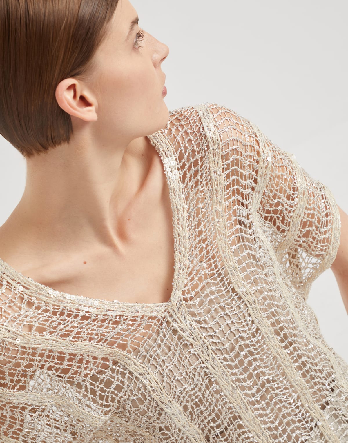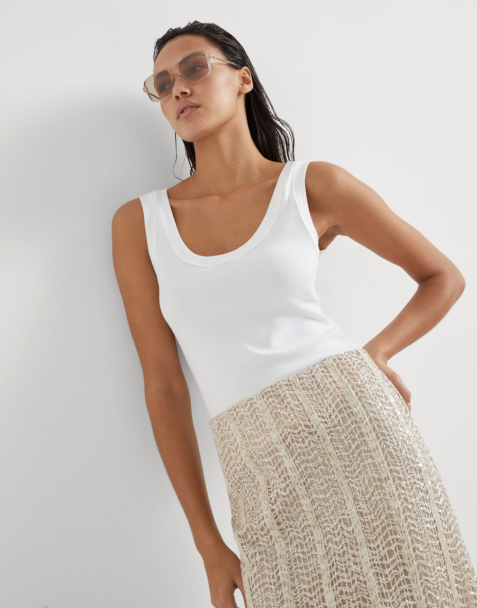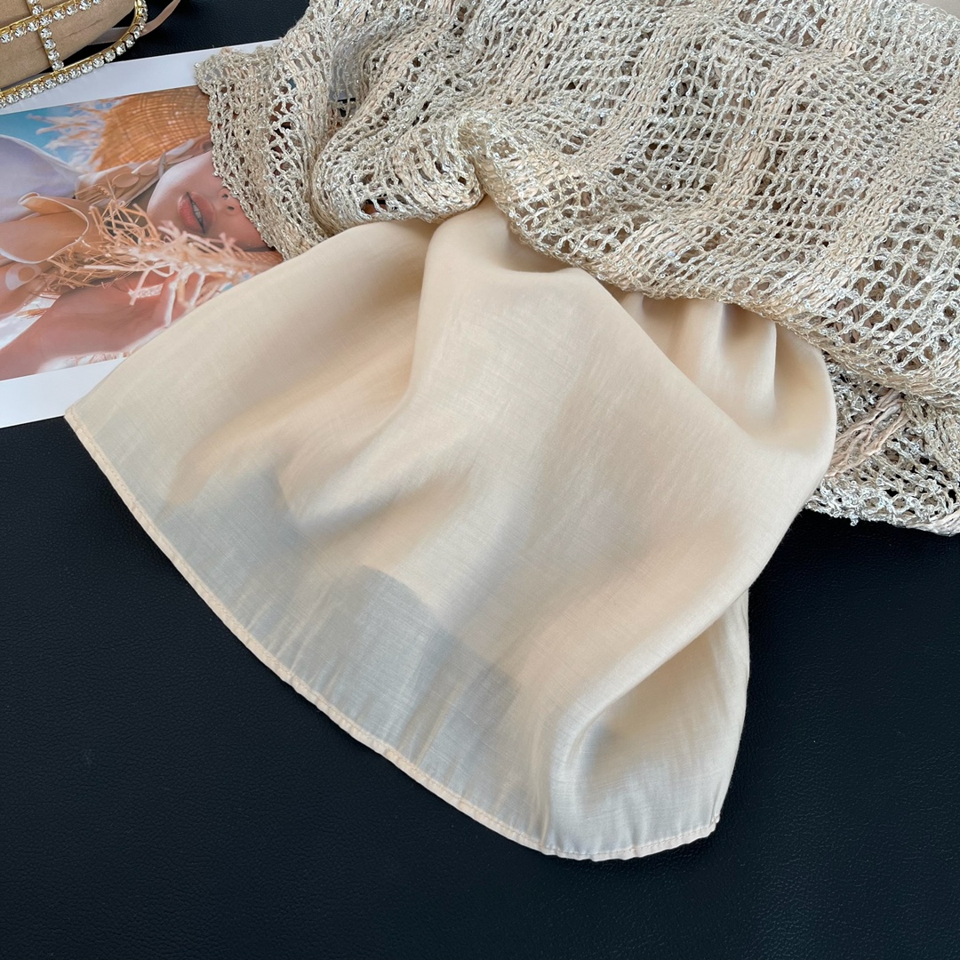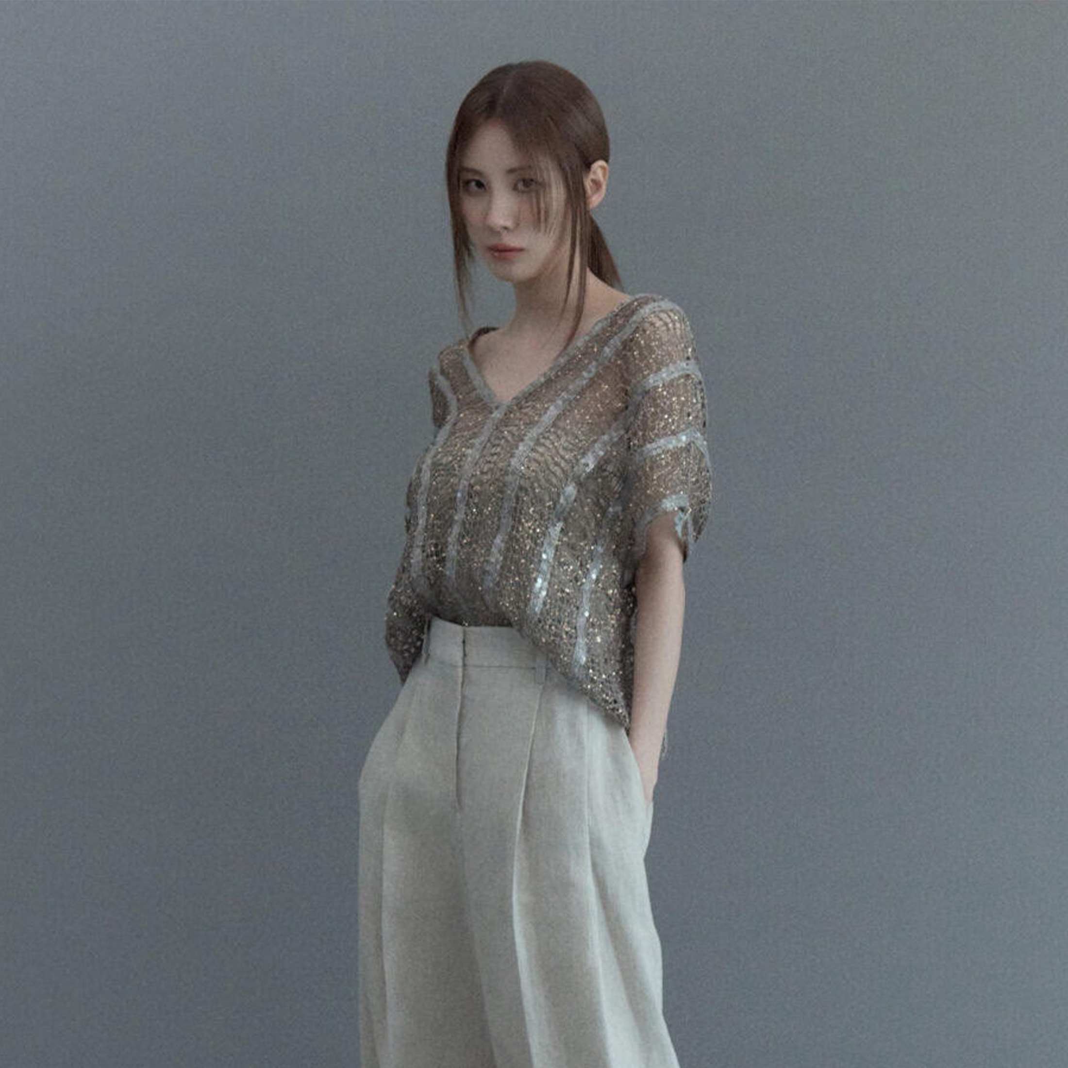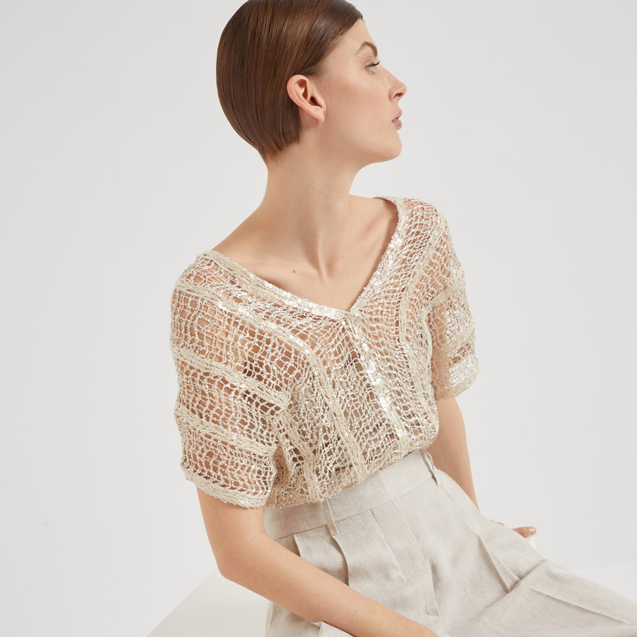 NIGO Brunello Cucinelli Women's Spring And Summer Shining Stripes Decoration Mesh Hole Embroidery T-shirt Half-body Skirt Set Fashion Casual Temperament Suit Set Ngvp #nigo9129