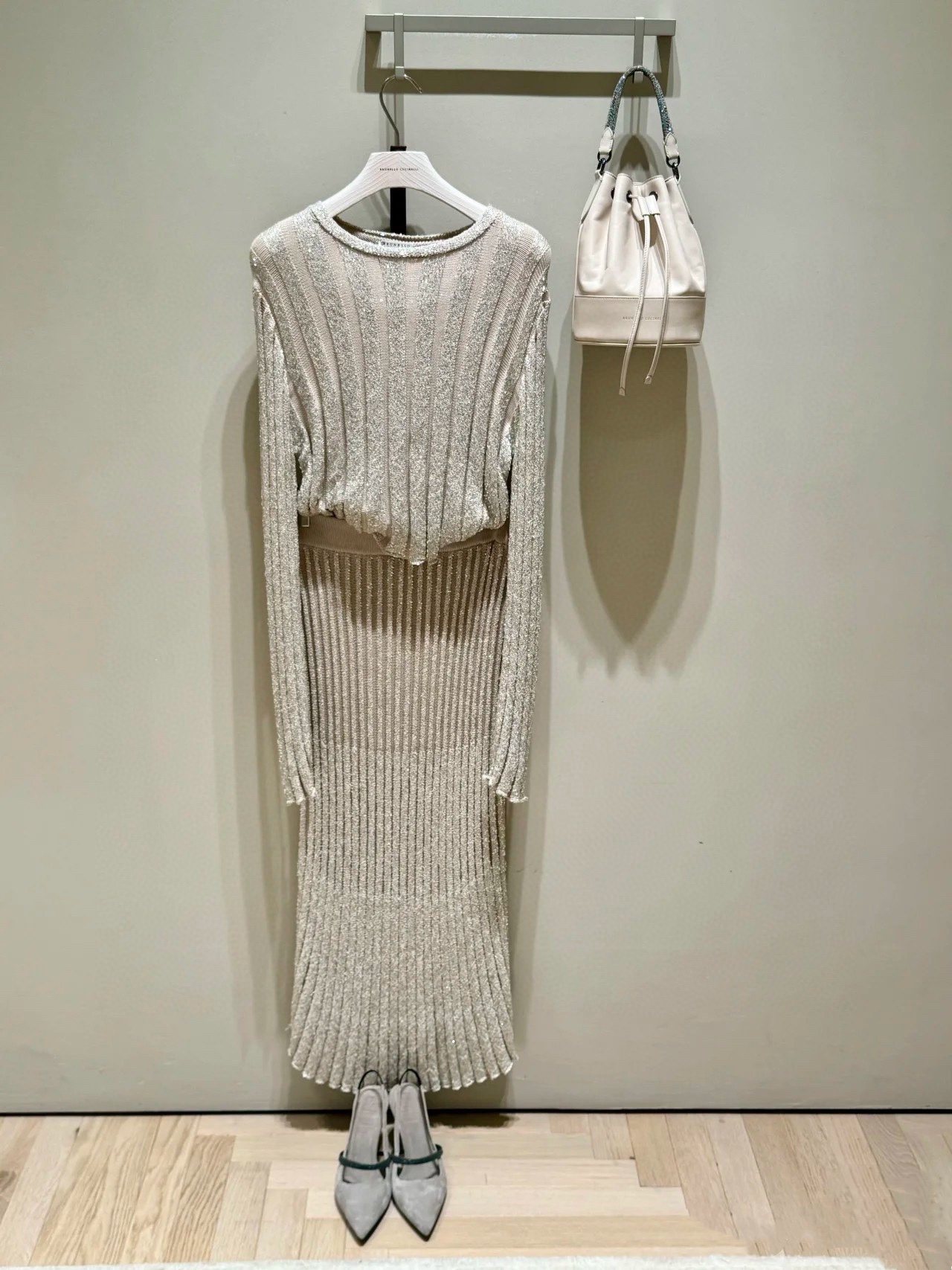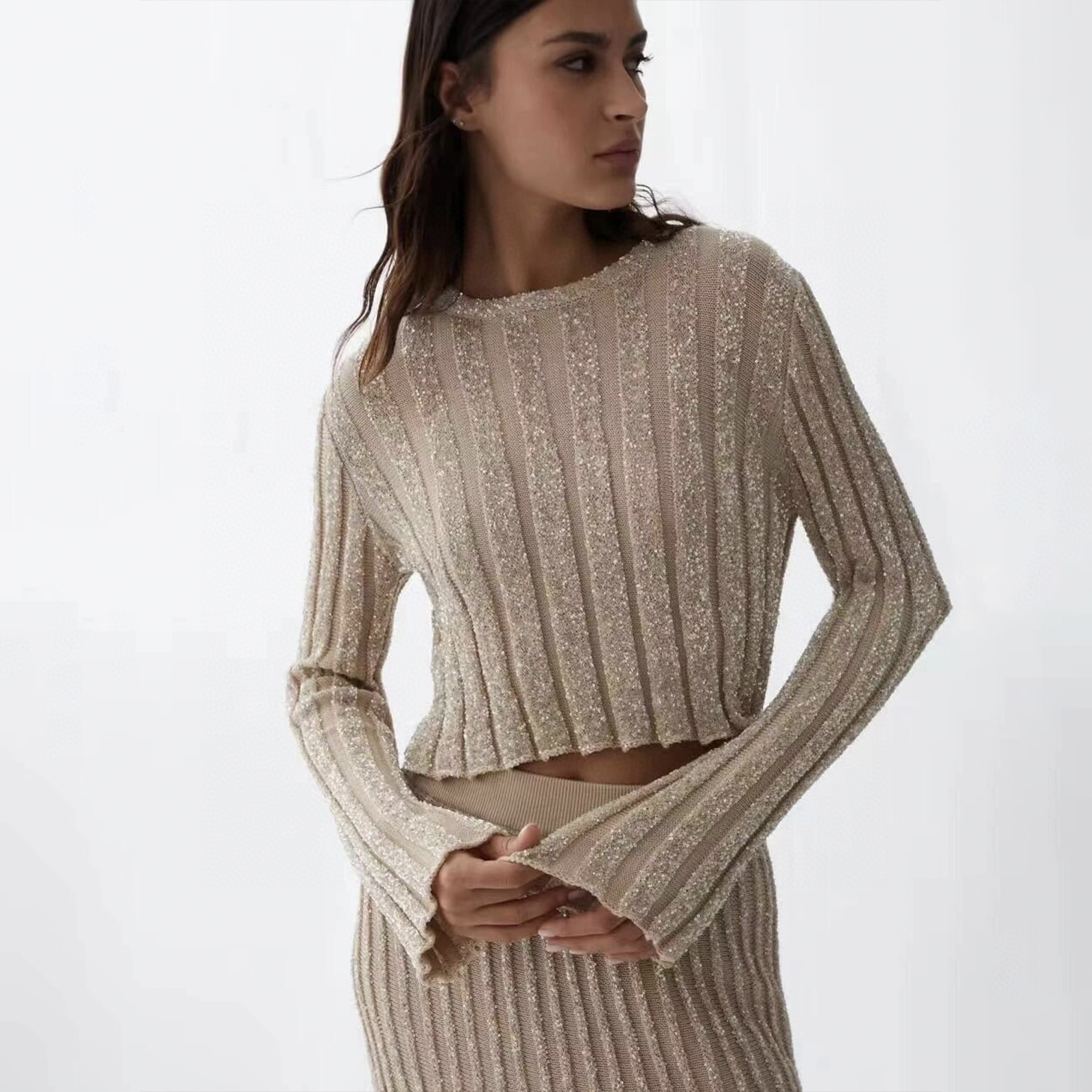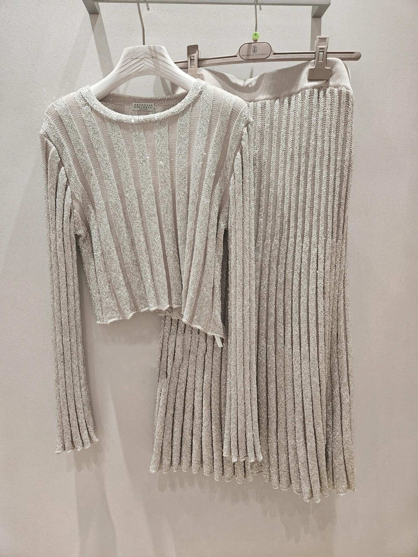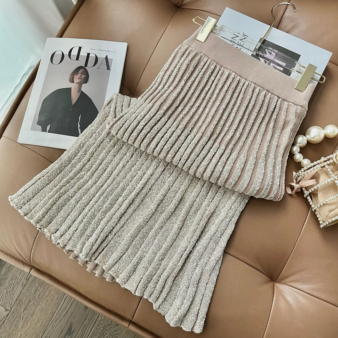 NIGO Brunello Cucinelli Women's Spring/summer Luxury Sequin Knitted Long-sleeved Straight-cut Fitted Skirt Fashionable Elegant Suit Set Ngvp #nigo2162