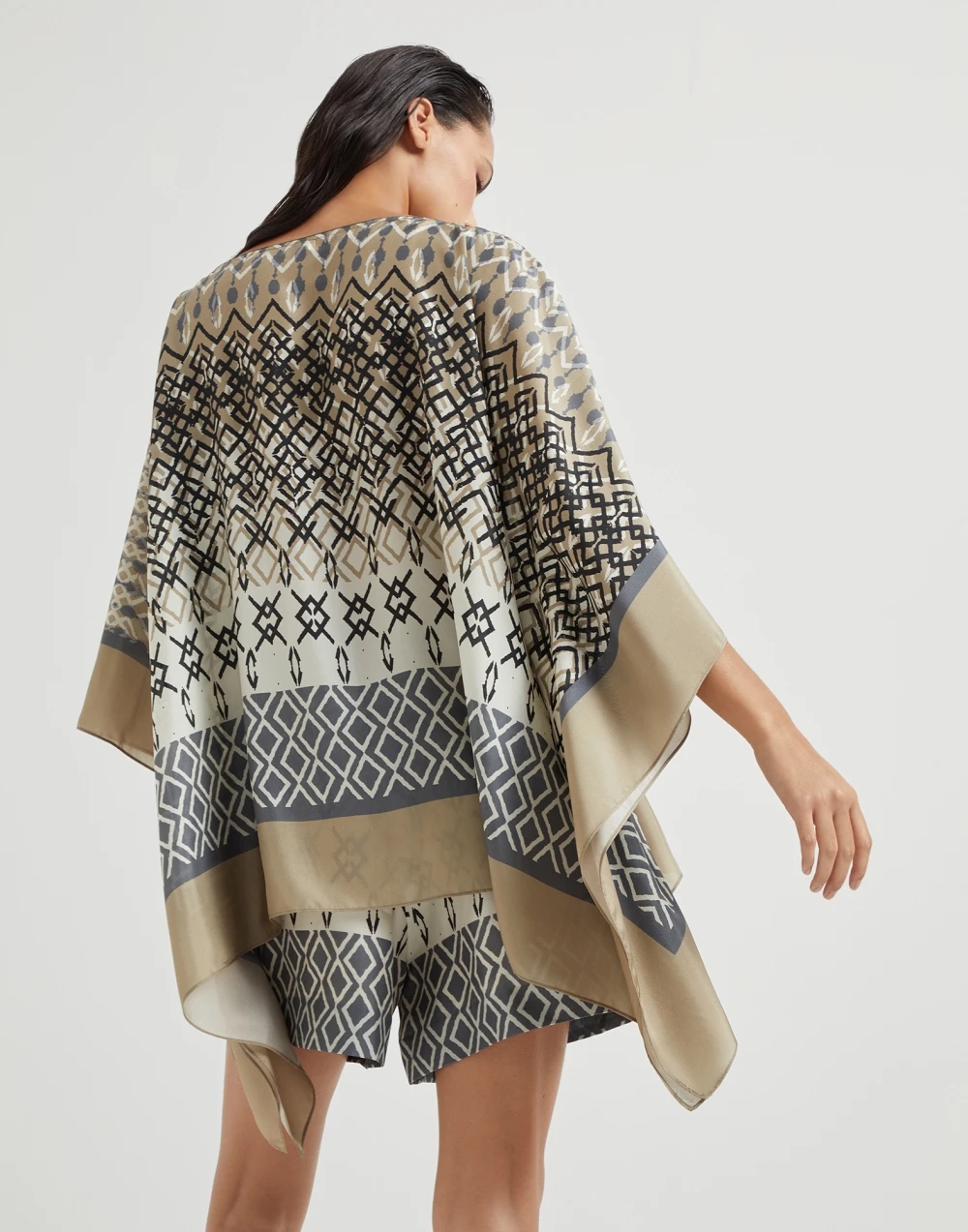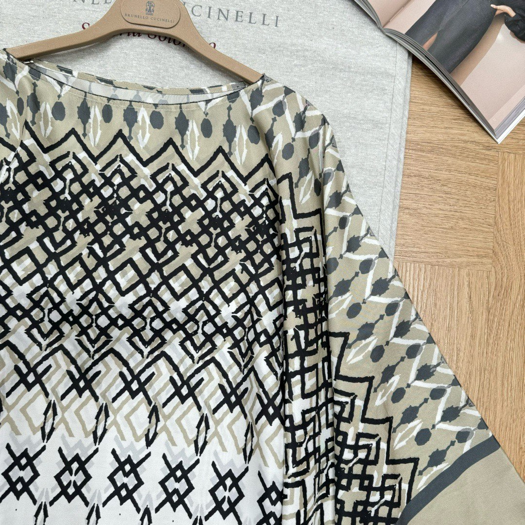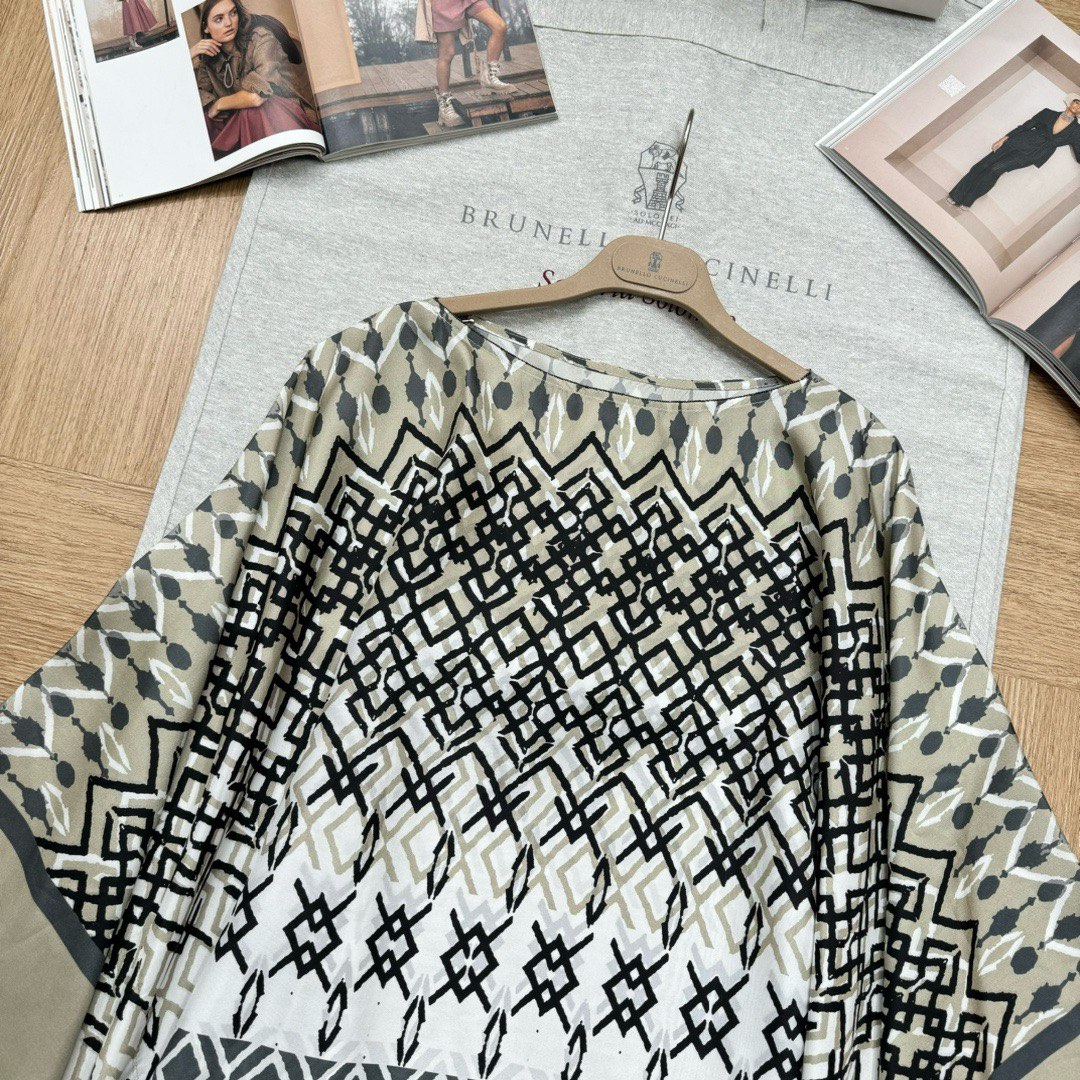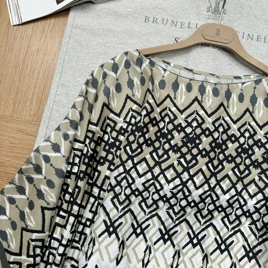 NIGO Brunello Cucinelli Women's Summer Ethnic Printed Silk Top Casual Loose Poncho pongée Cape Ngvp #nigo8666