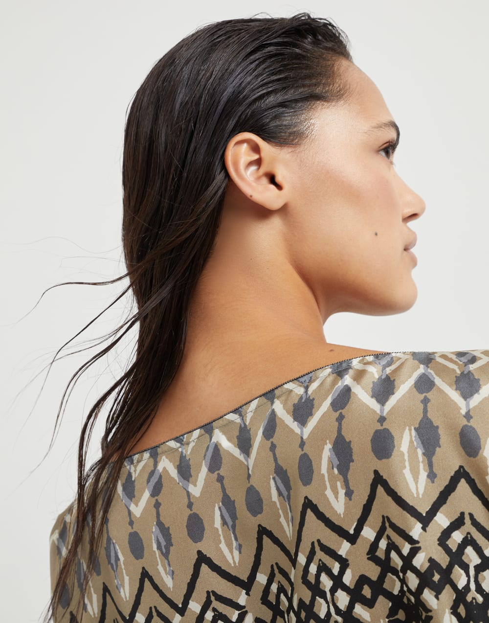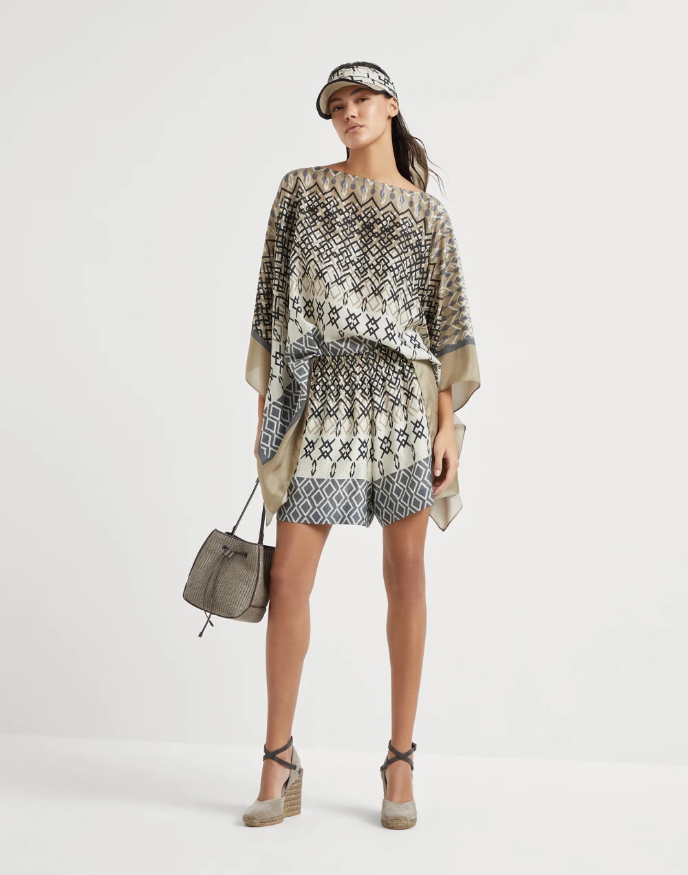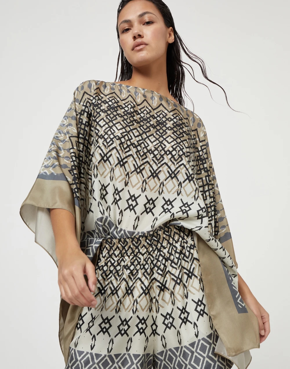 NIGO Brunello Cucinelli Women's Summer Ethnic Printed Silk Top Casual Loose Poncho pongée Cape Ngvp #nigo8666