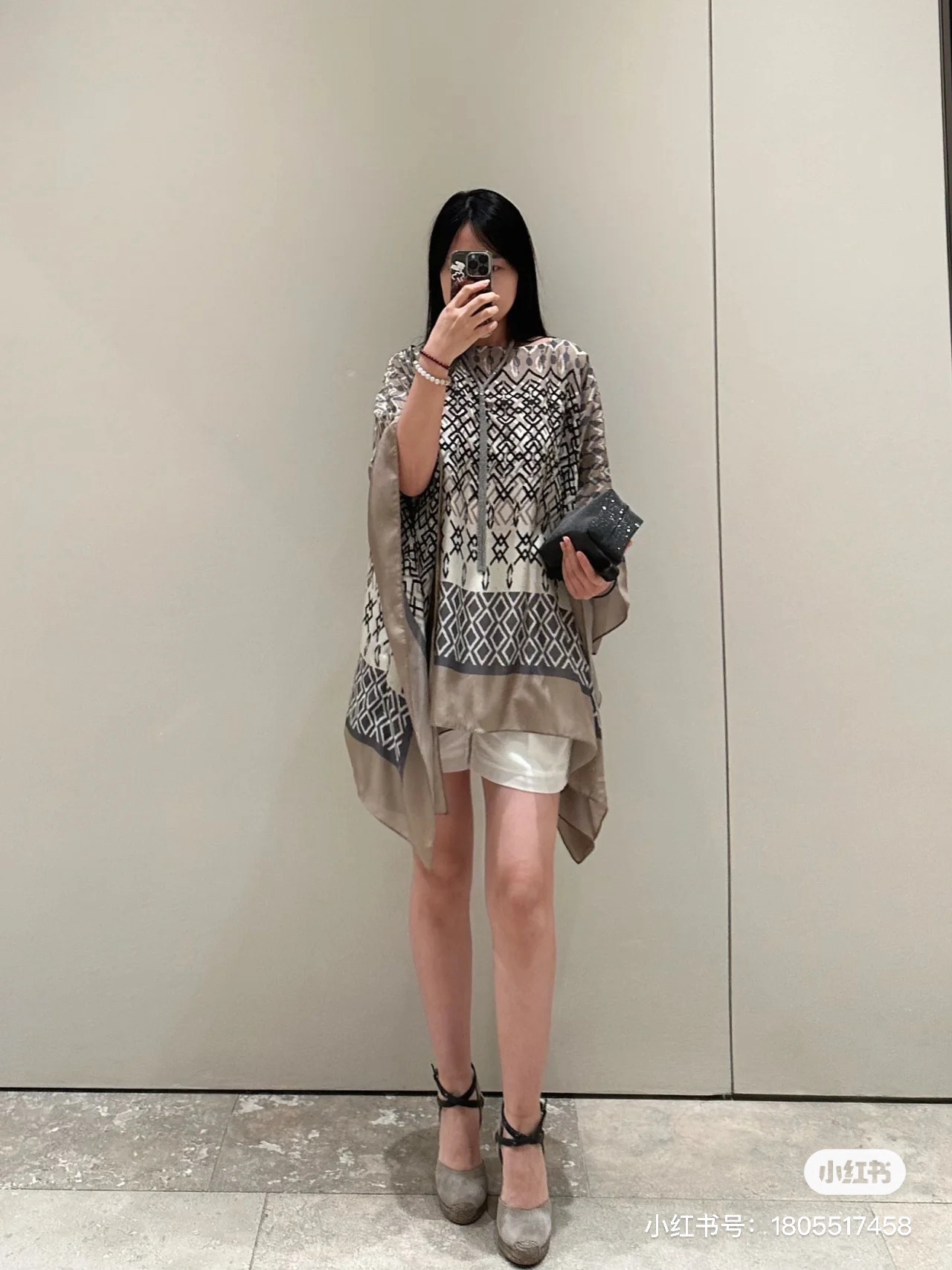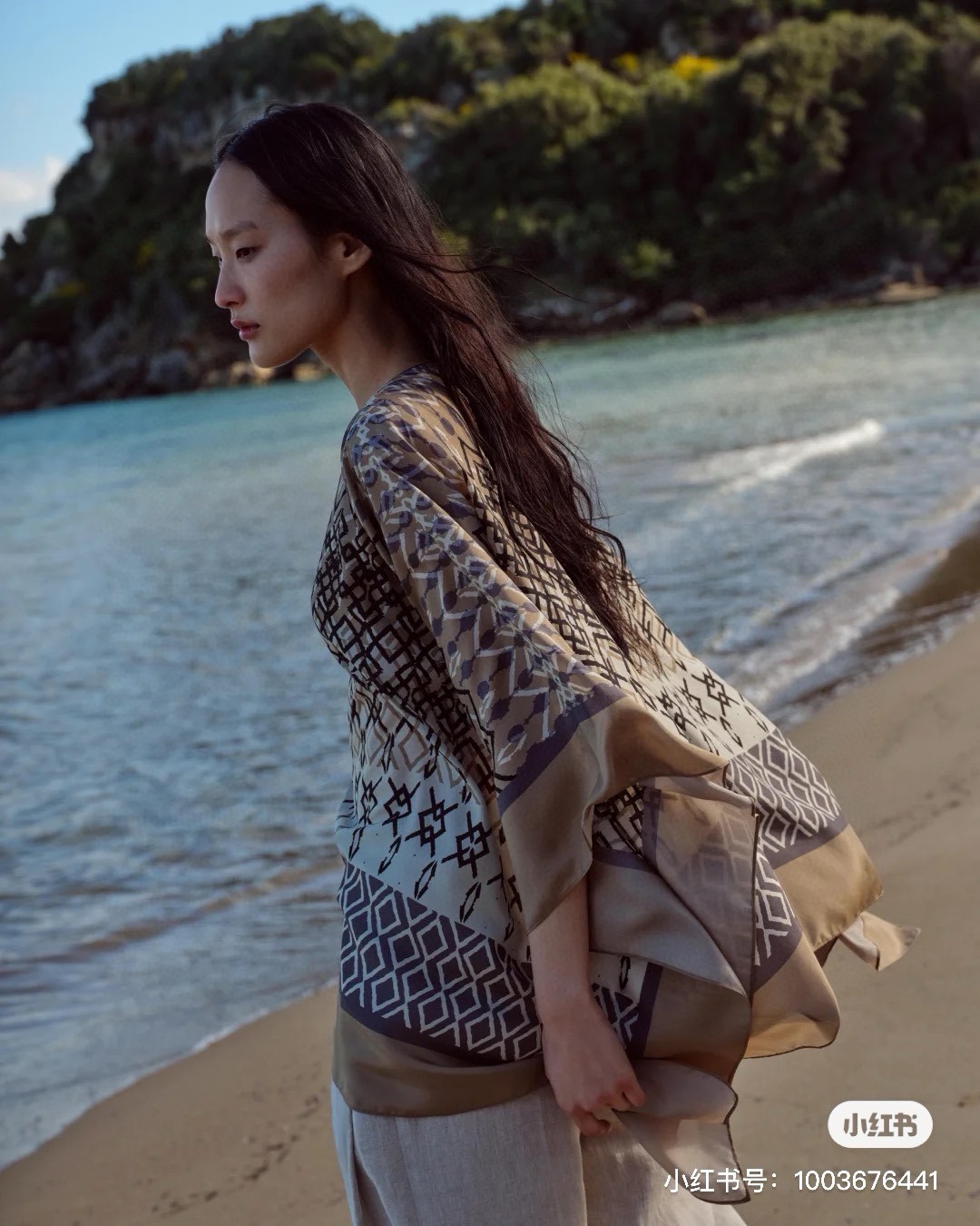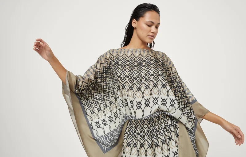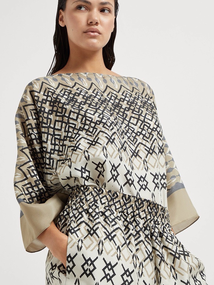 NIGO Brunello Cucinelli Women's Summer Ethnic Printed Silk Top Casual Loose Poncho pongée Cape Ngvp #nigo8666