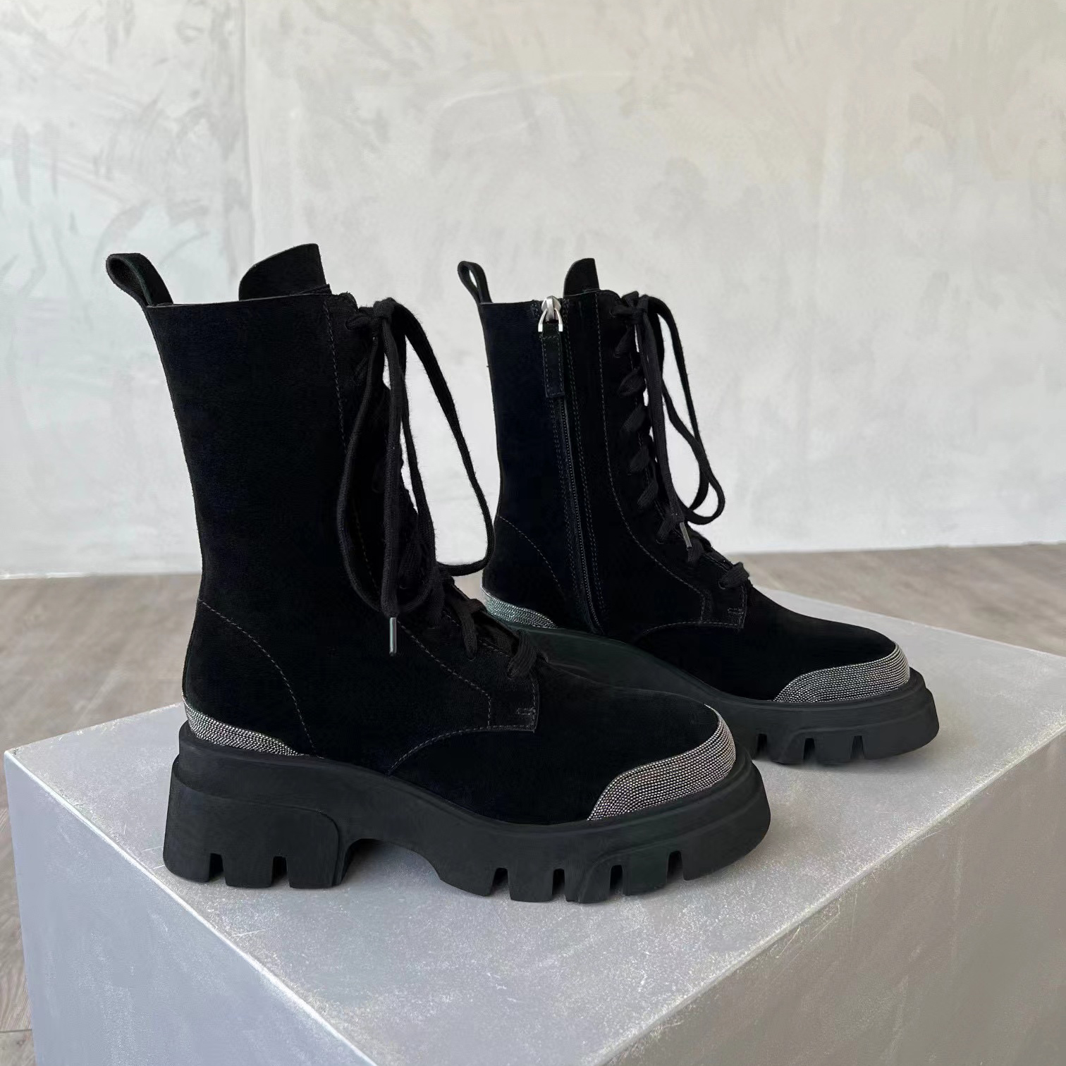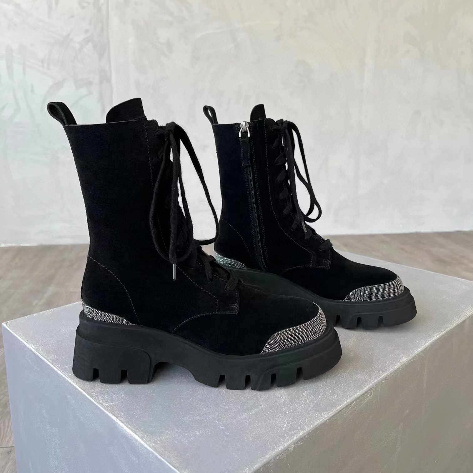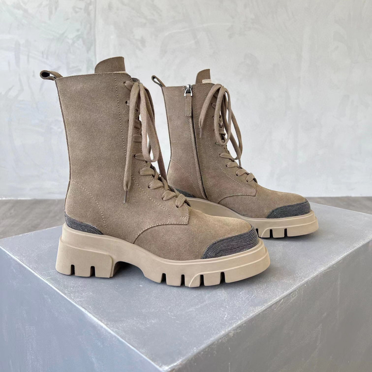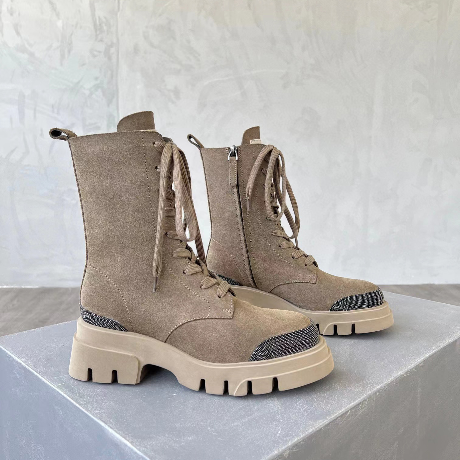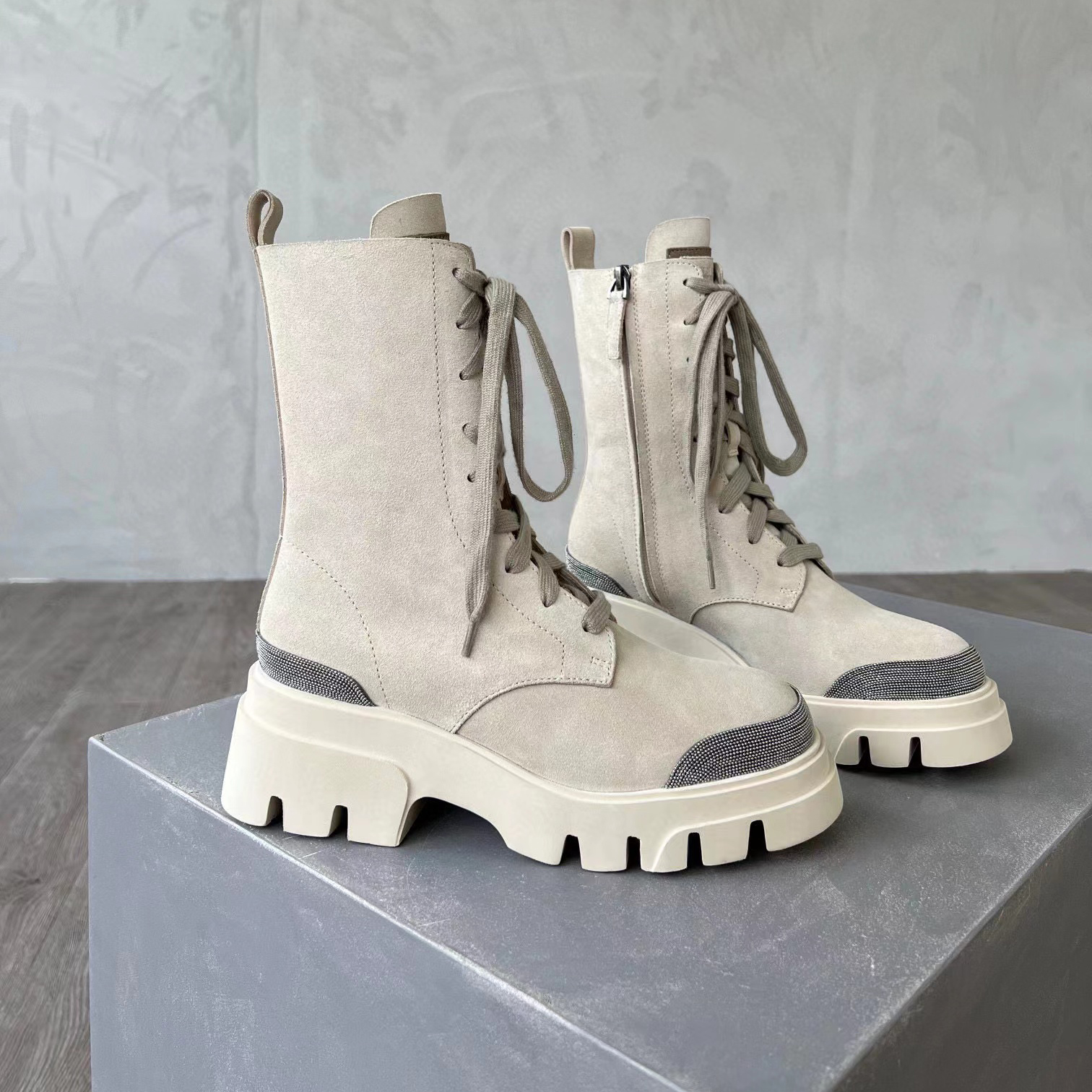 Brunello Cucinelli Women's Long Zip-Up Boots with Drill Shoes #nigo51224