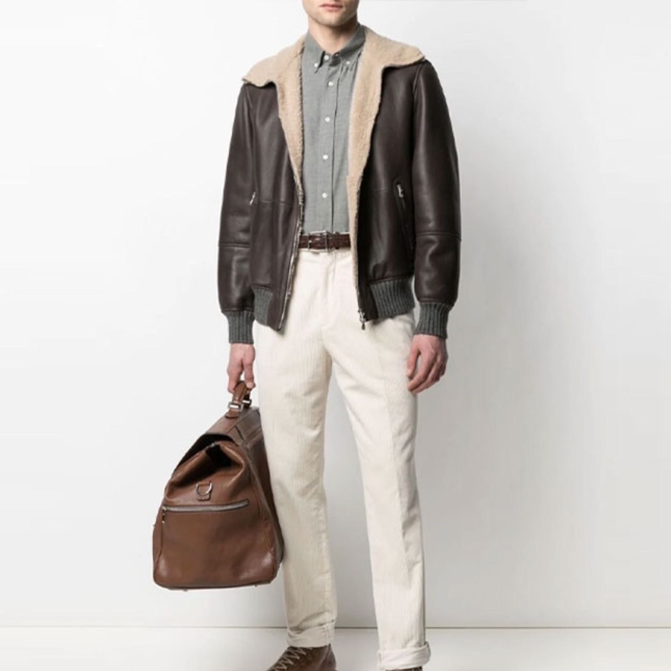 Brunello Cucinelli FW21 Leather And Fur Integrated Pilot Style Coat Leather Jacket Ngvp #nigo6618
