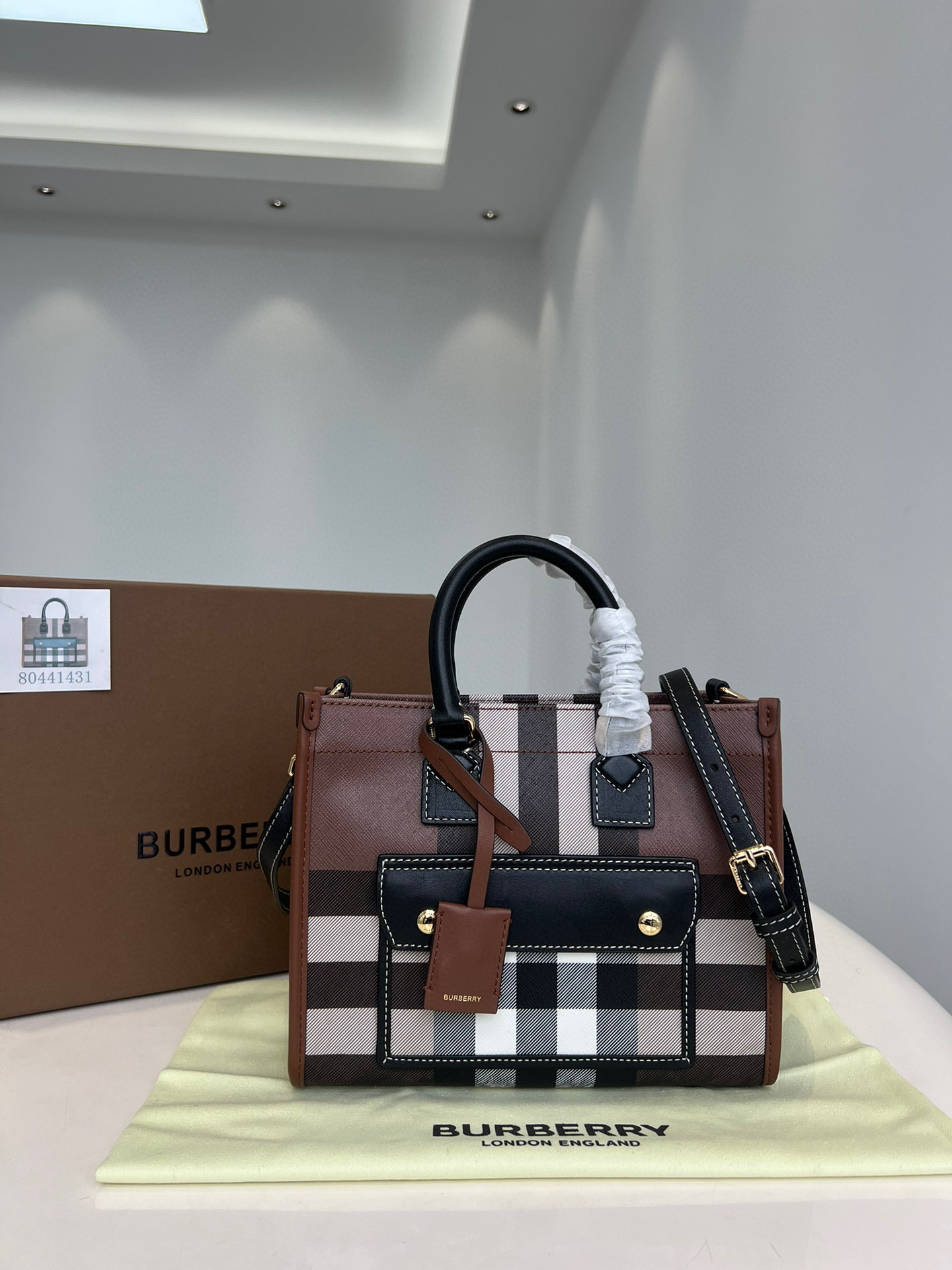 Burberry Freya Checkered Leather Tote Bag #nigo8564