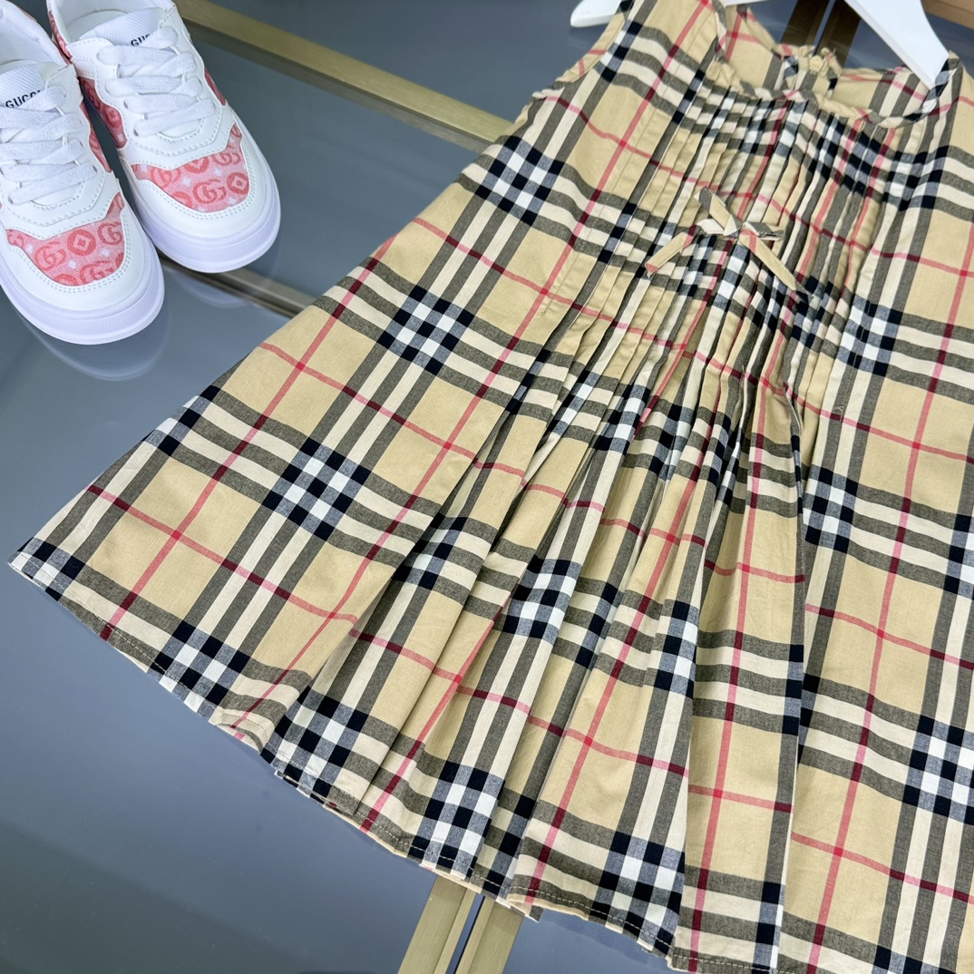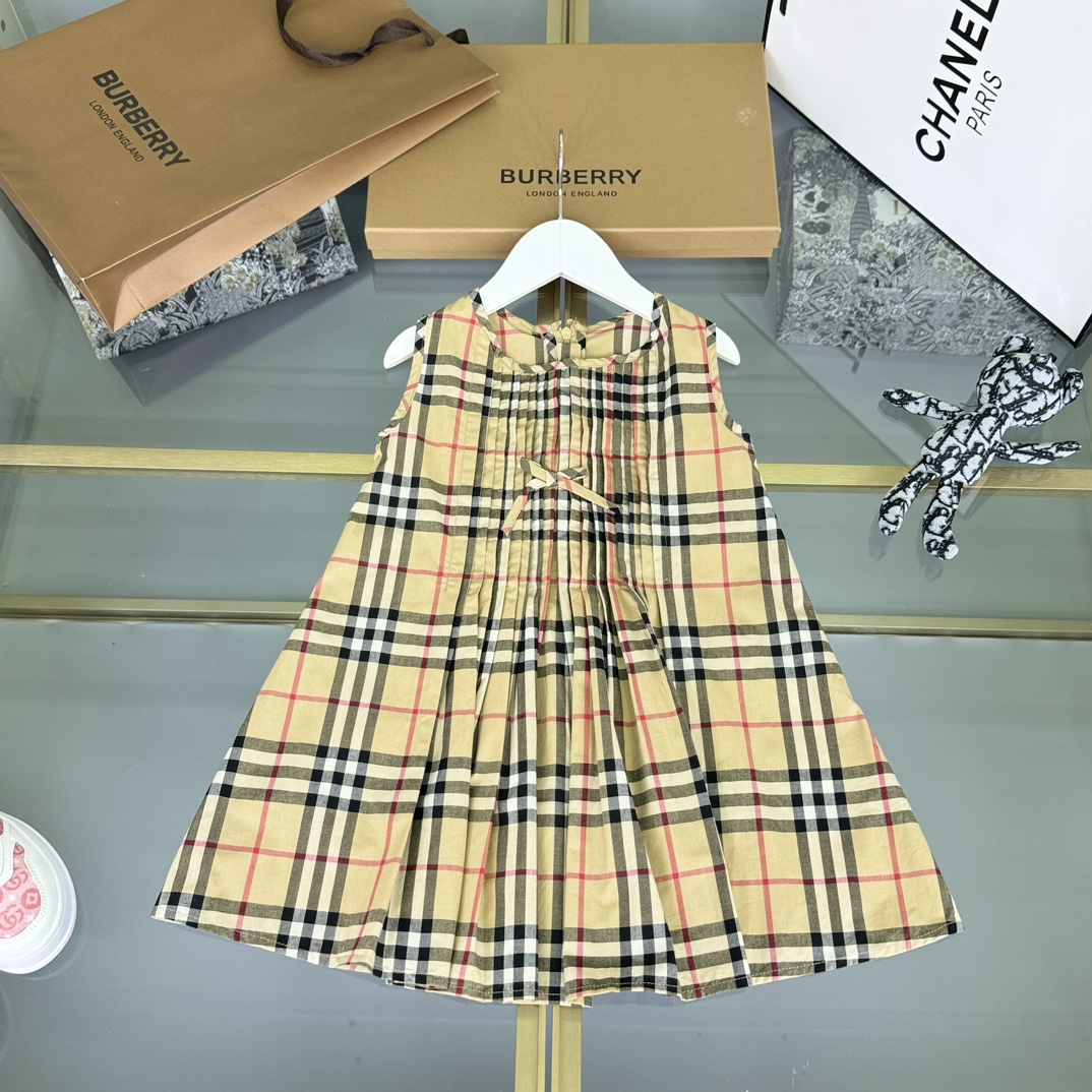 NIGO Burberry Kid's Summer Plaid Full Print Cotton Round Neck Short Pleated Sleeveless Dress #nigo31313