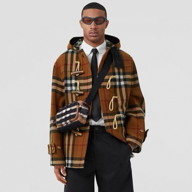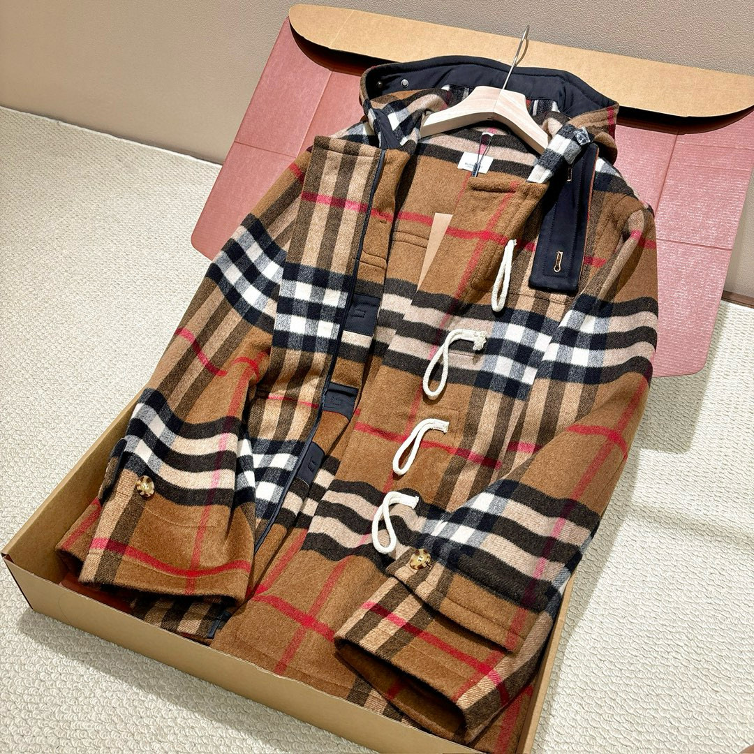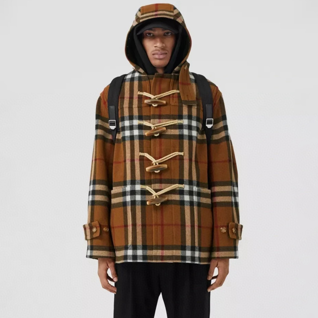 NIGO Burberry Men's And Women's Fall/winter Fashion Casual Checkered Hooded Single Breasted Short Coat With Horn Buttons Jacket #nigo79427