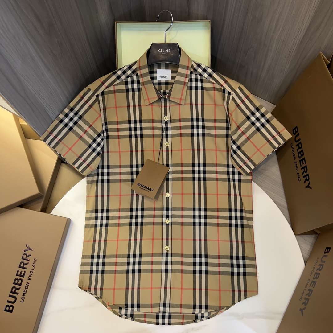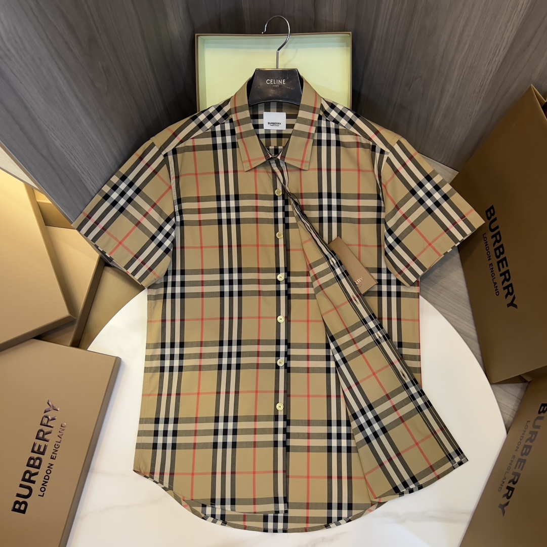 NIGO Burberry Men's Summer Checkered Print Single-Breasted Collar Short-Sleeved Shirt #nigo77686