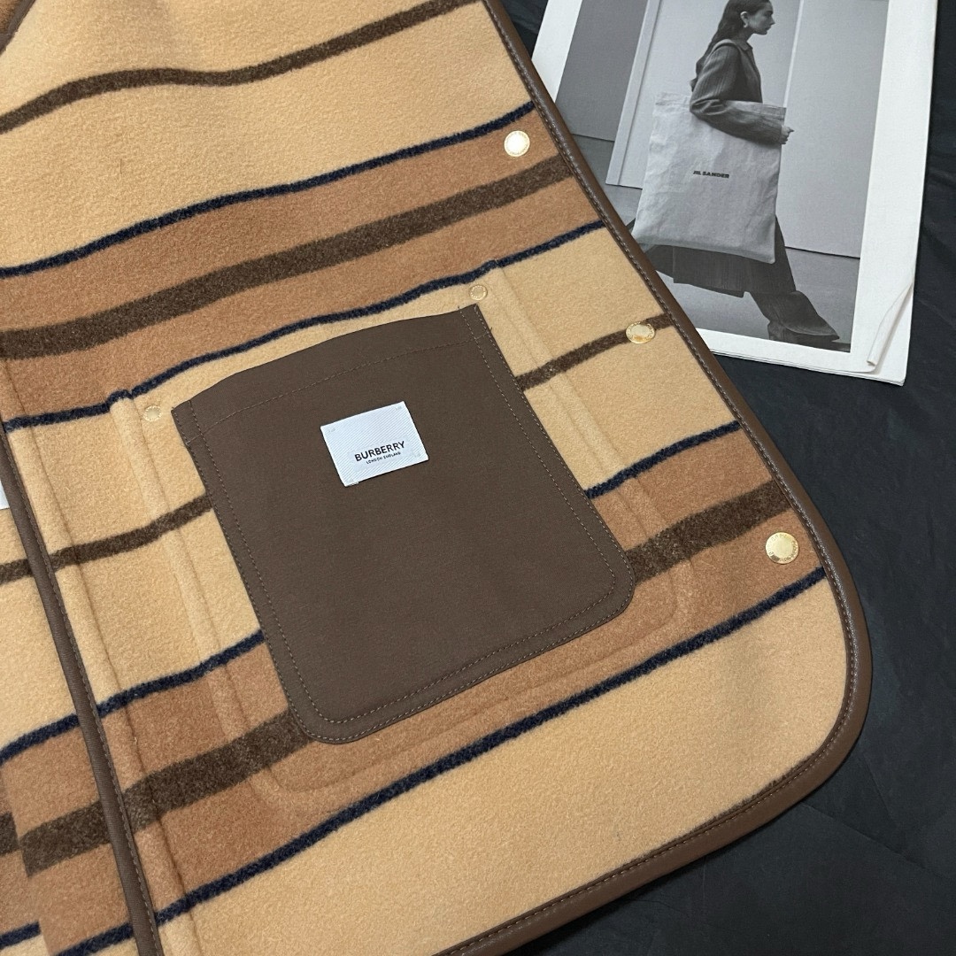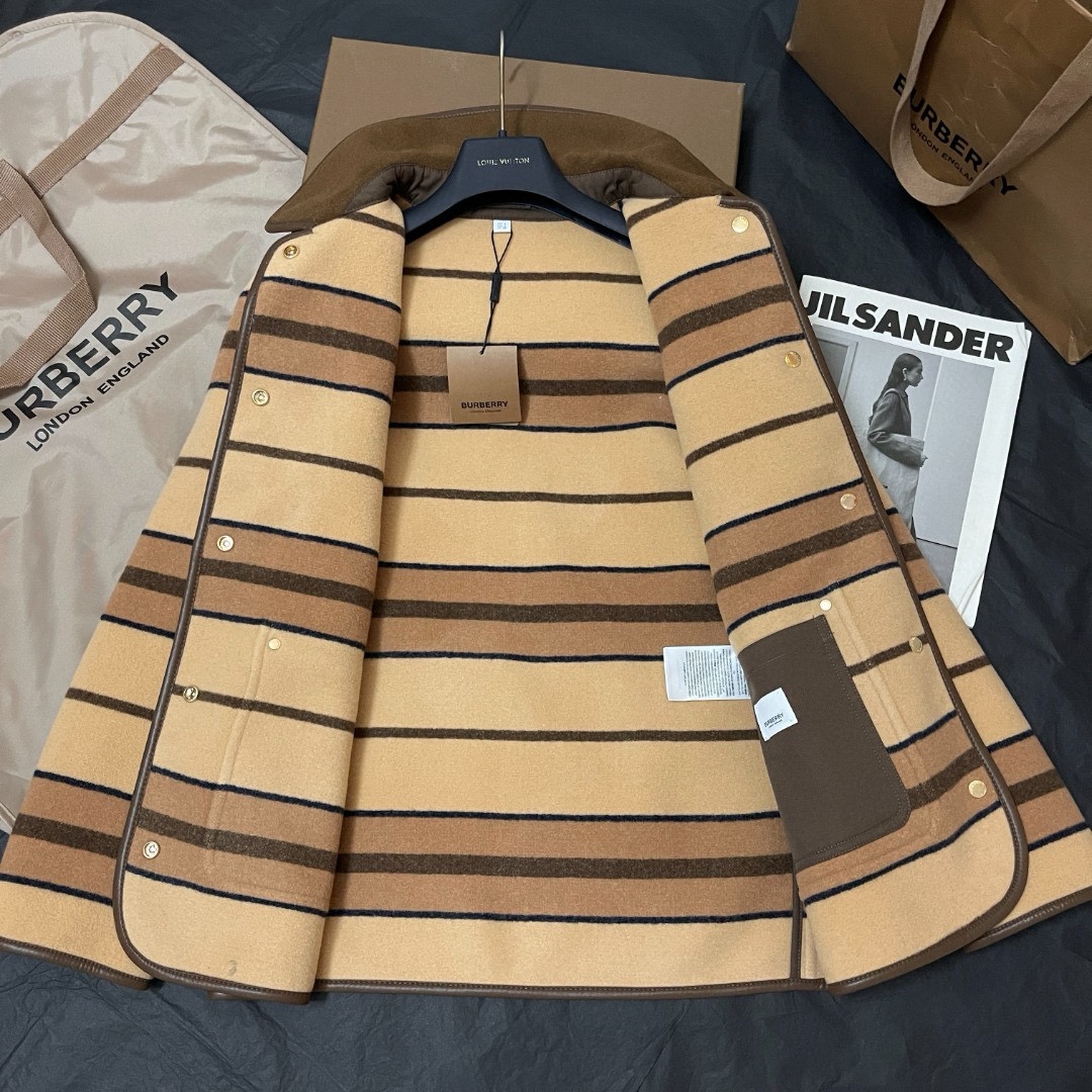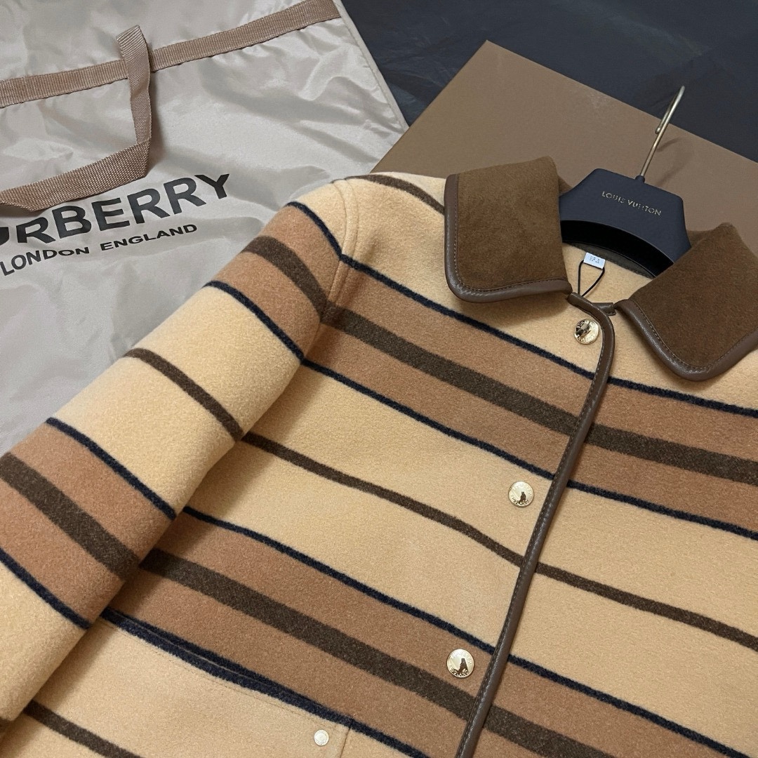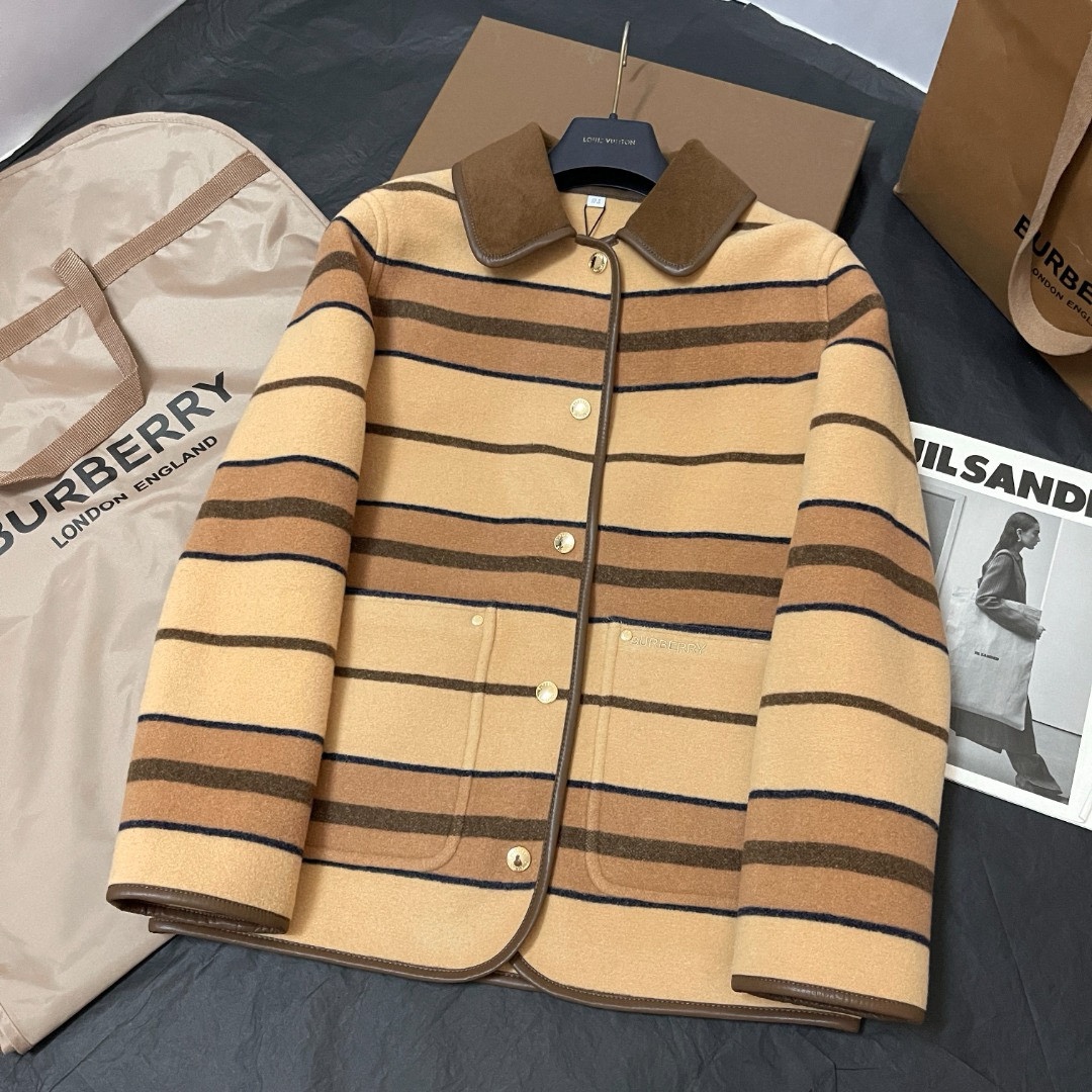 NIGO Burberry Women's Autumn And Winter Khaki Trimmed Striped Single breasted Wool Longsleeved Jacket #nigo73513