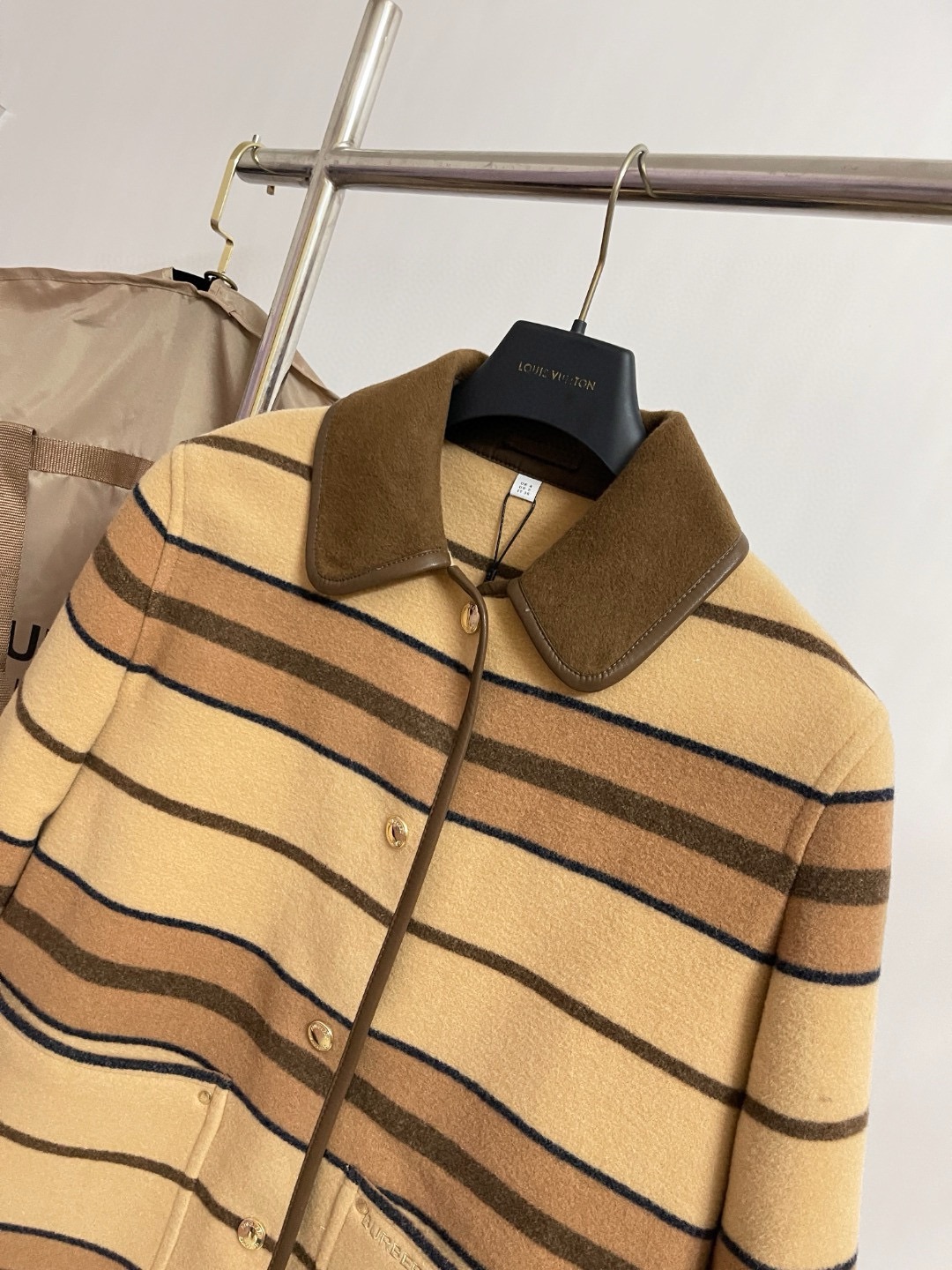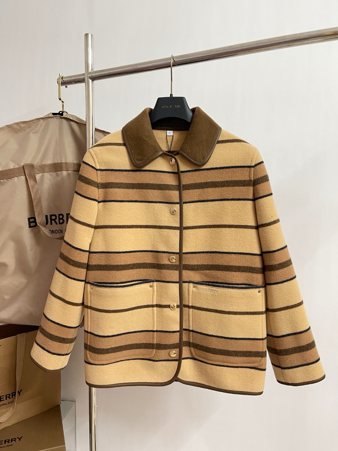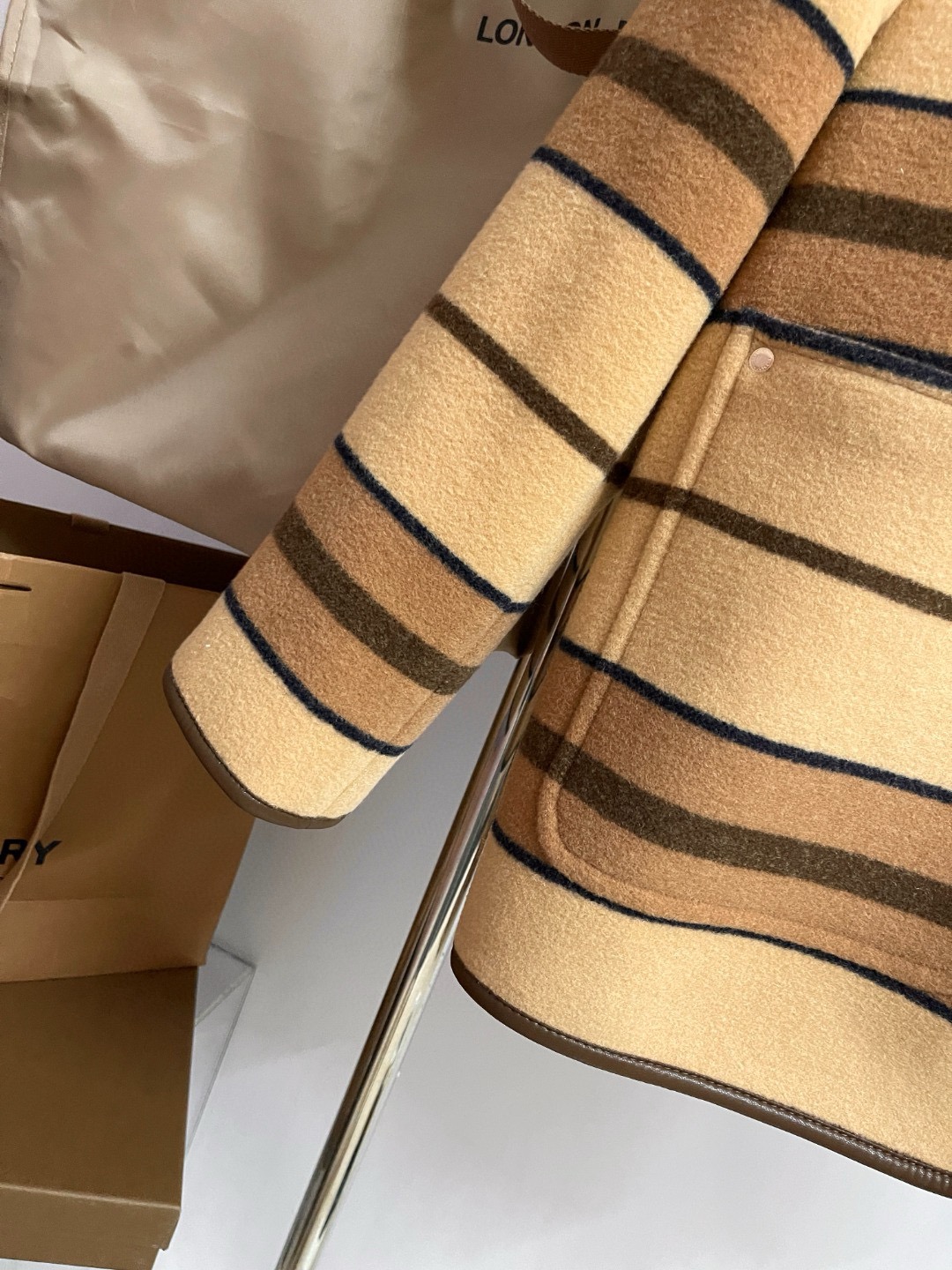 NIGO Burberry Women's Autumn And Winter Khaki Trimmed Striped Single breasted Wool Longsleeved Jacket #nigo73513