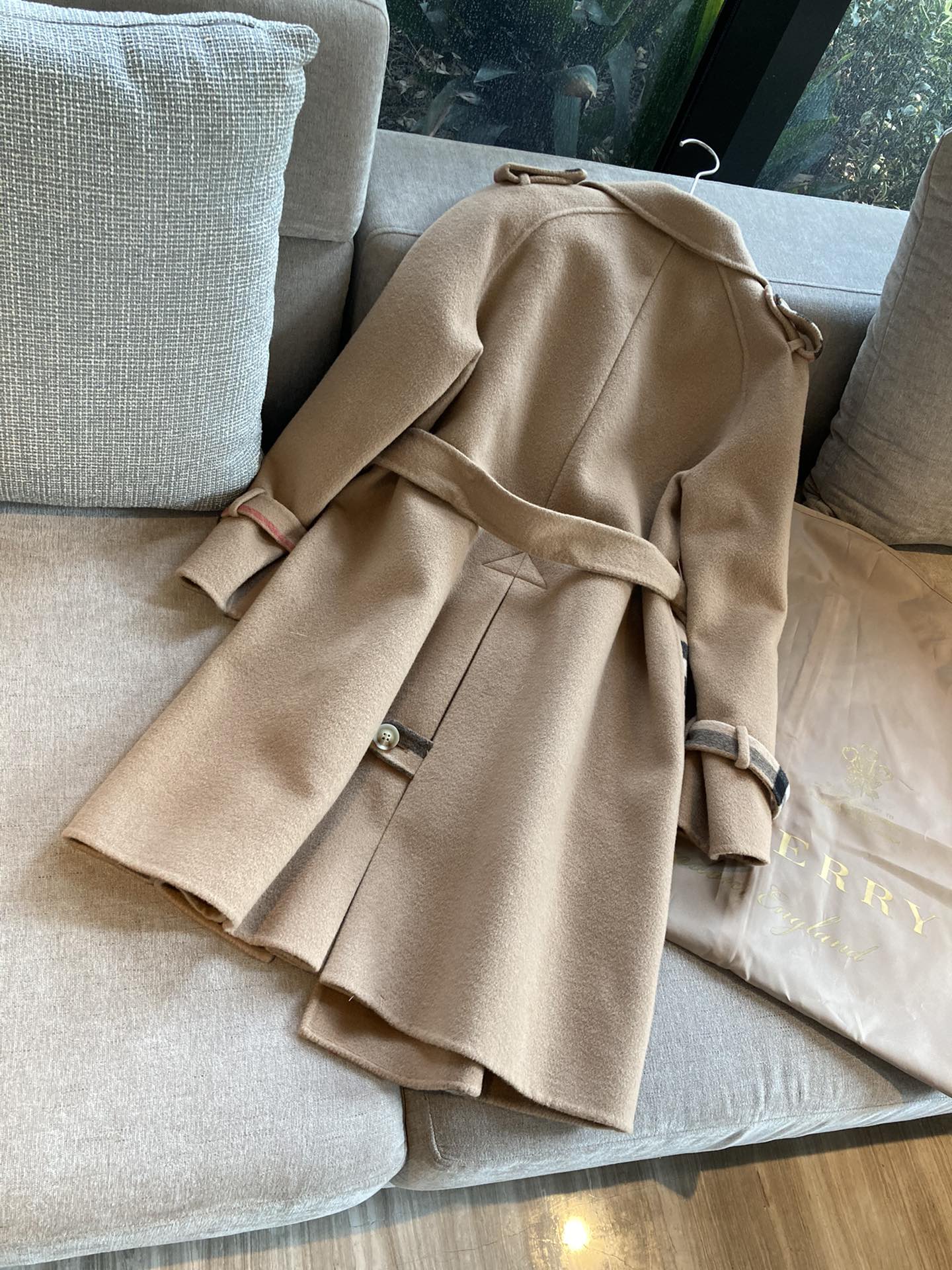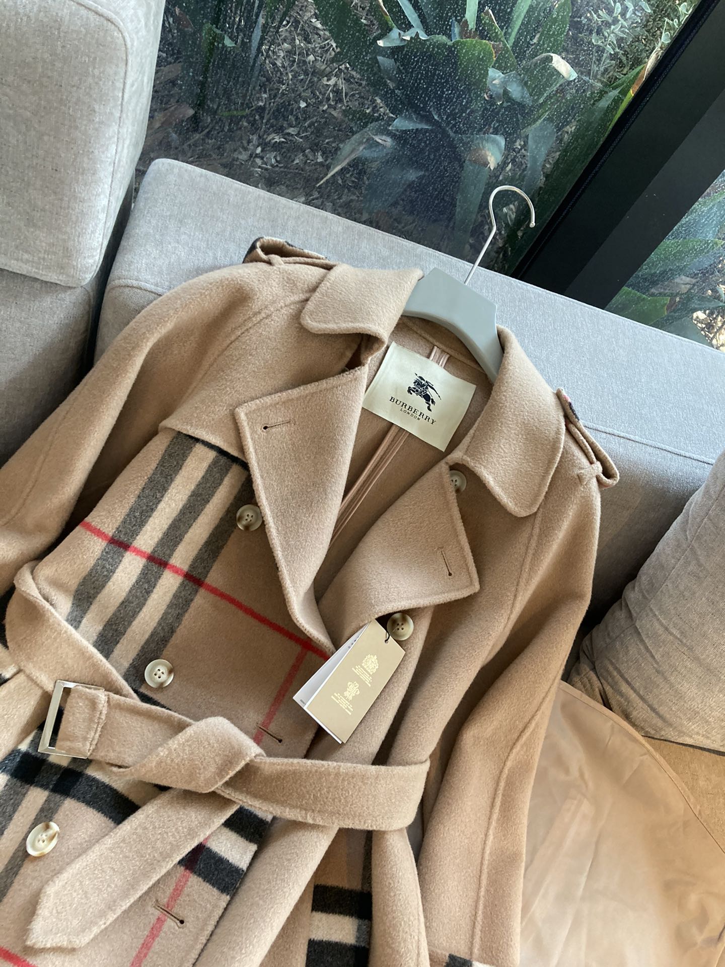 NIGO Burberry Women's Autumn/winter Fashion Classic Checkered Collar Cashmere Fabric Belted Lightweight Long Trench Coat Jacket #nigo78414