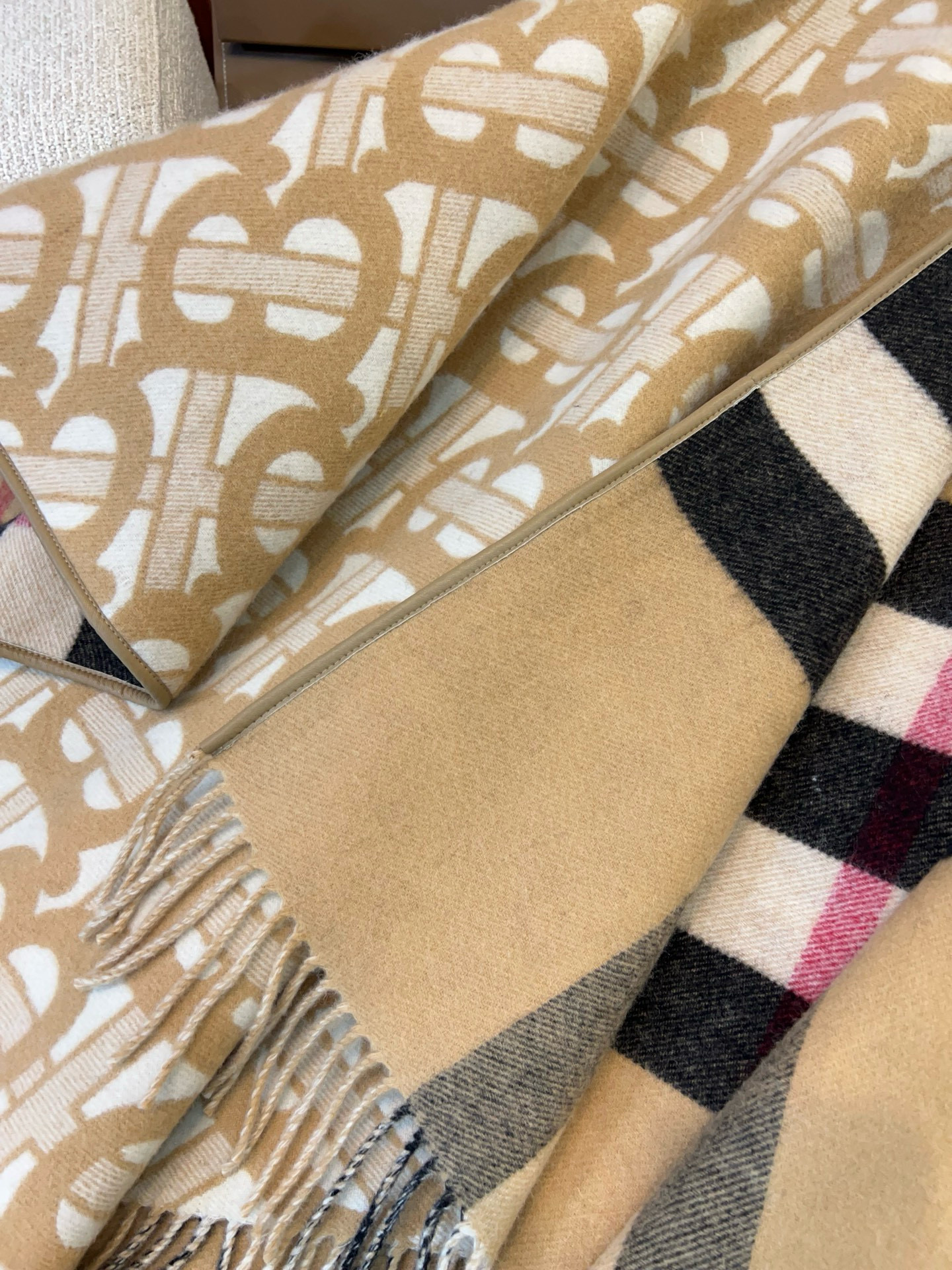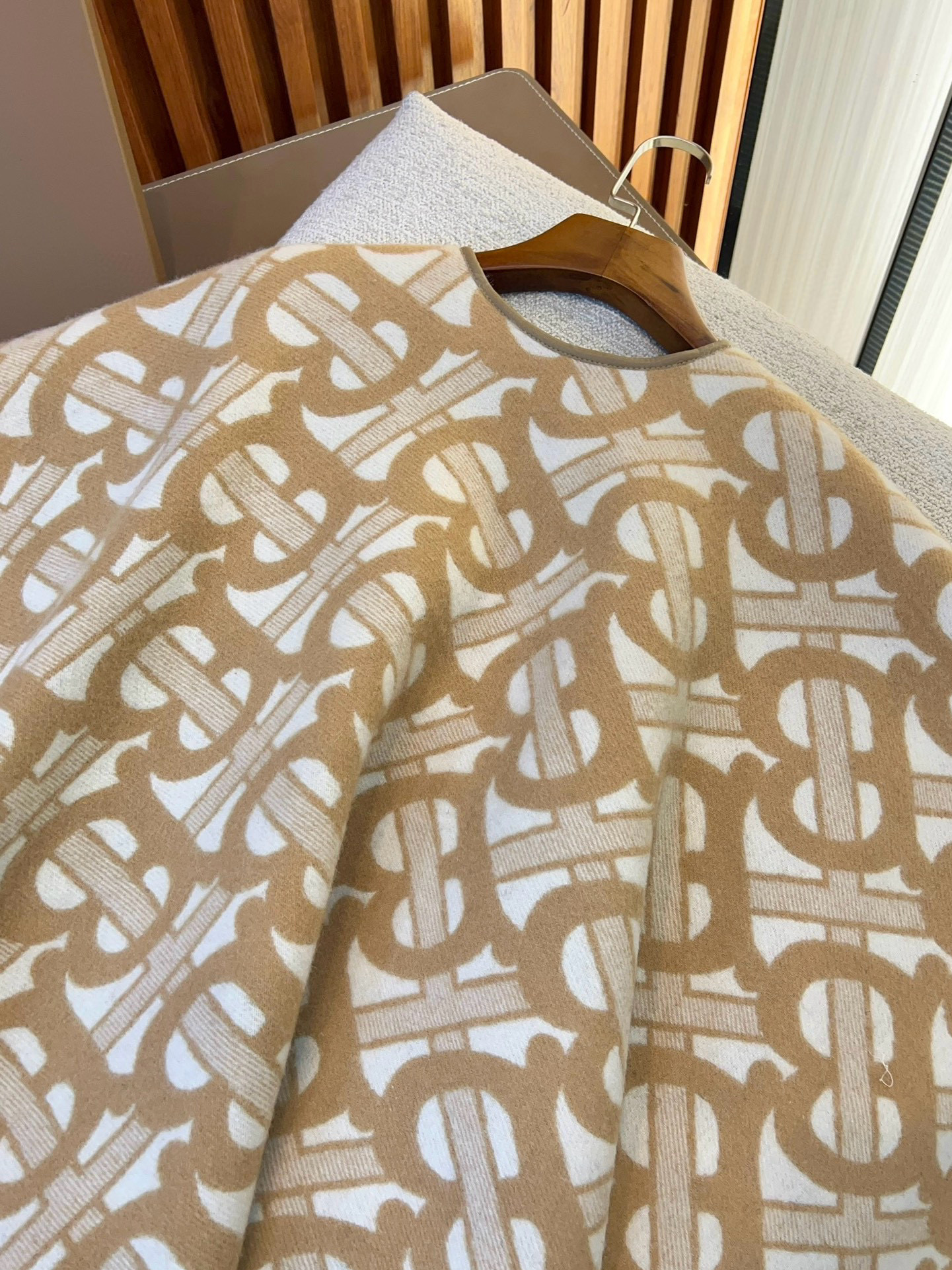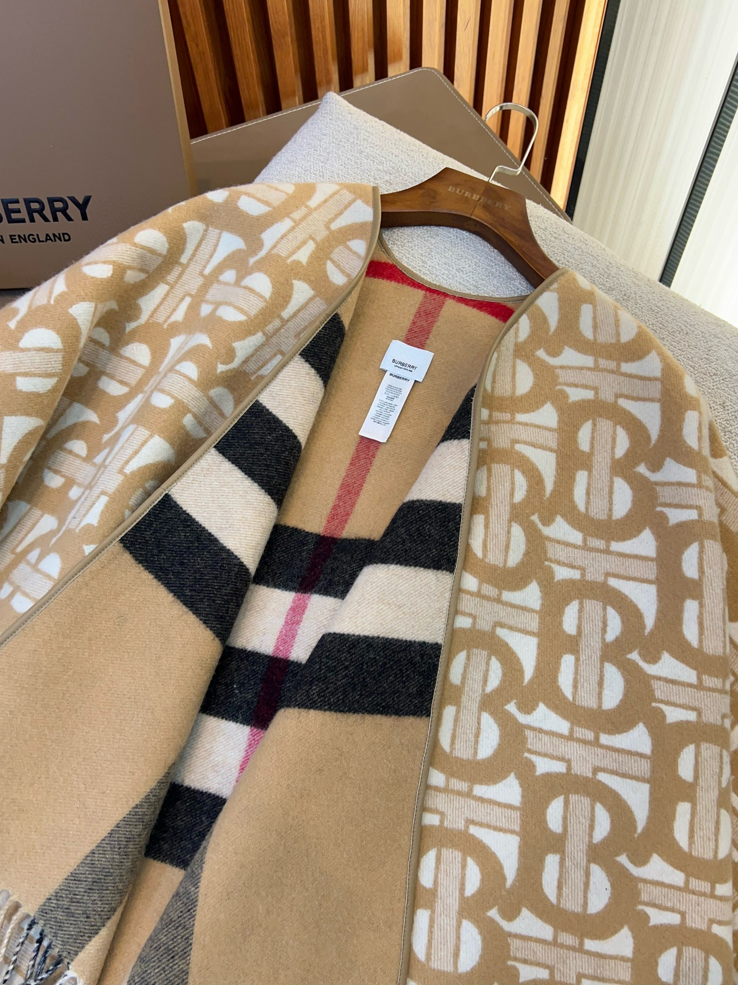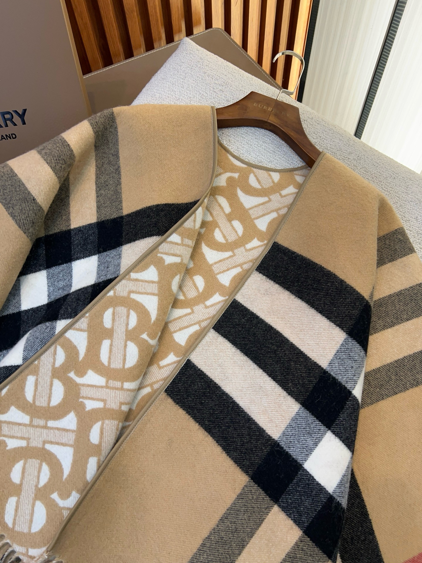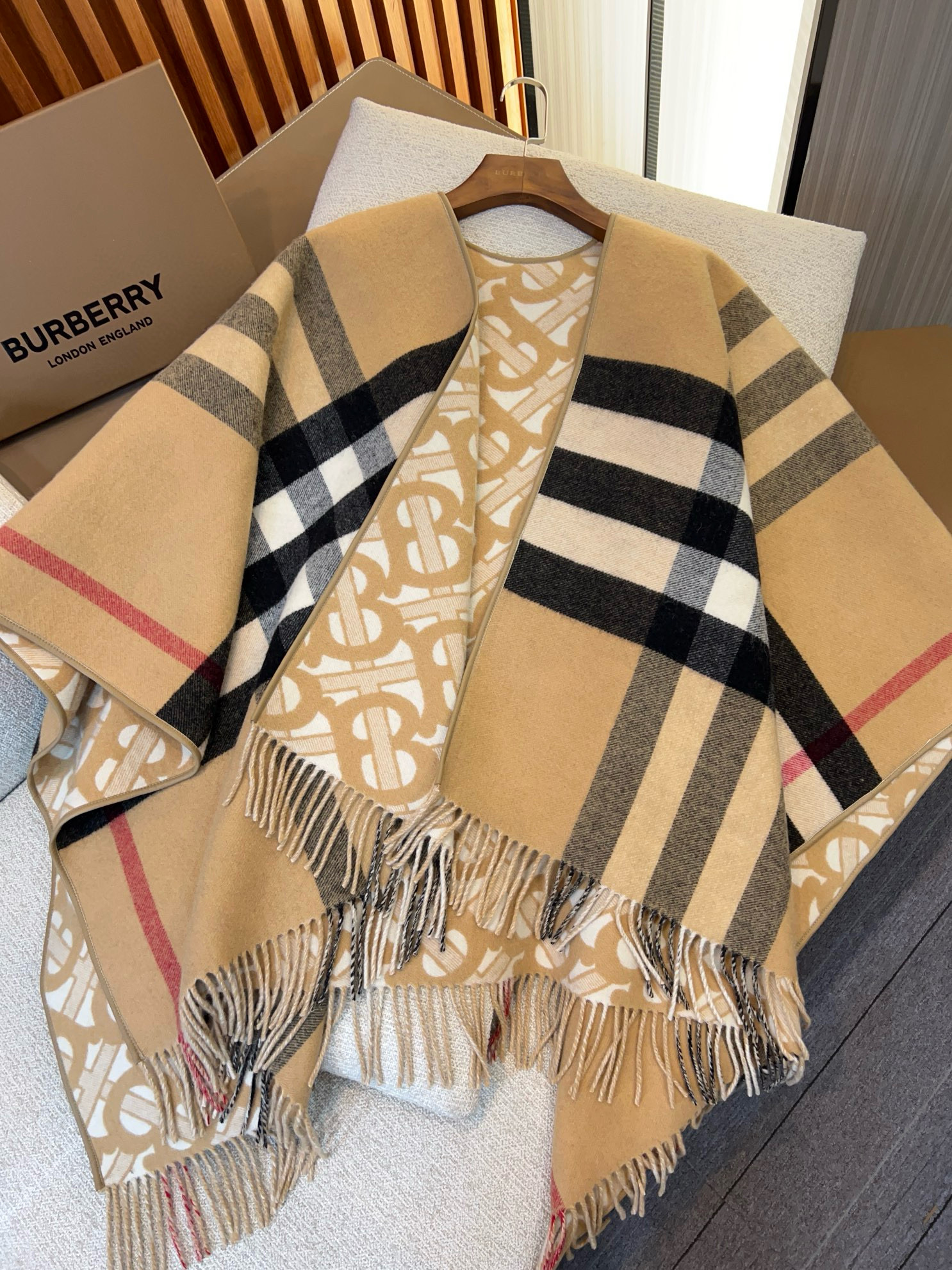 NIGO Burberry Women's Winter Reversible Khaki Wool Blend Shawl Poncho Cape #nigo97847
