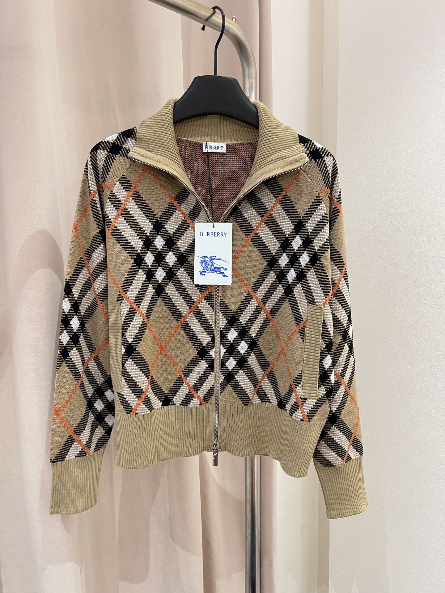 NIGO Burberry Women's Spring and Autumn Colorblocking Striped Checkered Zipper Long Sleeve Knit Jacket #nigo72823
