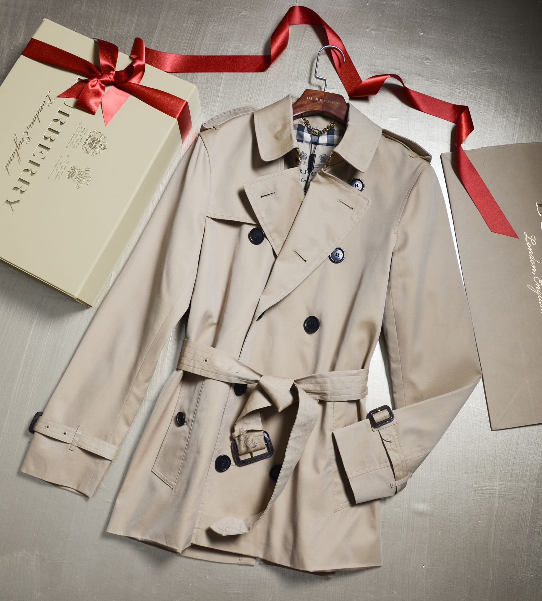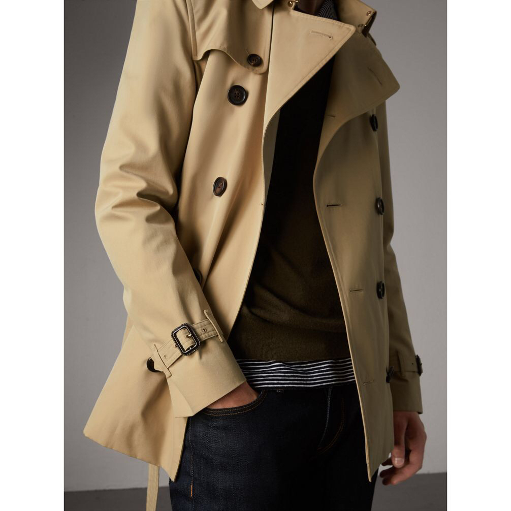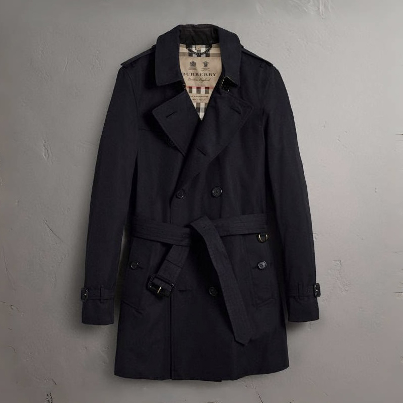NIGO Burberry Men's Spring And Fall Solid Color Double Breasted Short Corseted Trench Coat Jacket #nigo72857