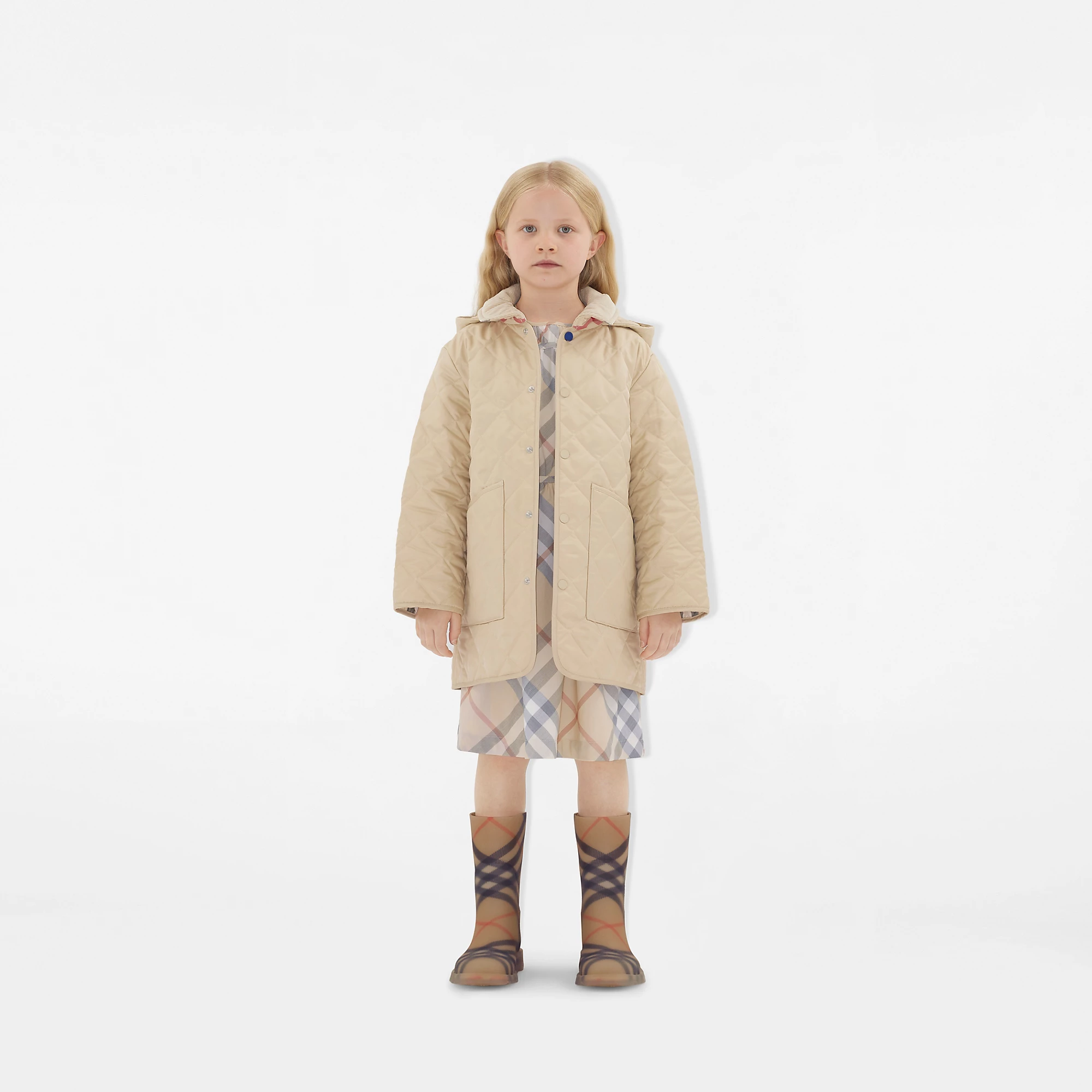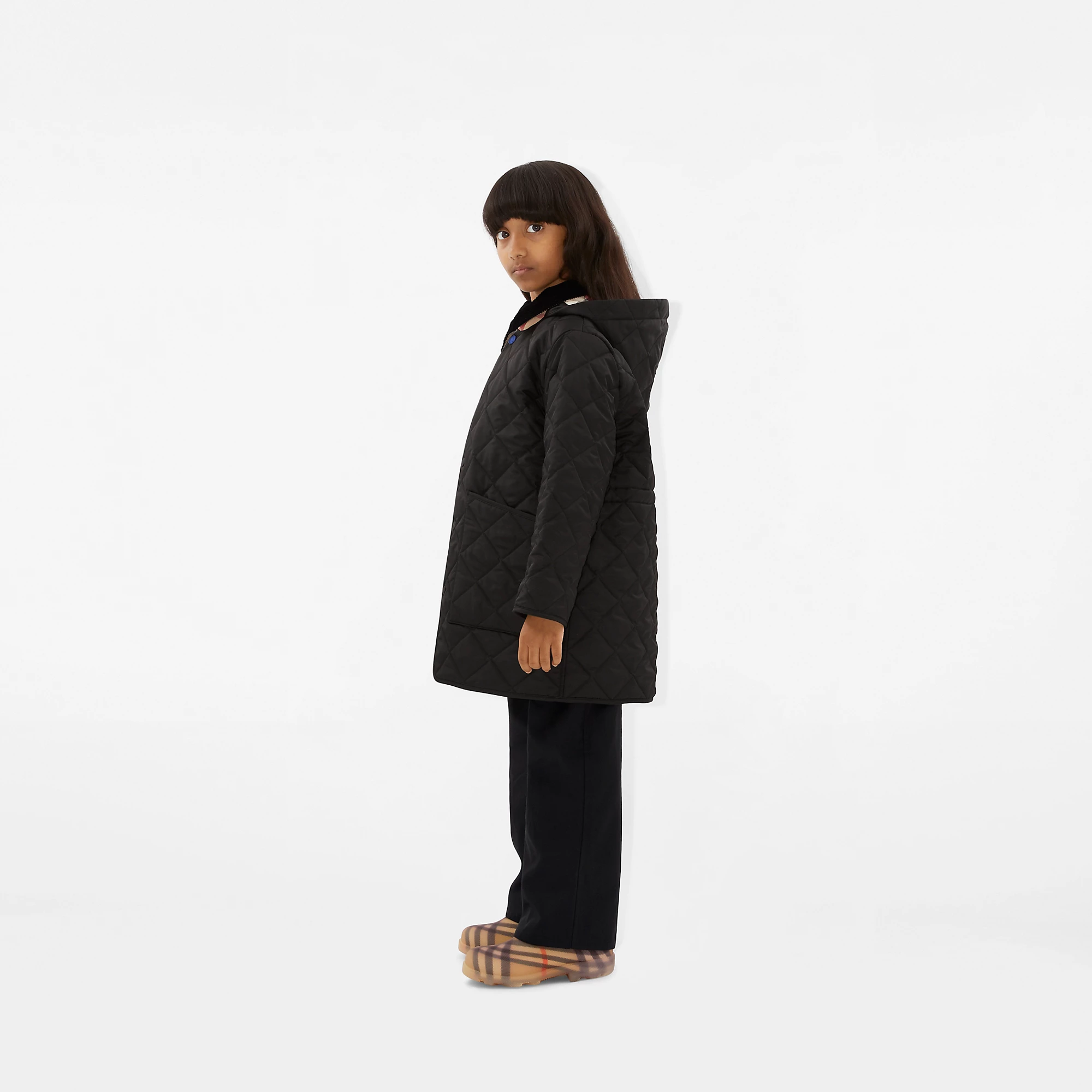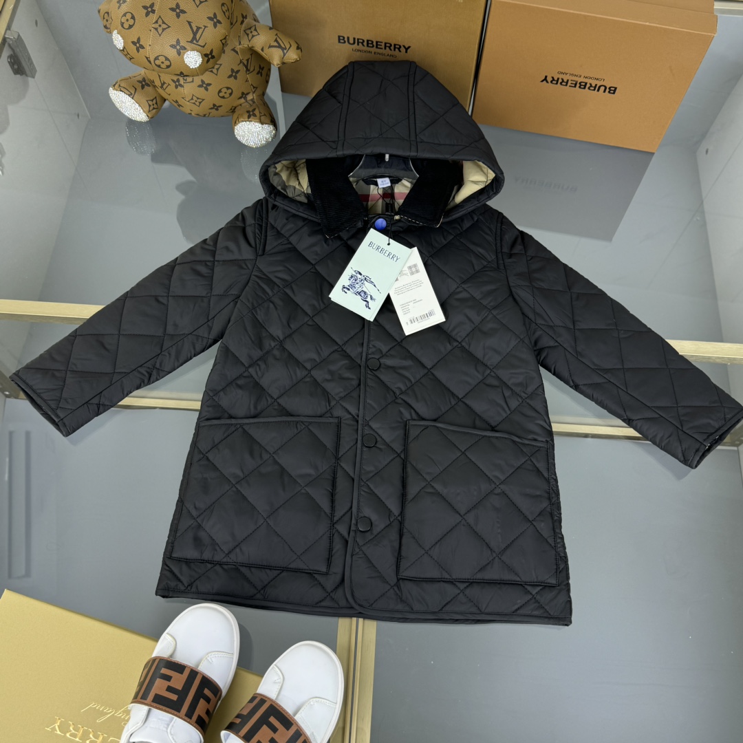 NIGO Burberry Kid's Autumn And Winter Solid Color Diamond Plaid Mid-Length Hooded Loose Quilted Coat #nigo31338