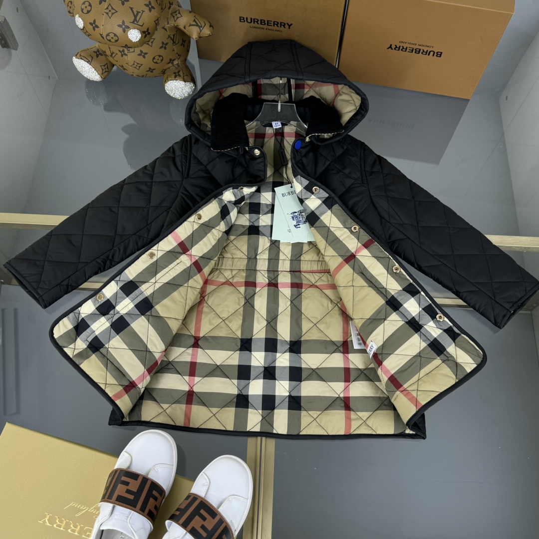 NIGO Burberry Kid's Spring And Autumn Solid Color Single Breasted Lapel Quilted Barn Jacket #nigo31337