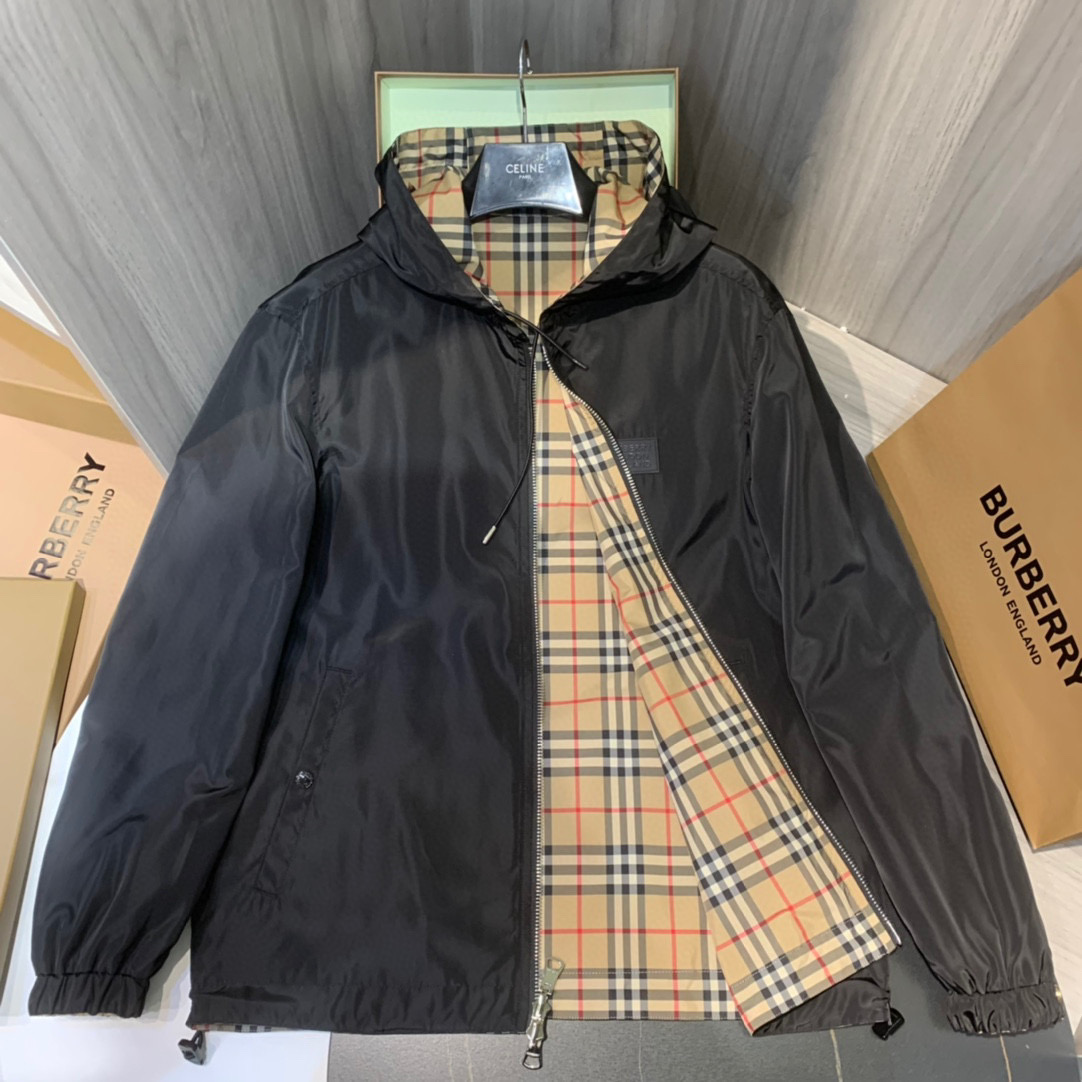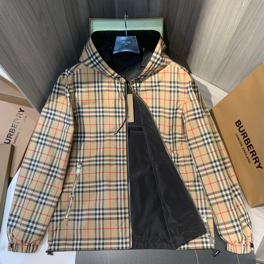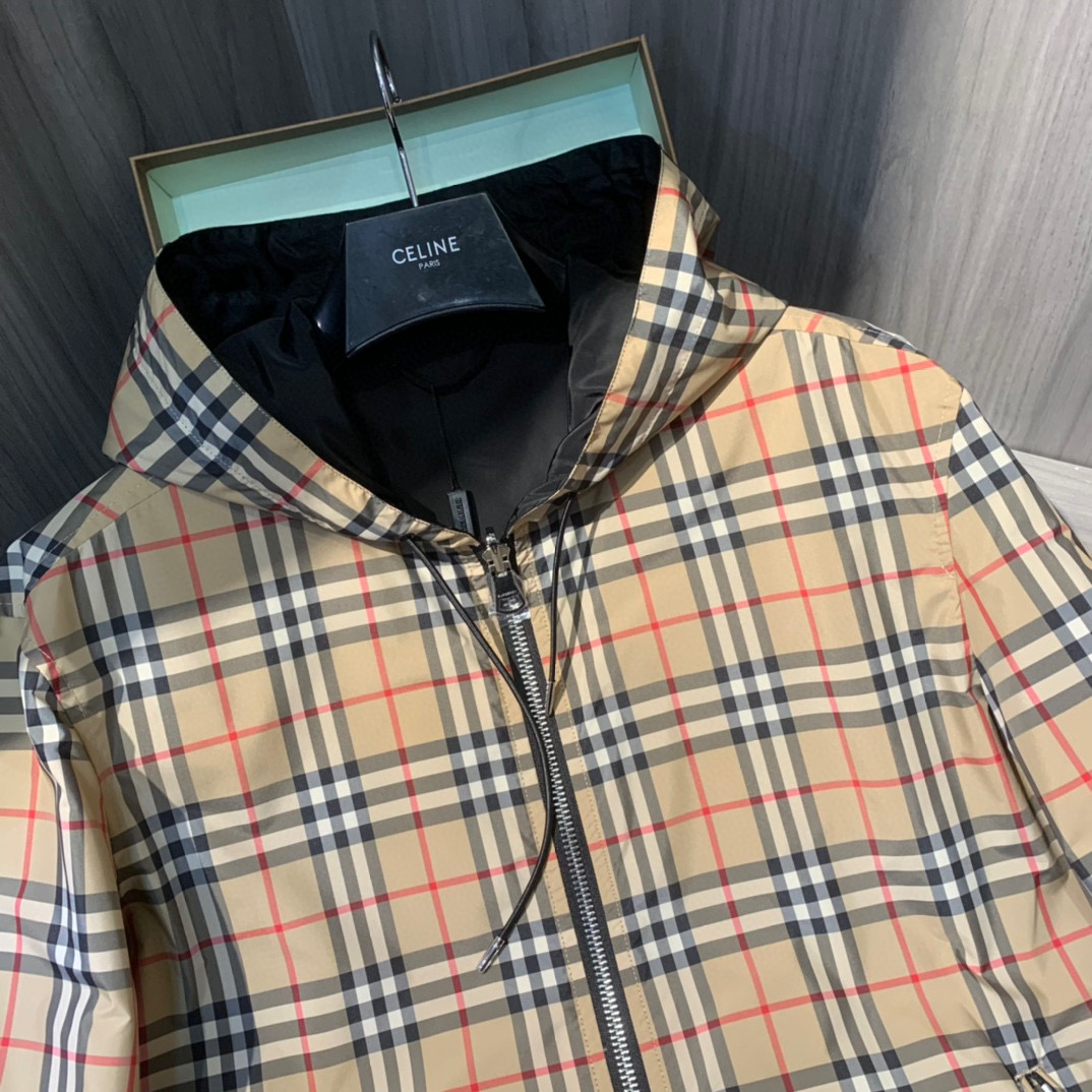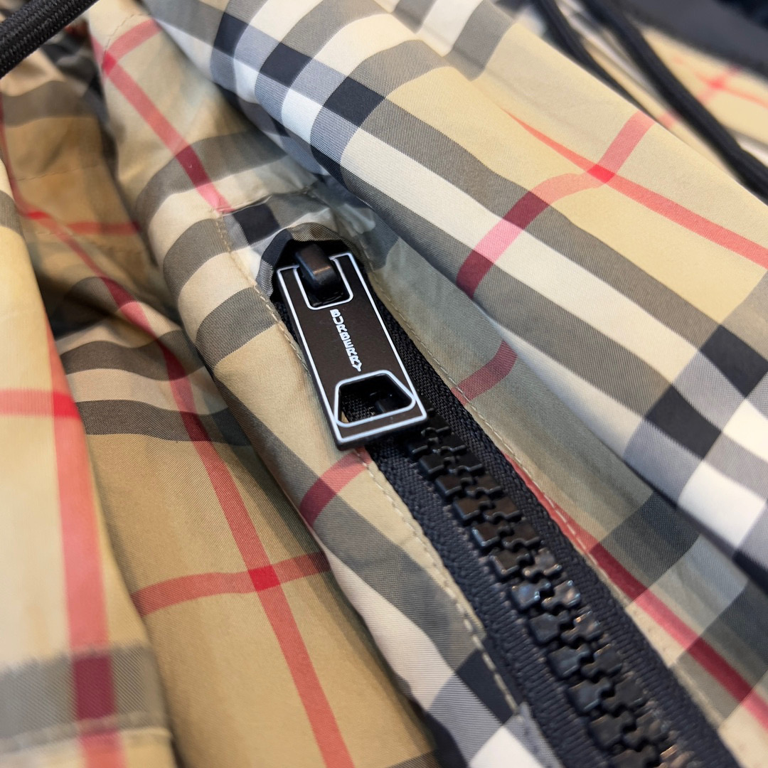 Burberry NIGO Woman Men Nylon Double-Sided Hooded Plaid Stripe Jacket #nigo57165