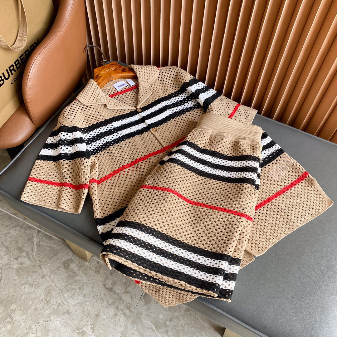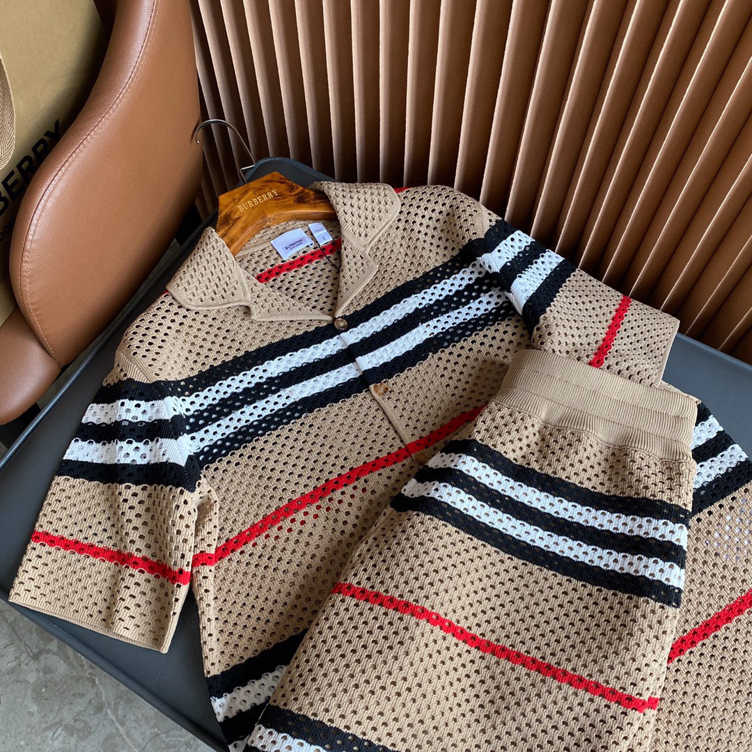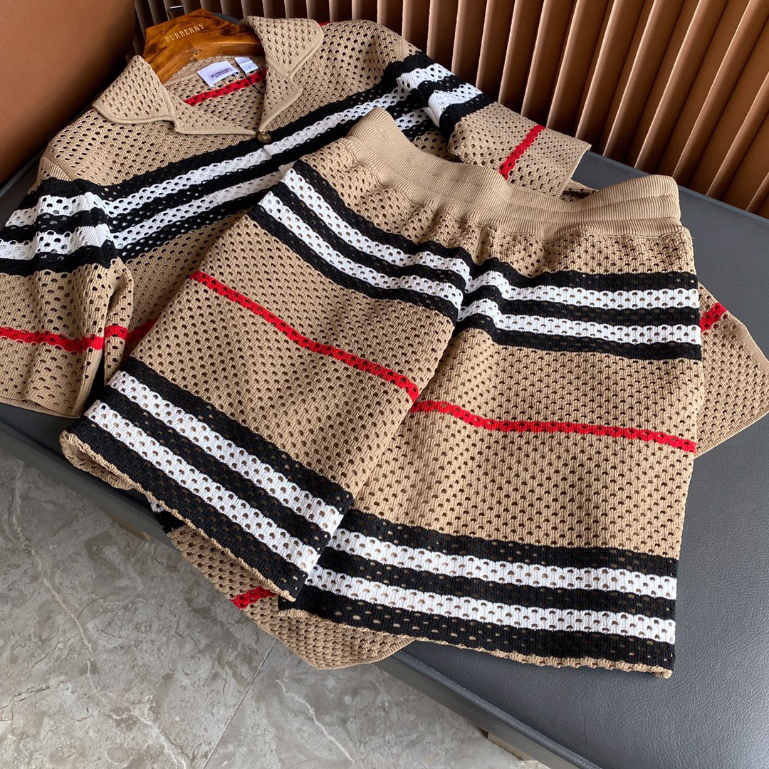 Burberry NIGO Man Striped Loose Hollow Summer Short Sleeve T-shirt Shorts Set Suit #nigo94475