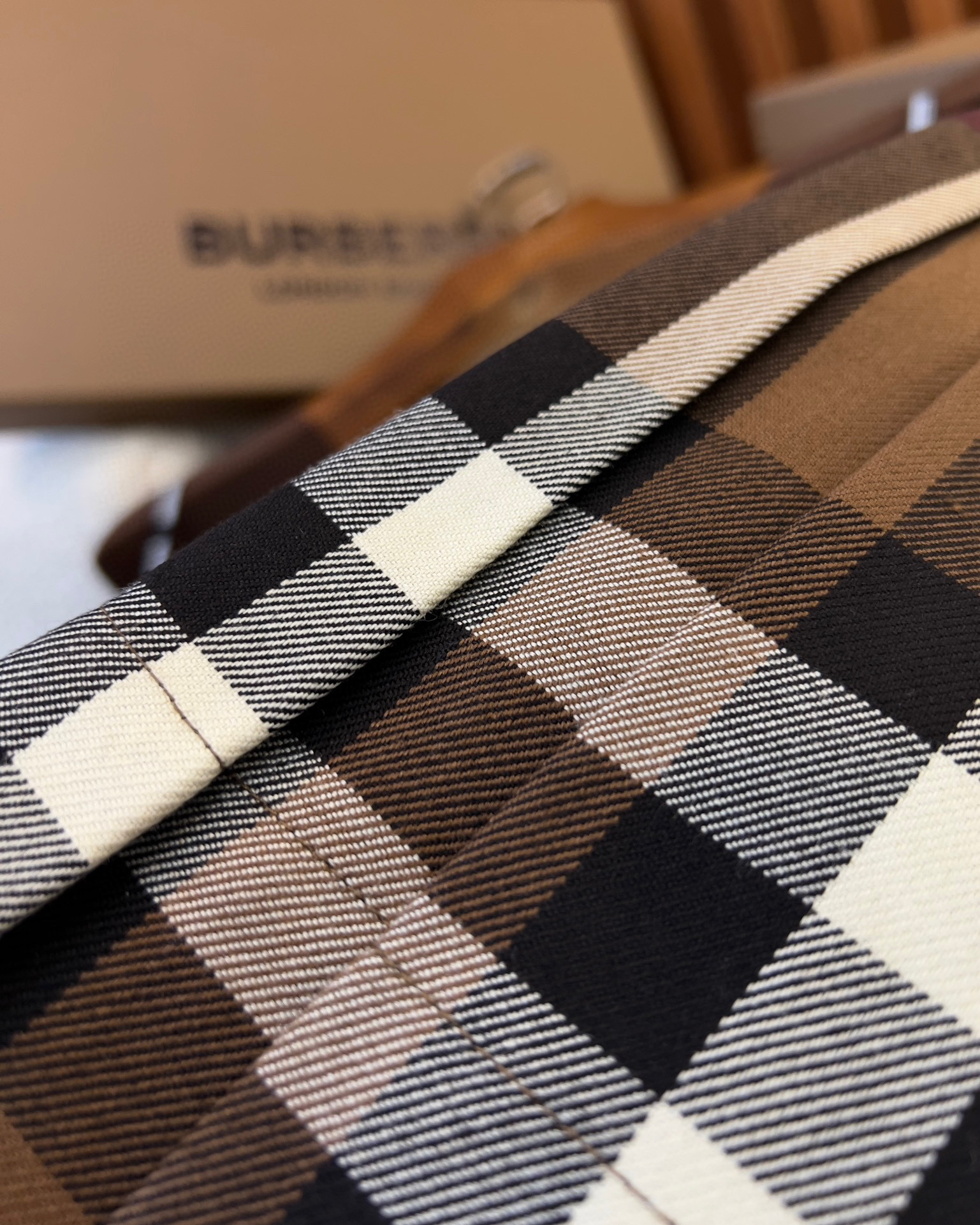 Burberry NIGO Man Woolen Plaid Patchwork Leather Sleeve Jacket Baseball Jacket #nigo94374