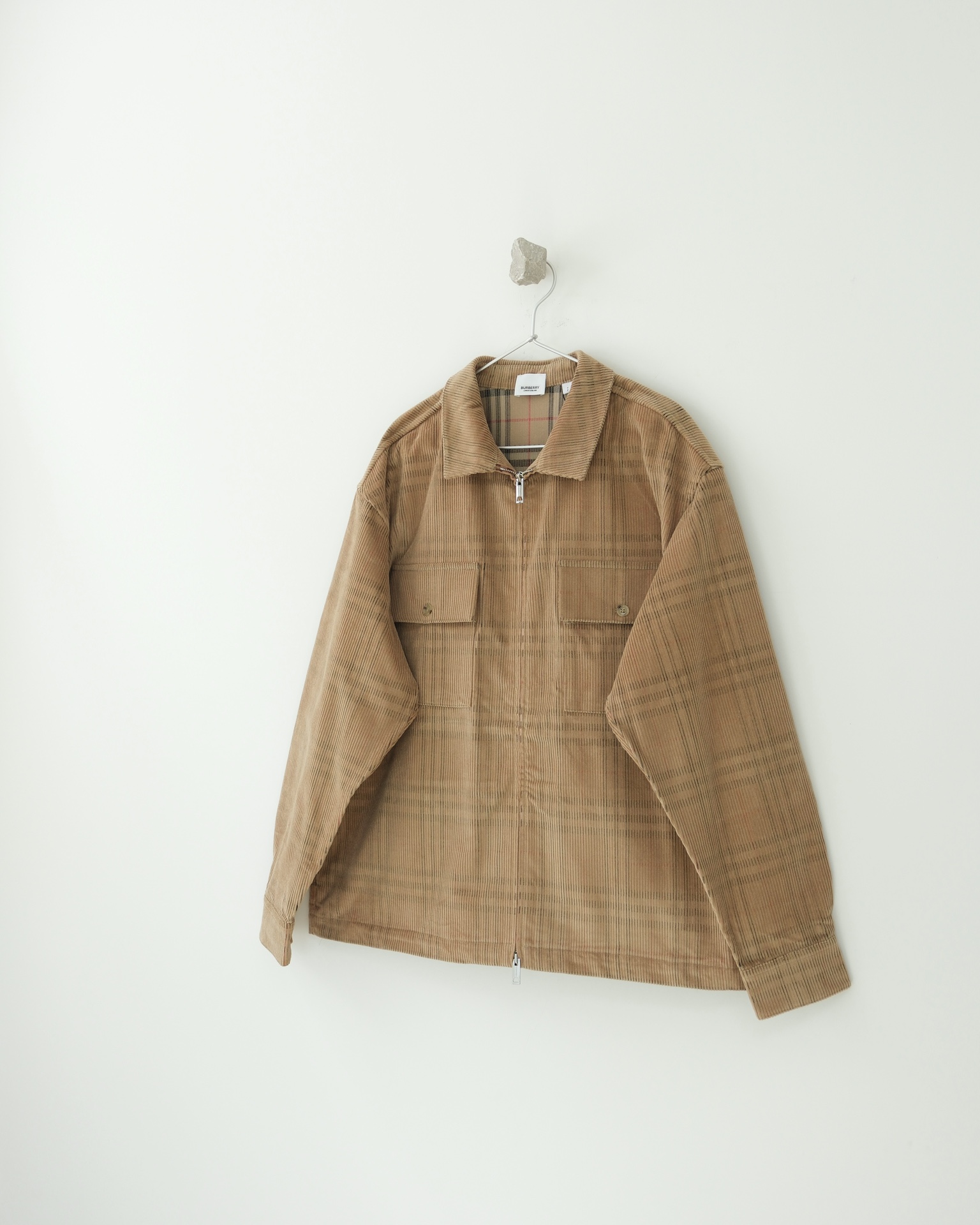 NIGO Burberry Men's Autumn and Winter Brown Plaid Printed Pockets Loose Zipper Corduroy Long Sleeve Jacket #nigo73283