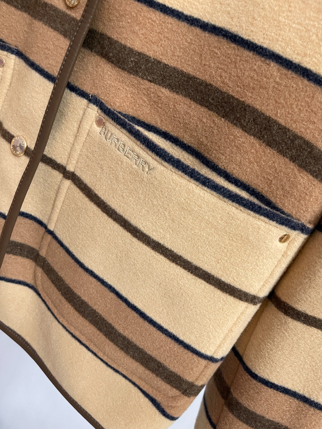 NIGO Burberry Women's Autumn And Winter Khaki Trimmed Striped Single breasted Wool Longsleeved Jacket #nigo73513