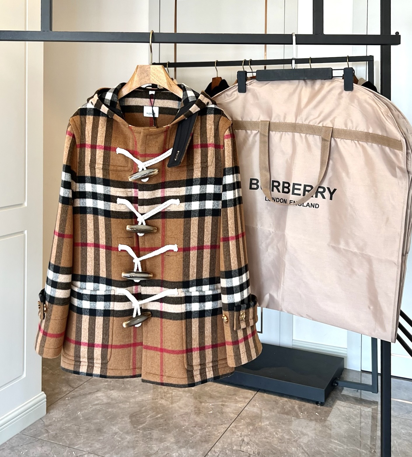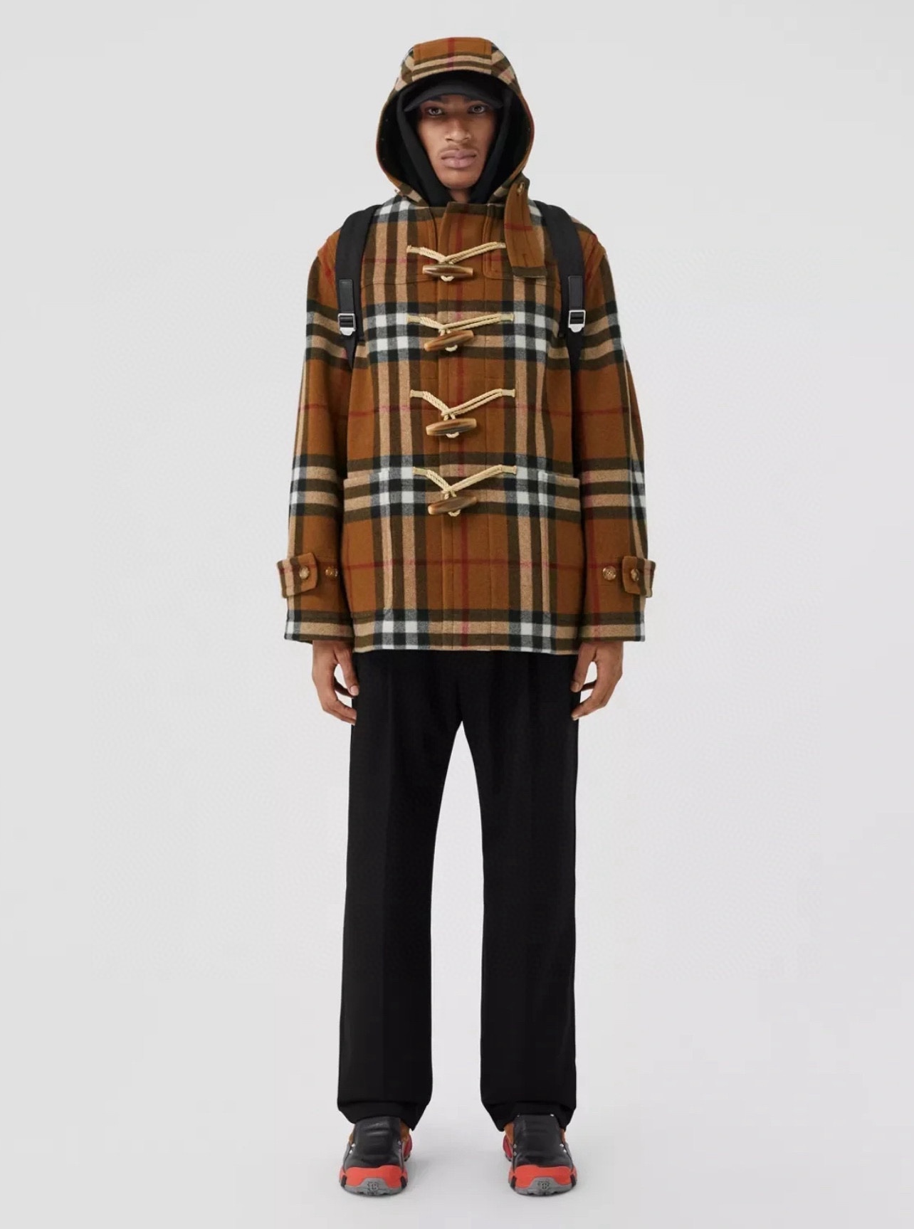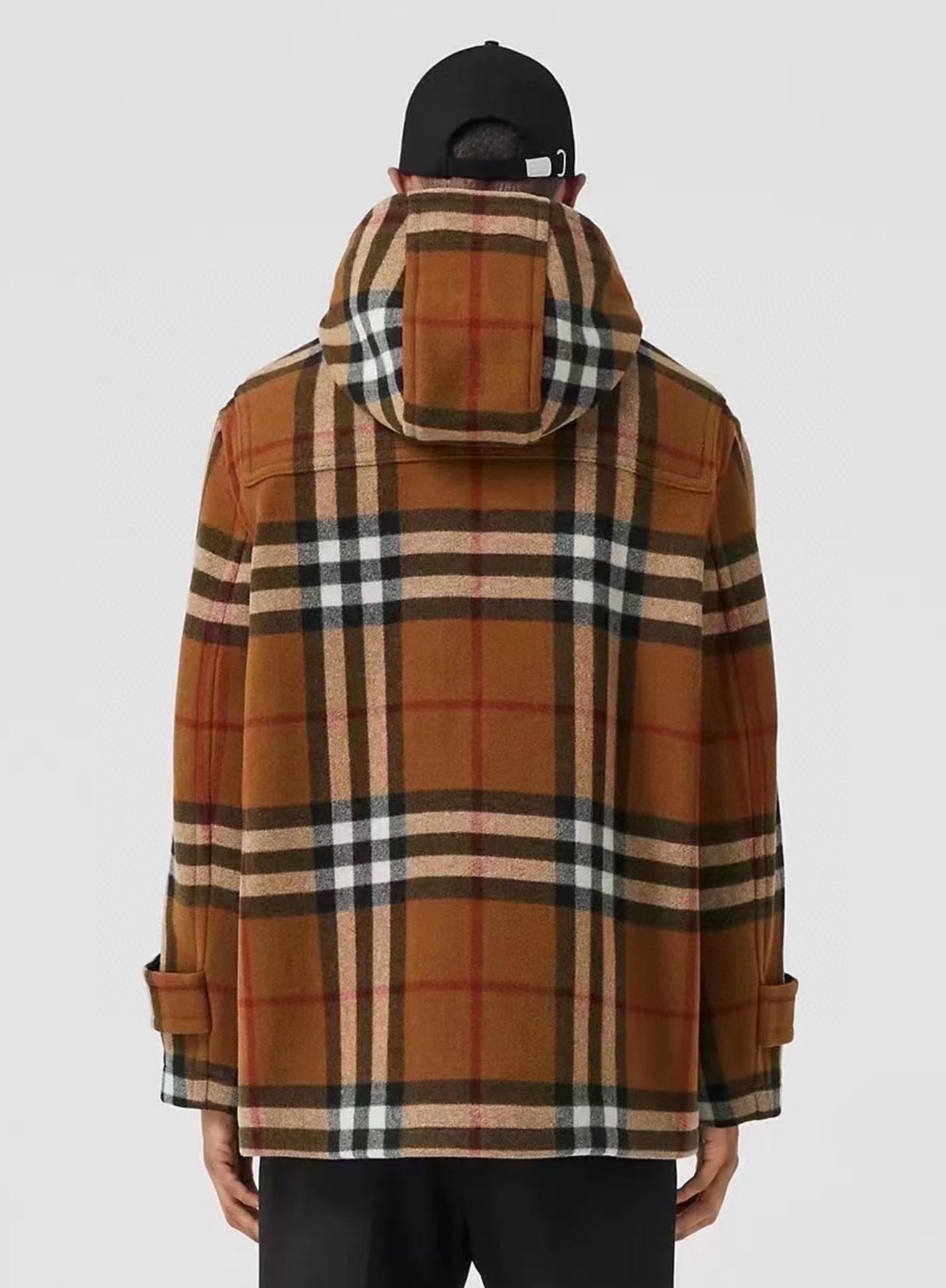 NIGO Burberry Men's Solvent Seeking Plaid Birch Brown Cowl Button Wool Long Sleeve Coat Jacket #nigo73516