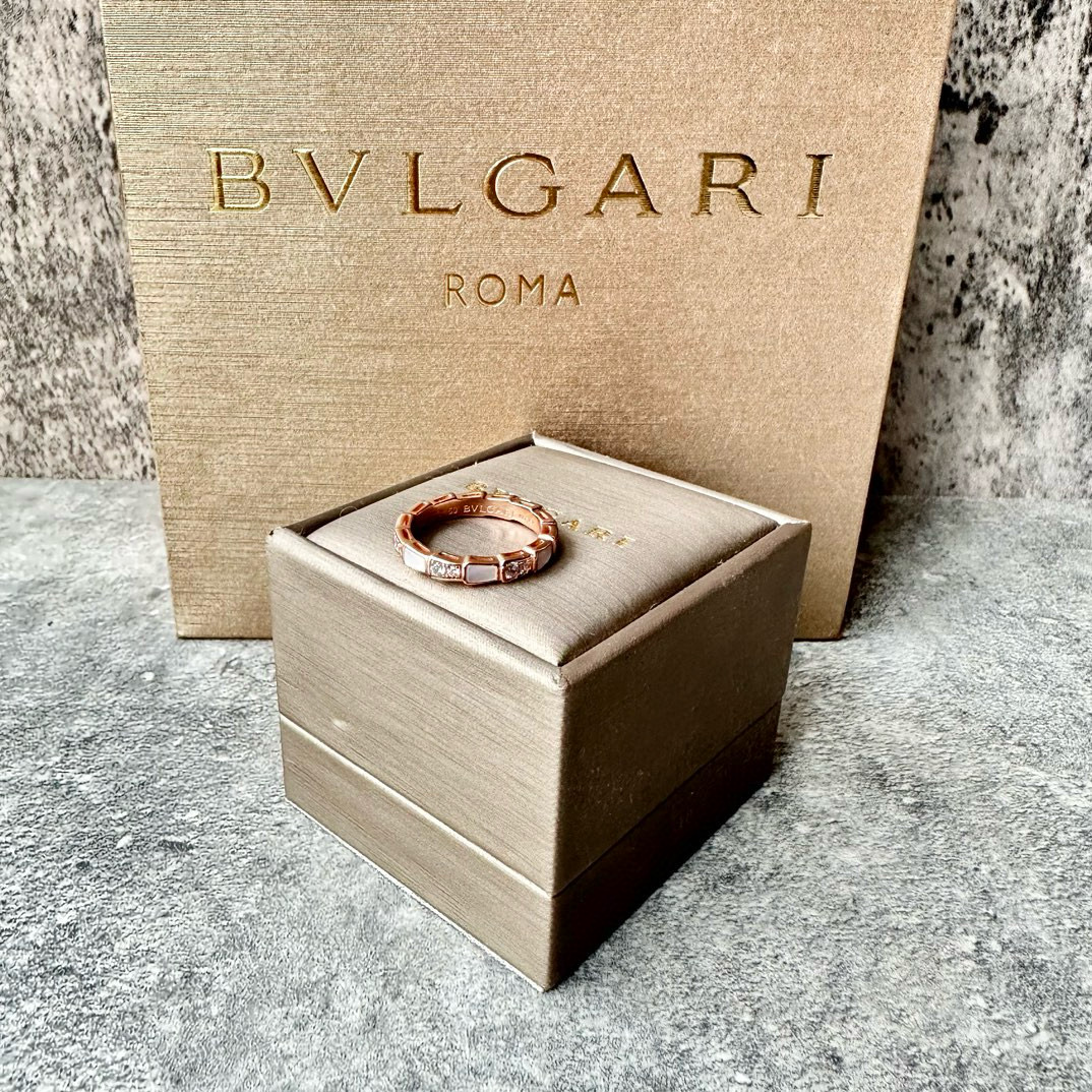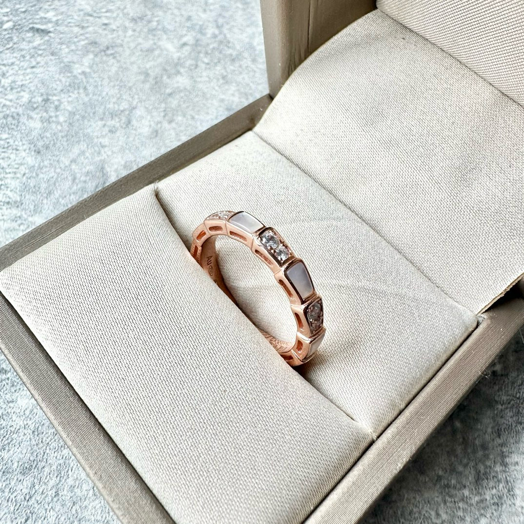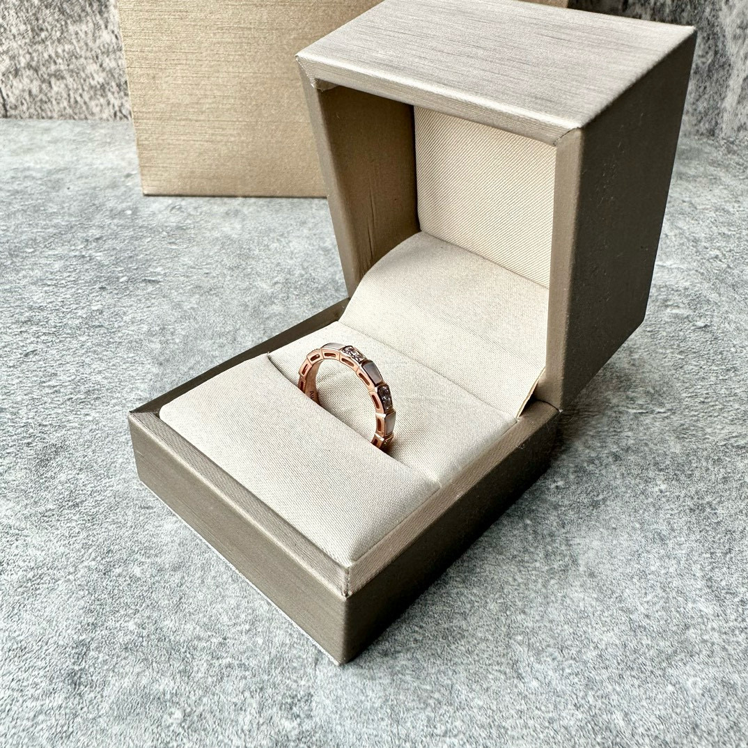 NIGO Bvlgari Men's and Women's Serpenti Viper Patchwork Snake Scale 18K Rose Gold Ring Jewelry #nigo97958