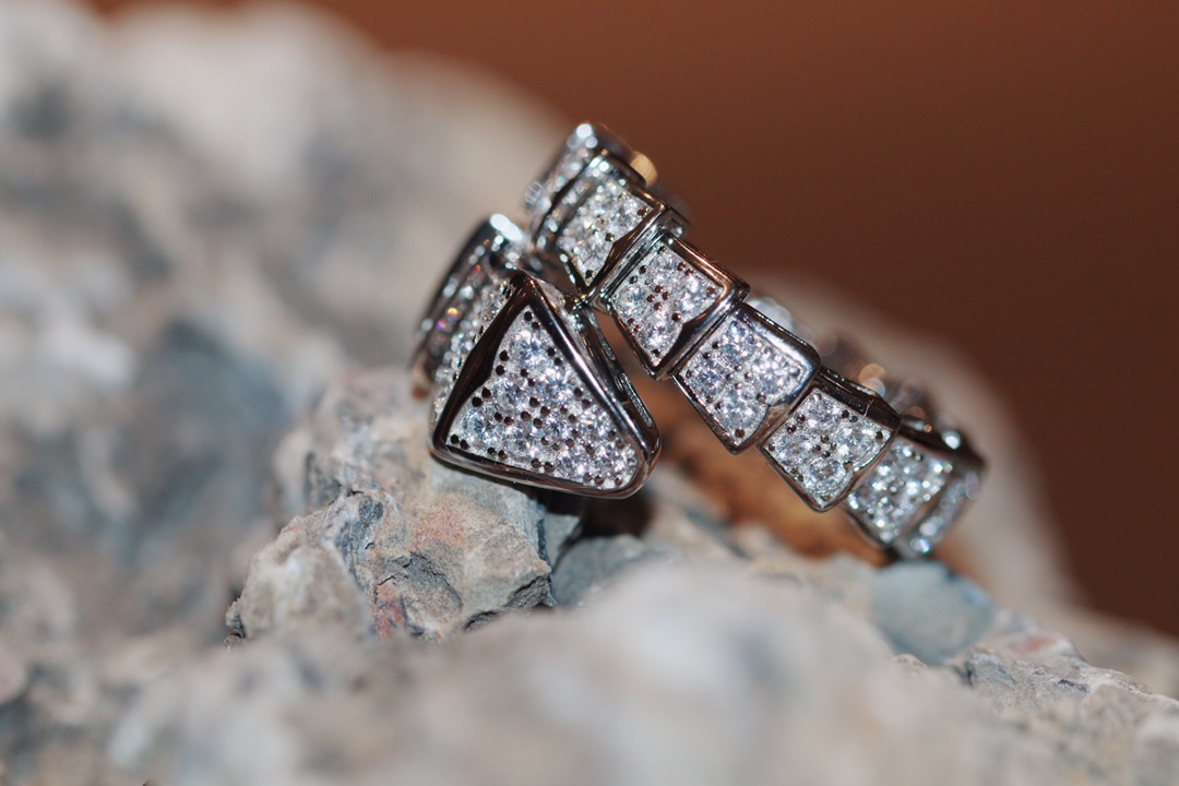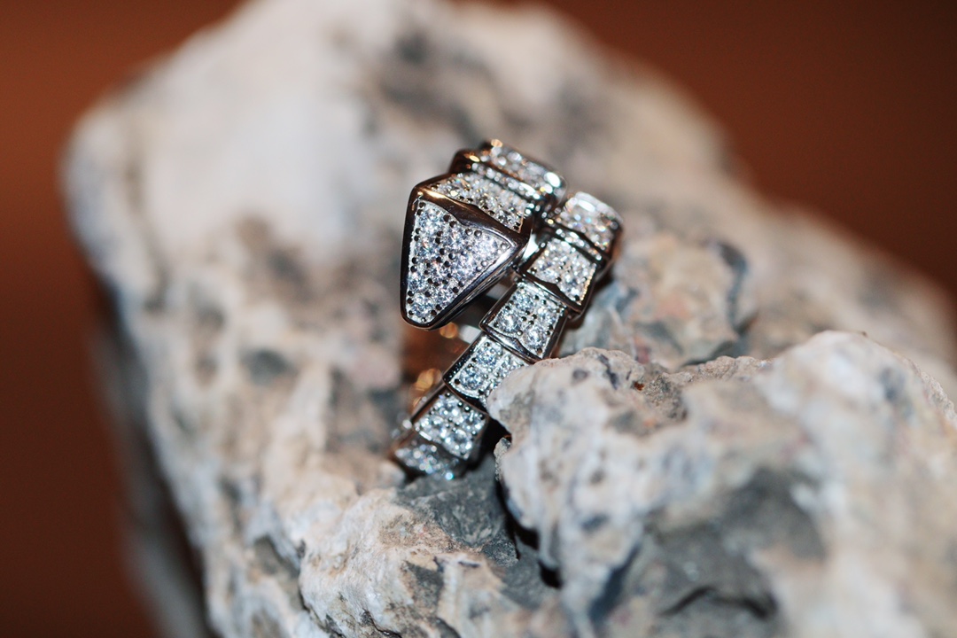 NIGO Bvlgari Serpenti Viper Collection Snake Ring Silver With Diamonds Fashion Luxury Elegant Chunky Ring Jewellery Accessories #nigo71778