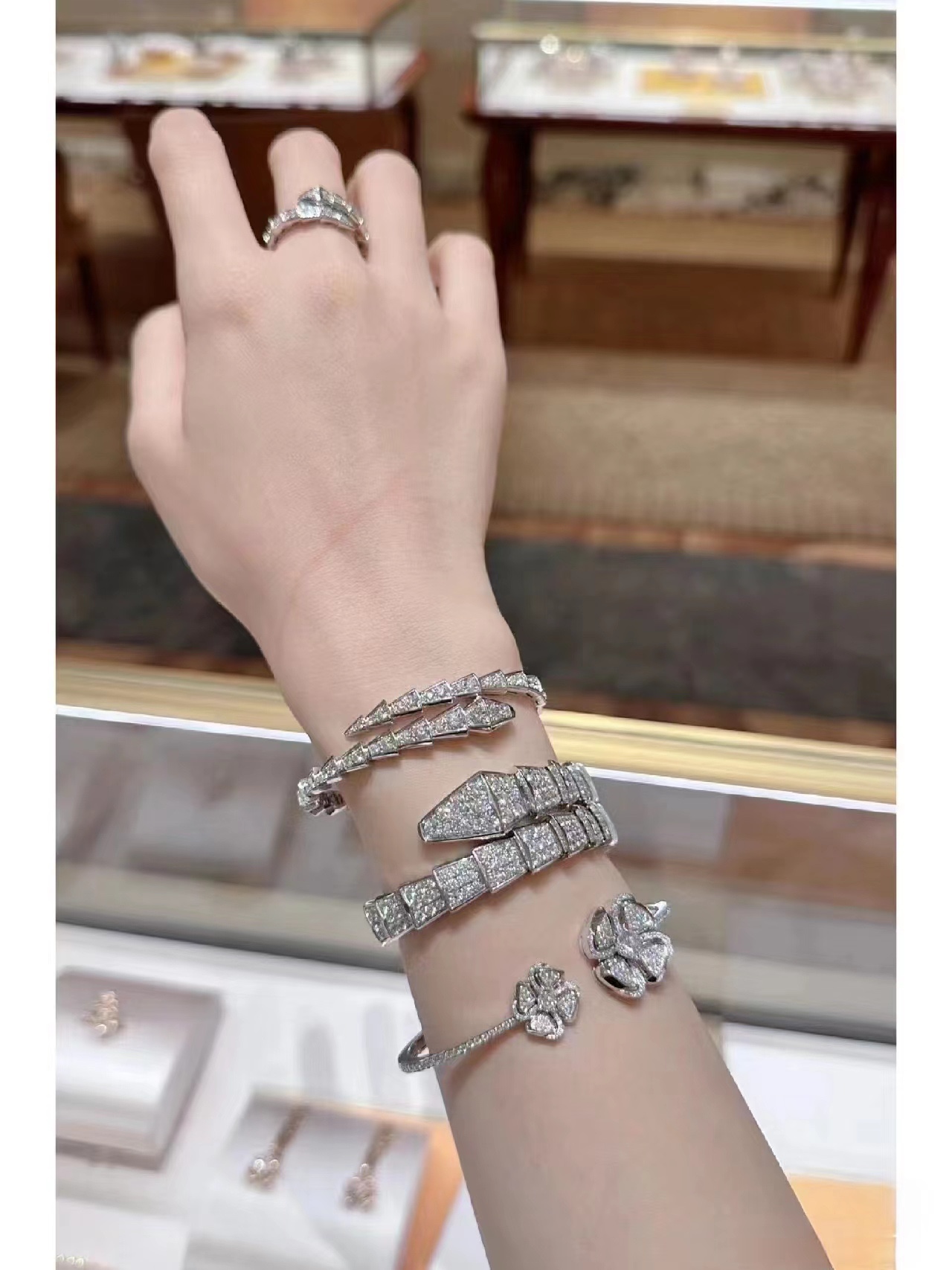 NIGO Bvlgari Serpenti Viper Collection Wide Snake Full Of Diamonds 18k White Gold Plating 925 Silver Bracelet Zirconia Luxury Bracelet Jewellery Accessories #nigo71776