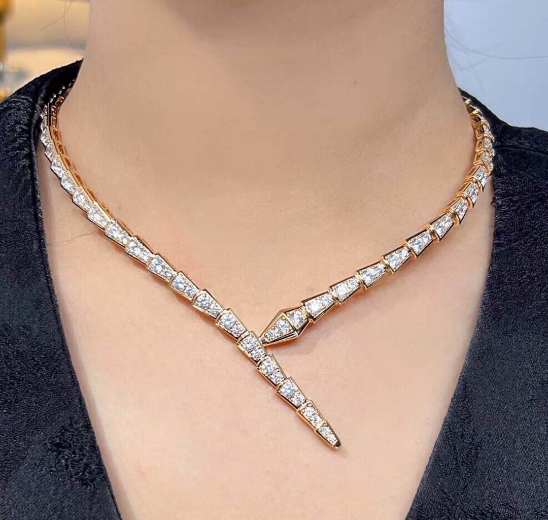 NIGO Bvlgari Serpenti Viper Women's Fashion Classic Full-Diamond Snake Necklace V-Gold Material Electroplated Platinum Necklace Jewelry Accessories #nigo79257