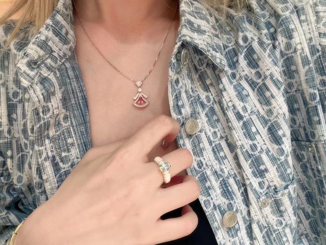 Bvlgari Anakehead Necklace Full Height Carbon Diamond Inner Ring Hollow Accessories Jewelry #nigo82281