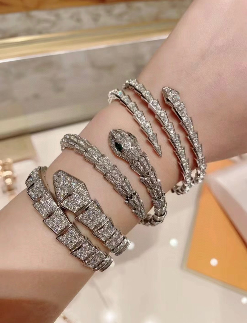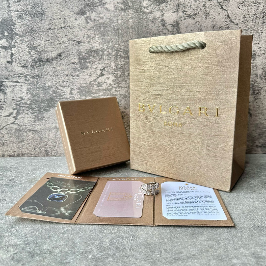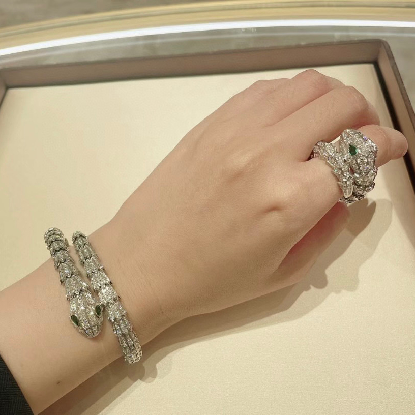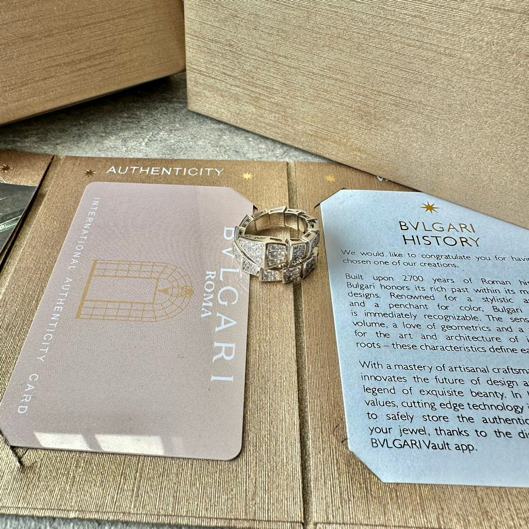 NIGO BVLGARI SERPENTI VIPER Collection Wide Snake Full Of Diamonds 18K White Gold Plated Ring Jewelry #nigo97925