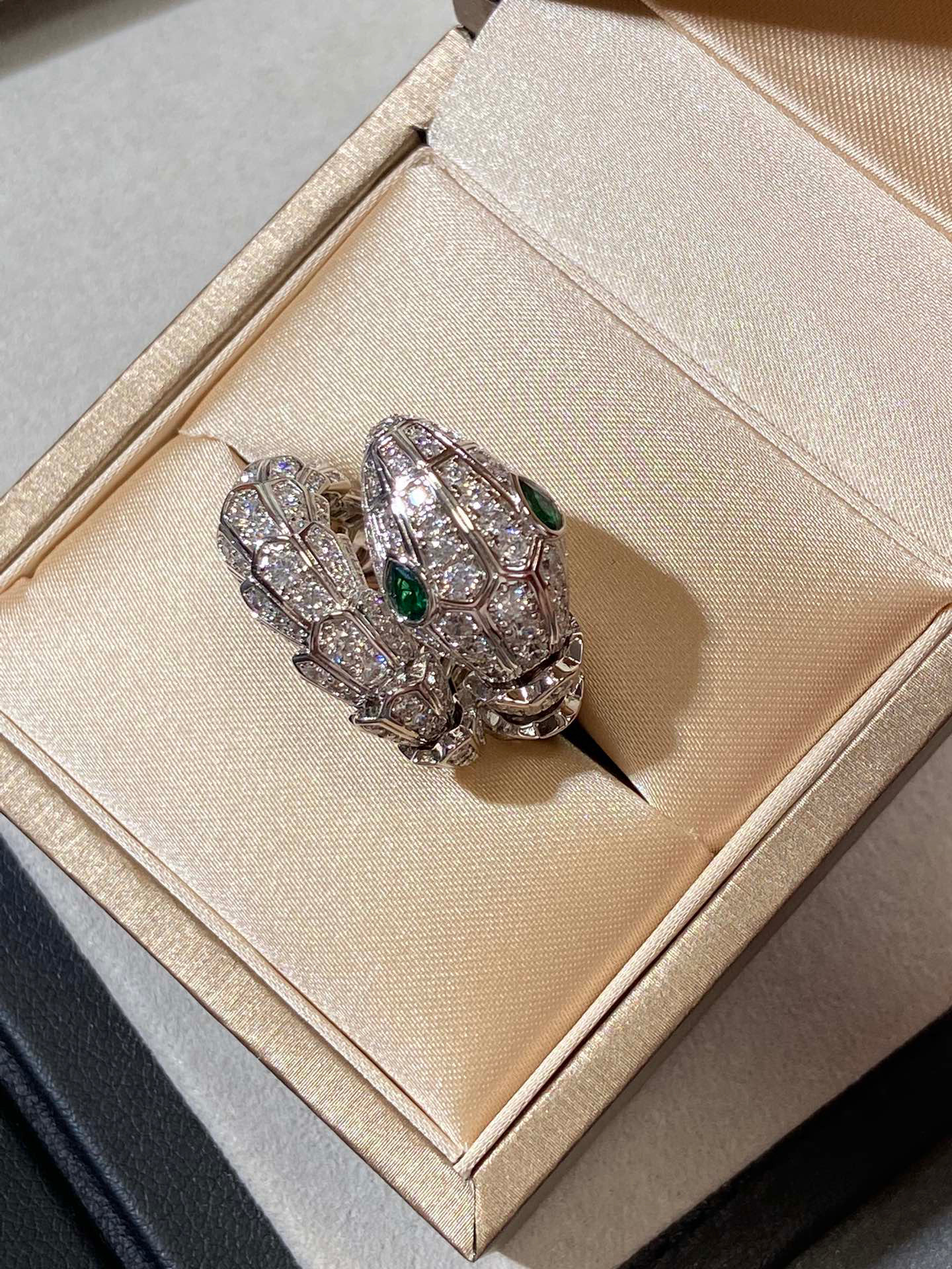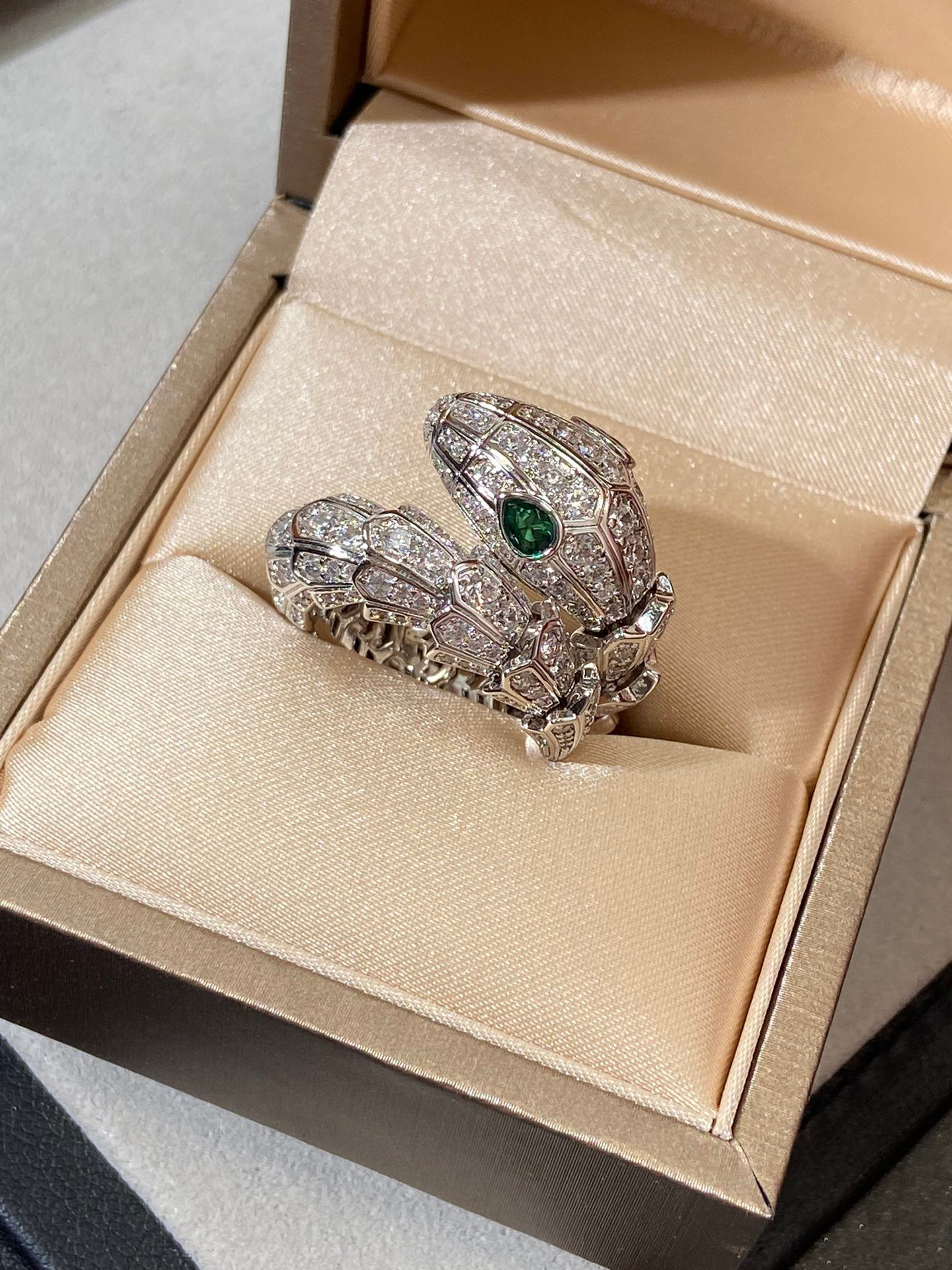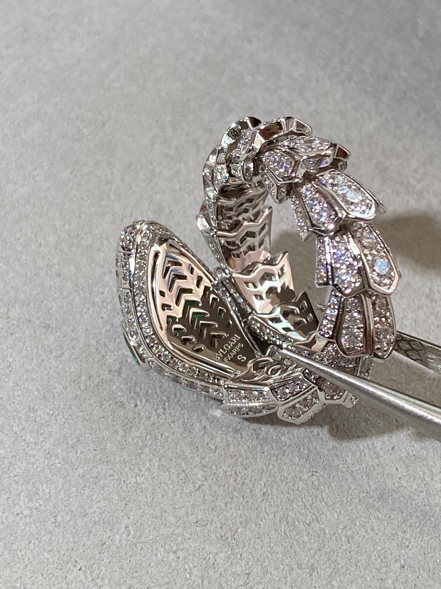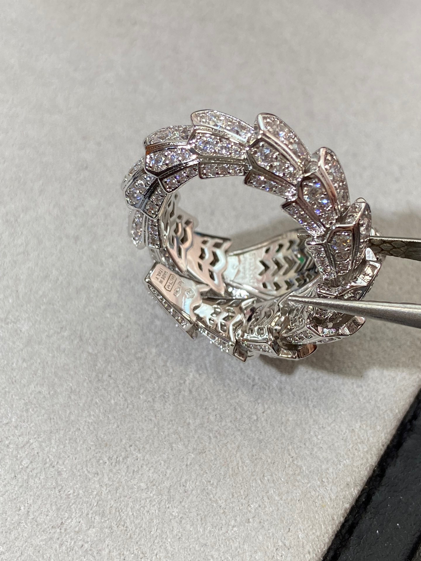 NIGO BVLGARI SERPENTI VIPER Collection Wide Snake Full Of Diamonds 18K White Gold Plated Ring Jewelry #nigo97925