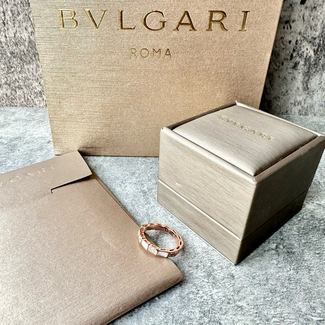 NIGO Bvlgari Men's and Women's Serpenti Viper Patchwork Snake Scale 18K Rose Gold Ring Jewelry #nigo97958