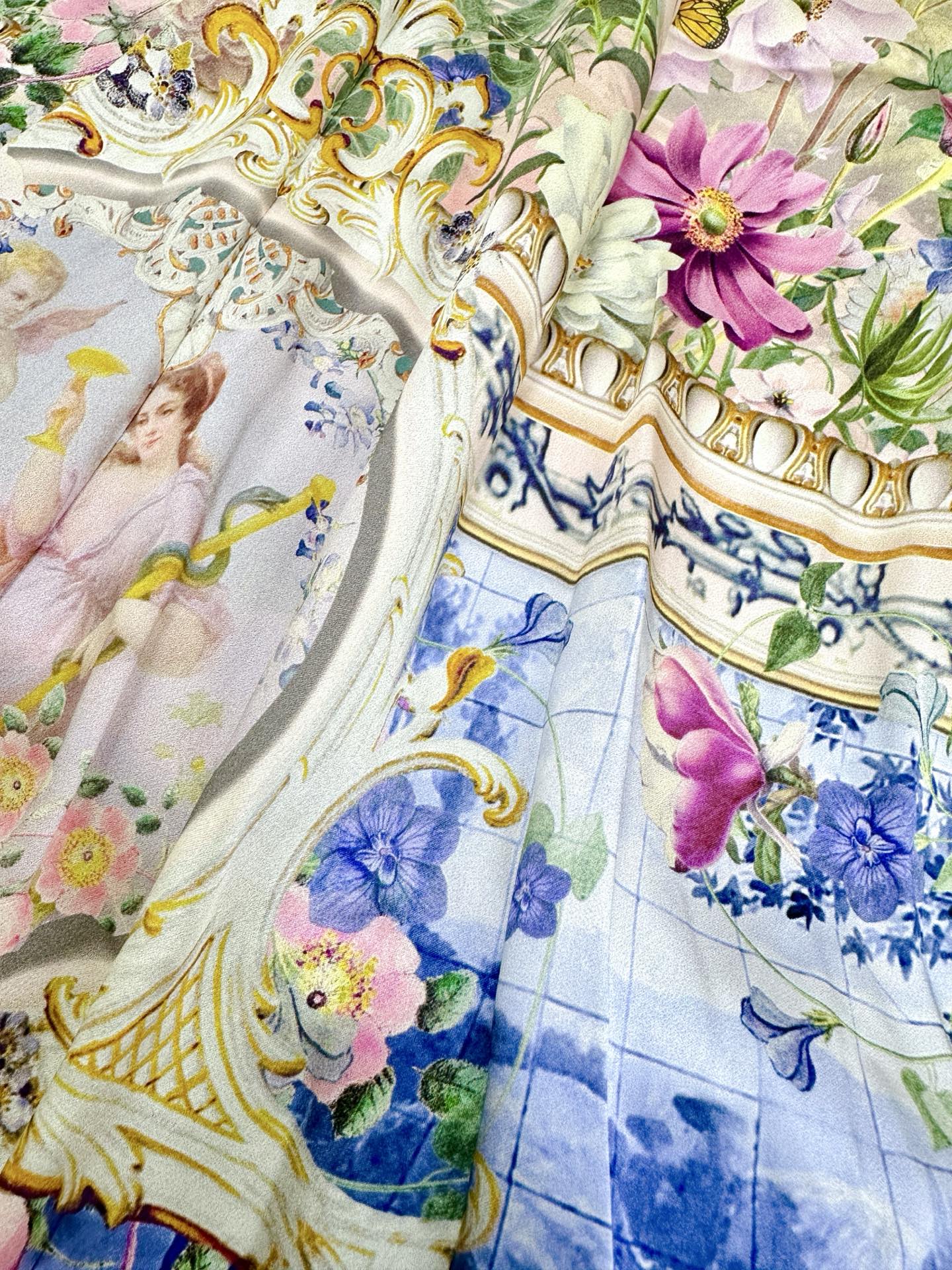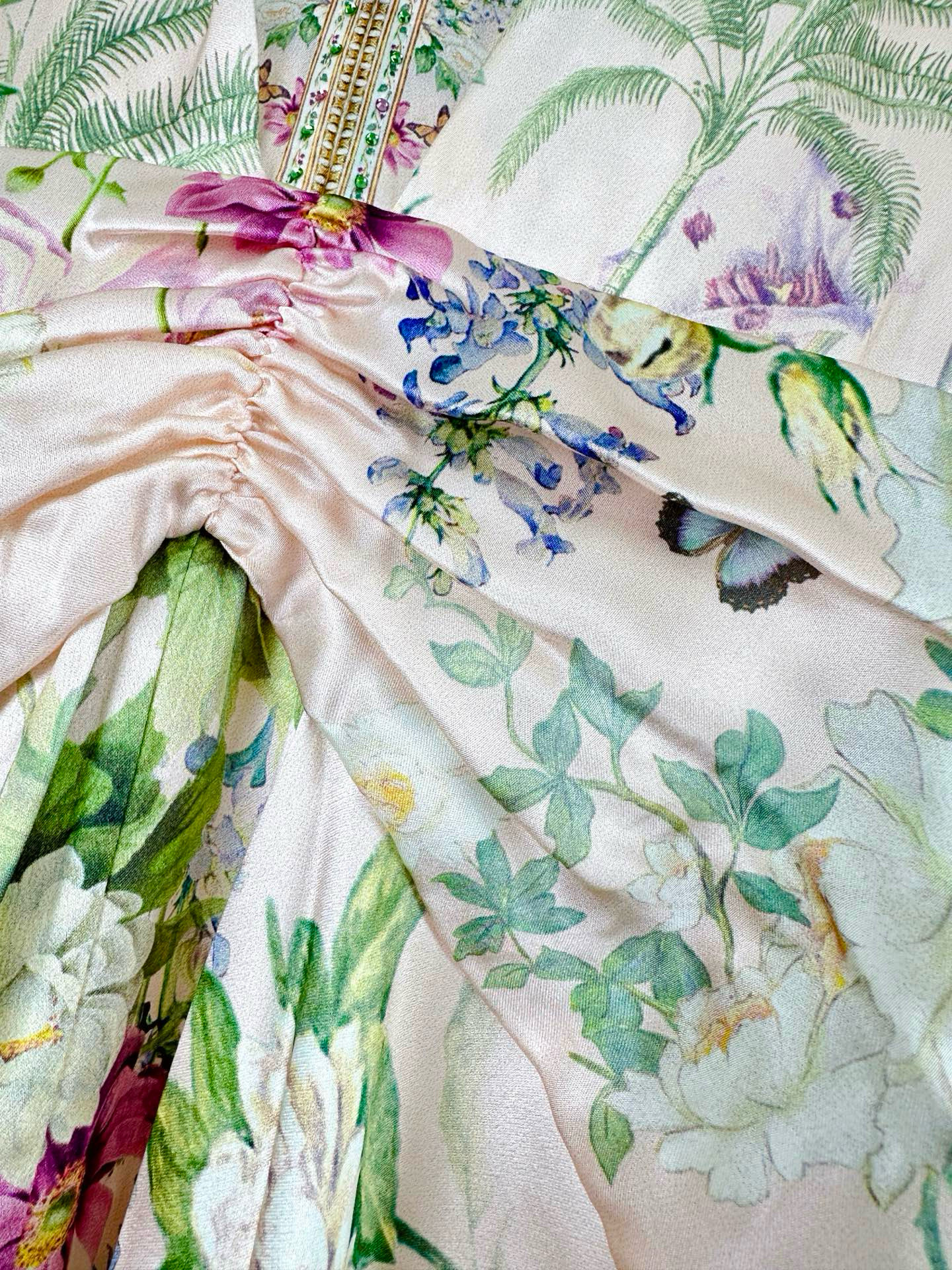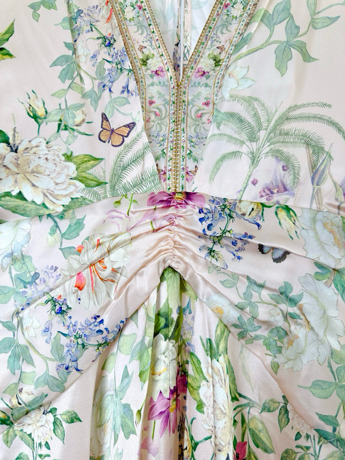NIGO Camilla Women's Silk Floral Printed V-Neck Summer Mid-Length Waist Slim Dresses Ngvp #nigo1442
