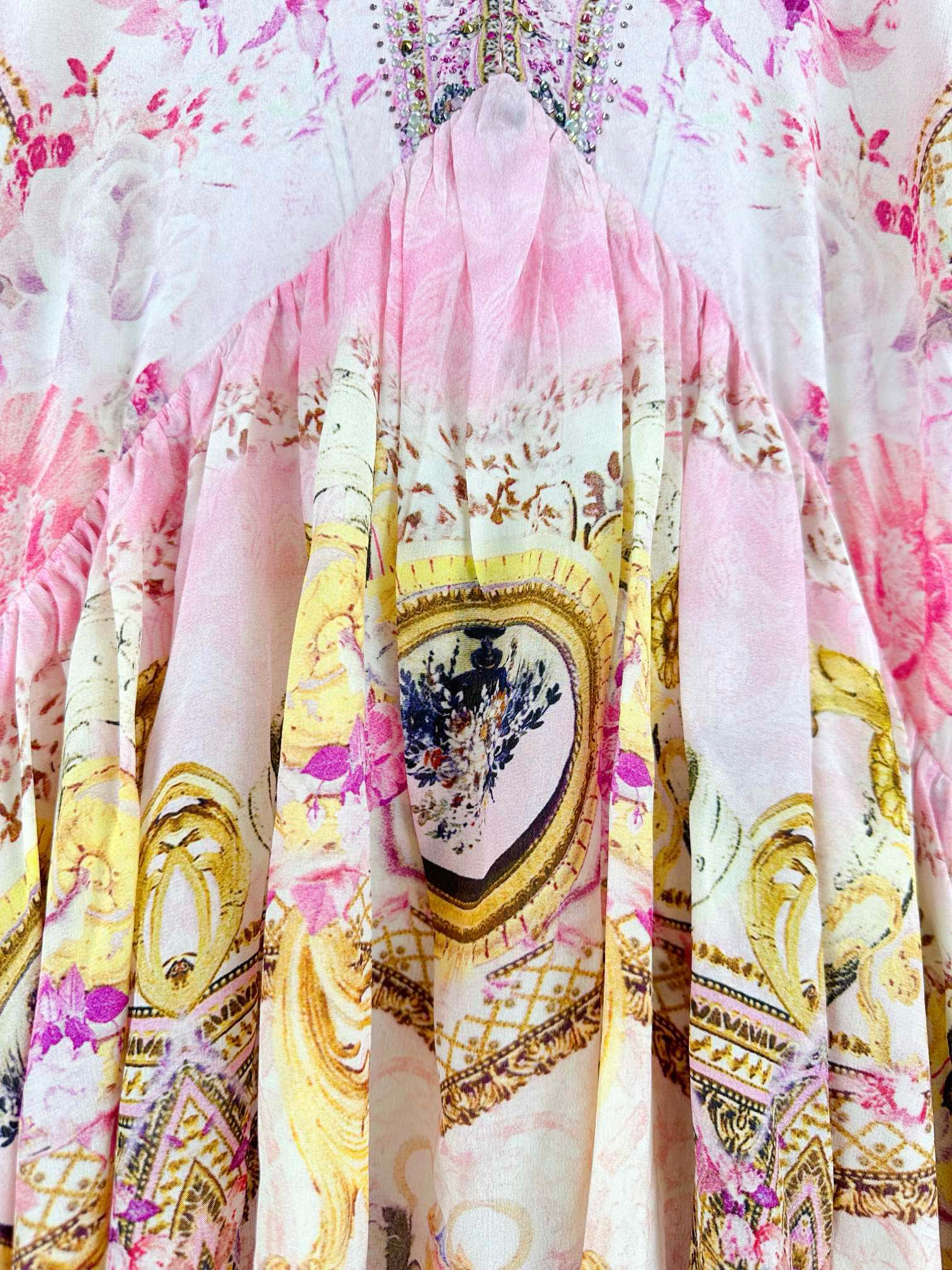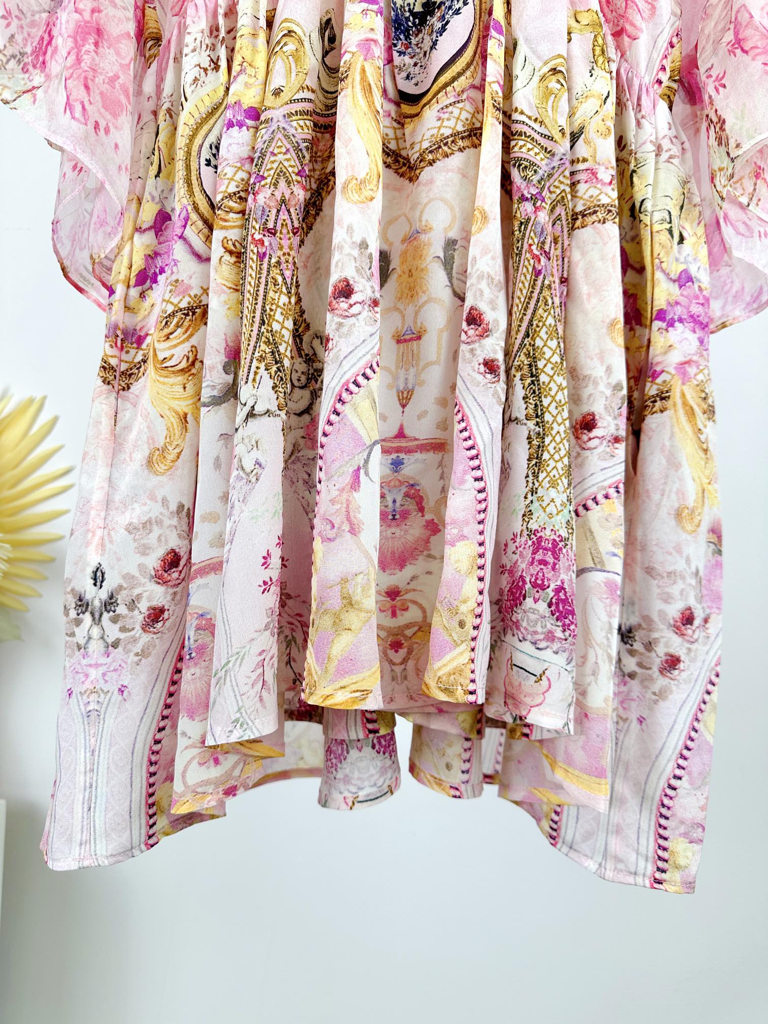 NIGO Camilla Women's Summer V-Neck Sexy Flared Sleeve Floral Printed Loose Silk Long Sleeve Dresses Ngvp #nigo8823