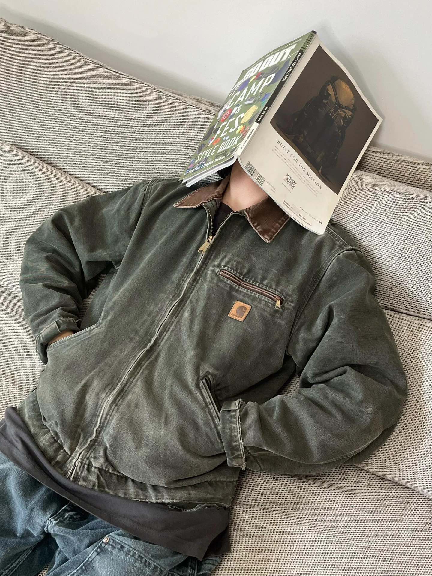NIGO Carhartt WIP Men's Fall And Winter Washed And Aged Zipper Lapel Long Sleeve Jacket #nigo72834