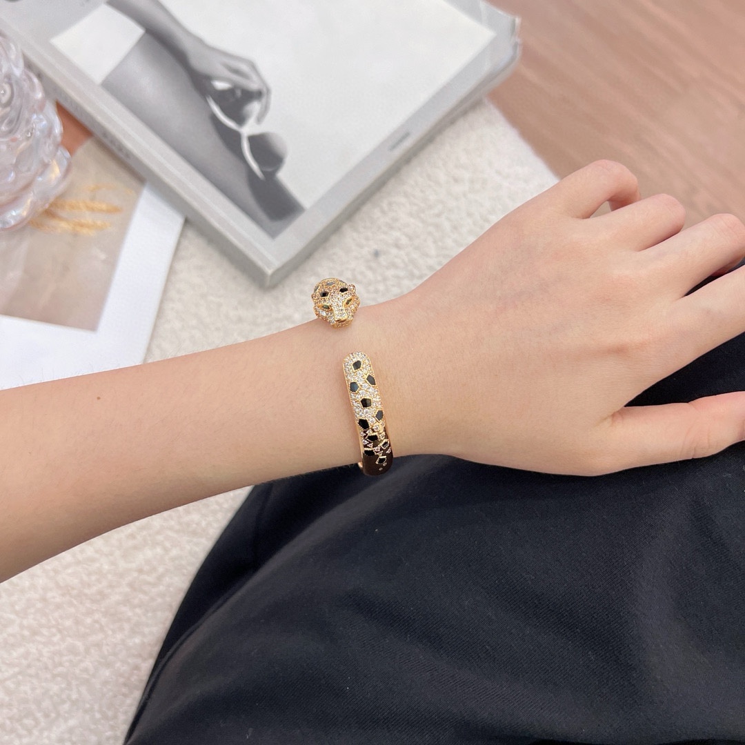 NIGO Cartier Women's PANTH È RE DE CARTIER Full Diamond Leopard Letter Carving V Gold Material Fashion Bracelet Jewelry Accessories #nigo71752