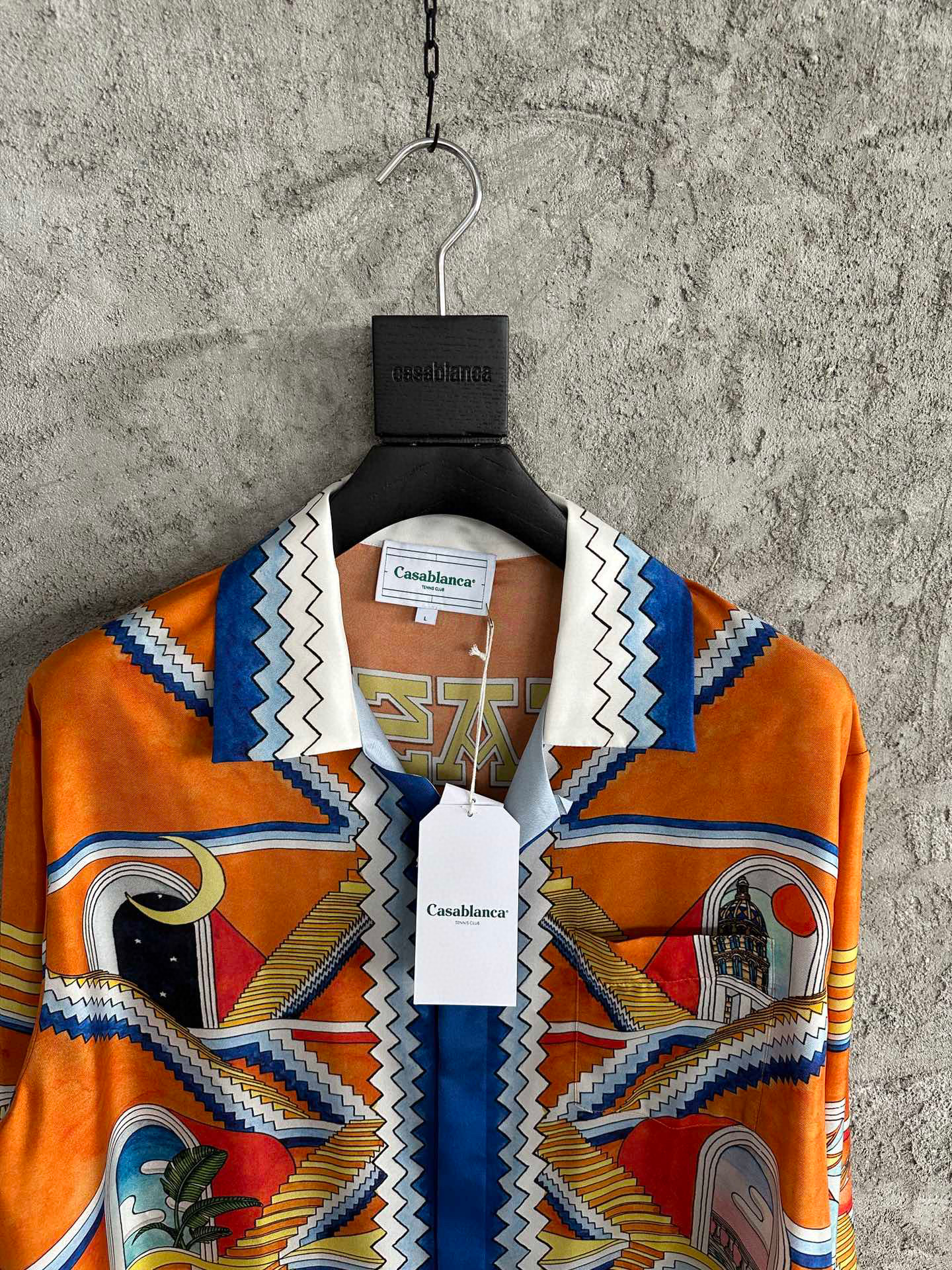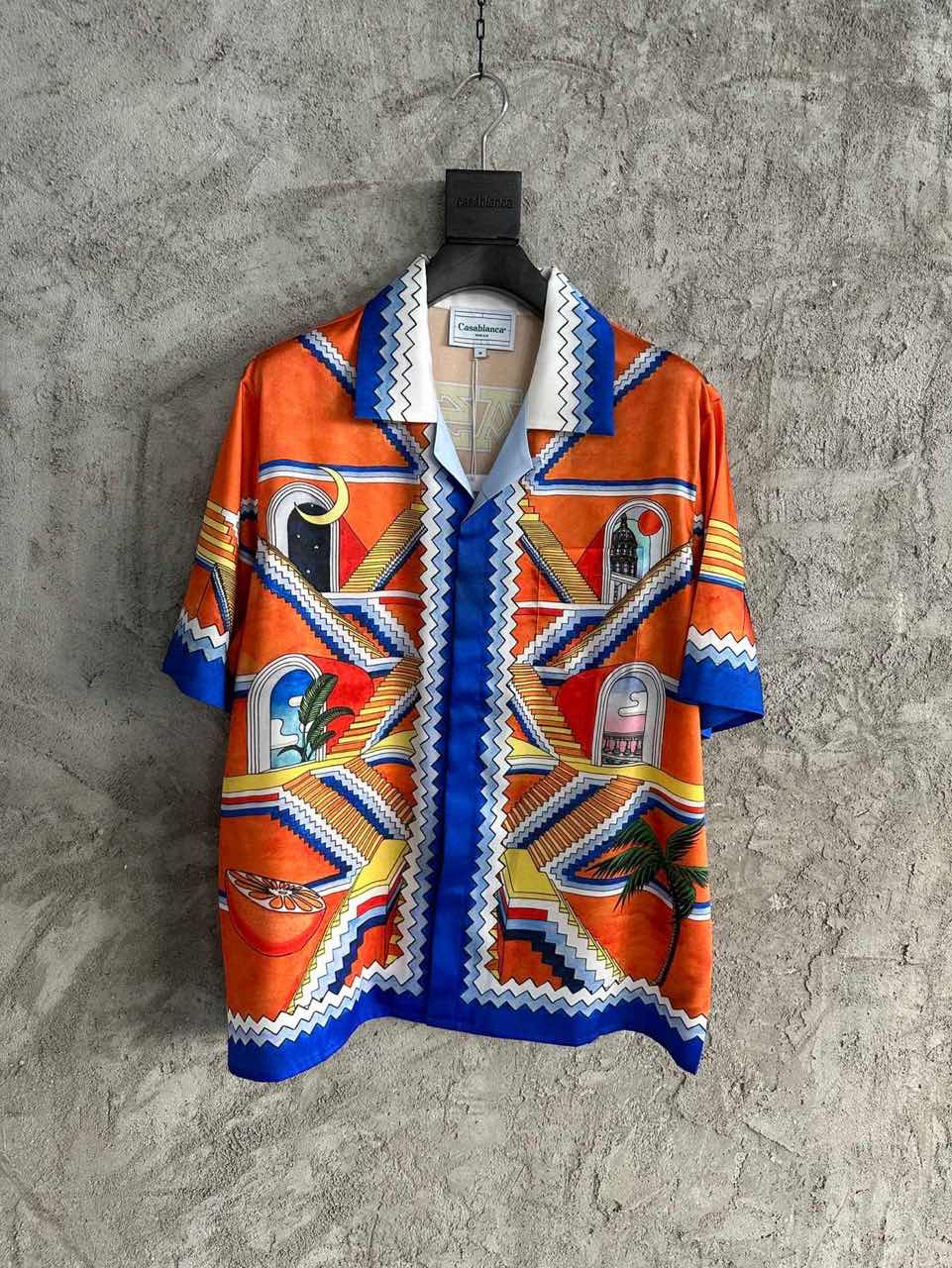 CASABLANCA 2023SS Step Pattern Silk Short Sleeve Shirt, custom silk fabric, imported machine HD digital direct print, laser positioning cut, dry clean or hand wash recommended, SIZE: S, M, L, XL