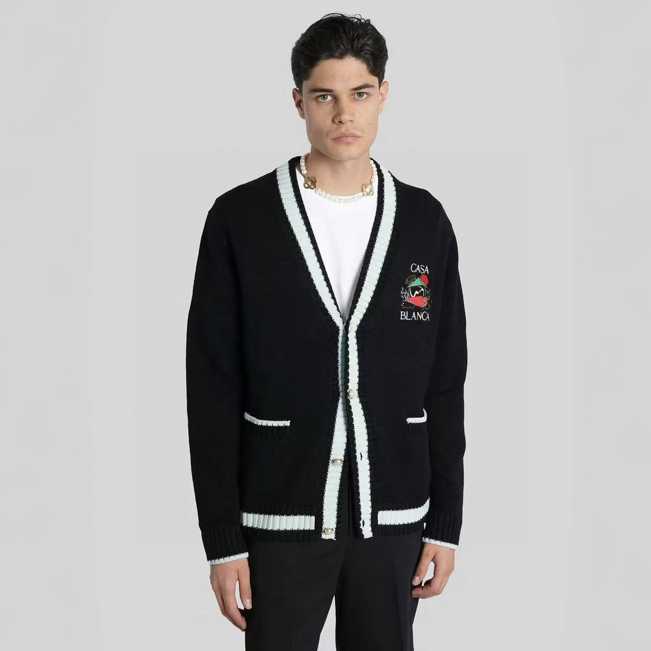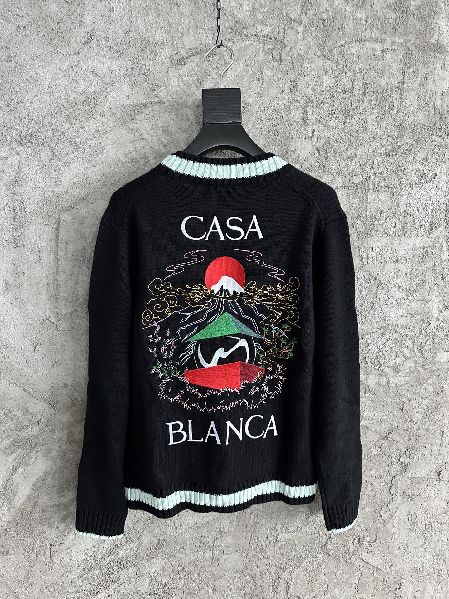 Nigo Casablanca Casa Mountain Temple Cardigan Men's And Women's Spring/autumn Fashion Casual Embroidered Badge V Neck Single Breasted Knitted Cardigan #nigo78324