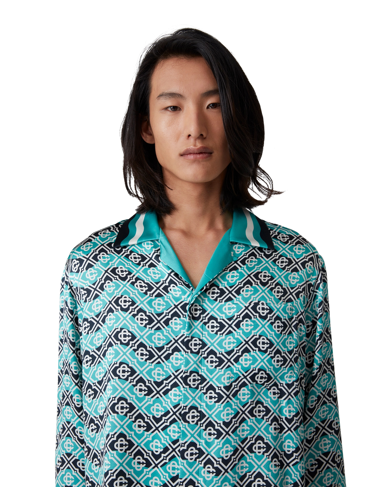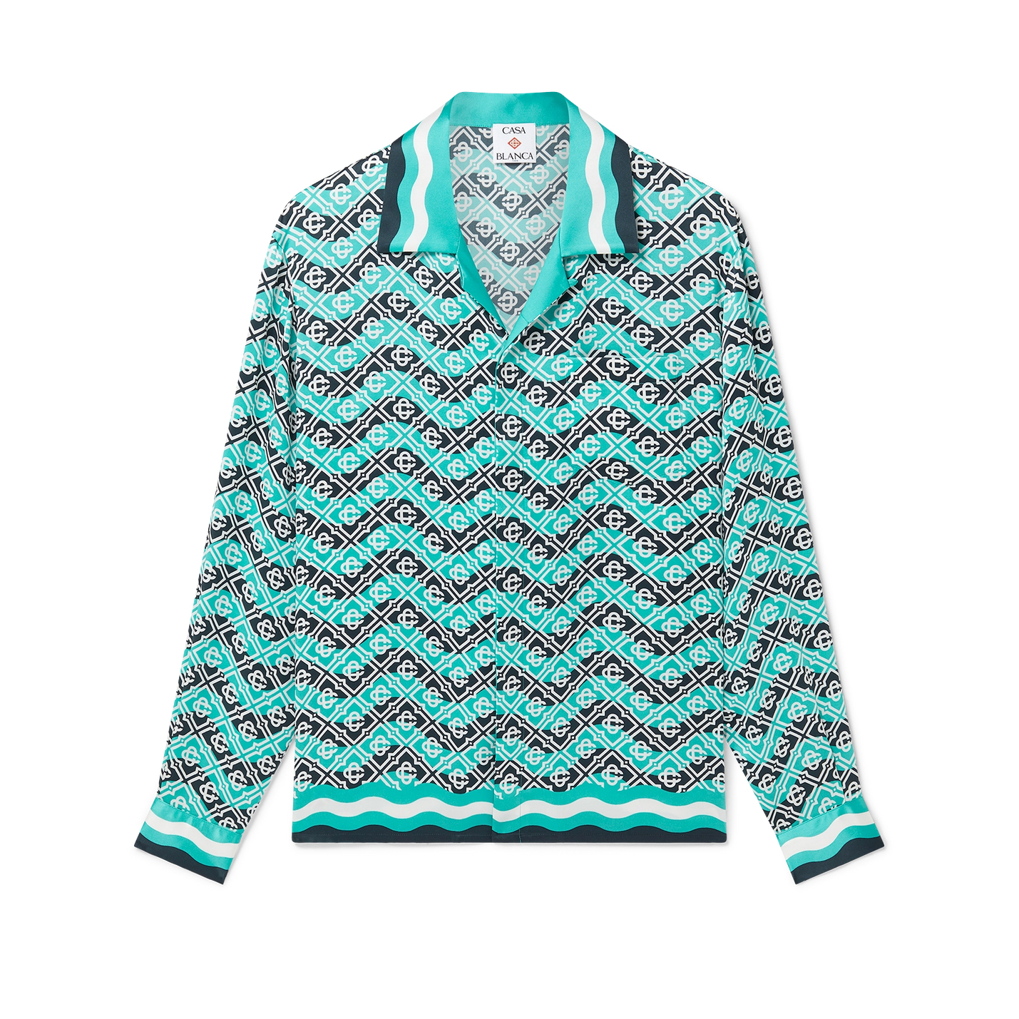 NIGO Casablanca Men's and Women's Fashion Casual Full Print Logo Silk Long Sleeve Shirt Elastic Drawstring Waist Full Print Logo Silk Long Pants Suit Set #nigo78594